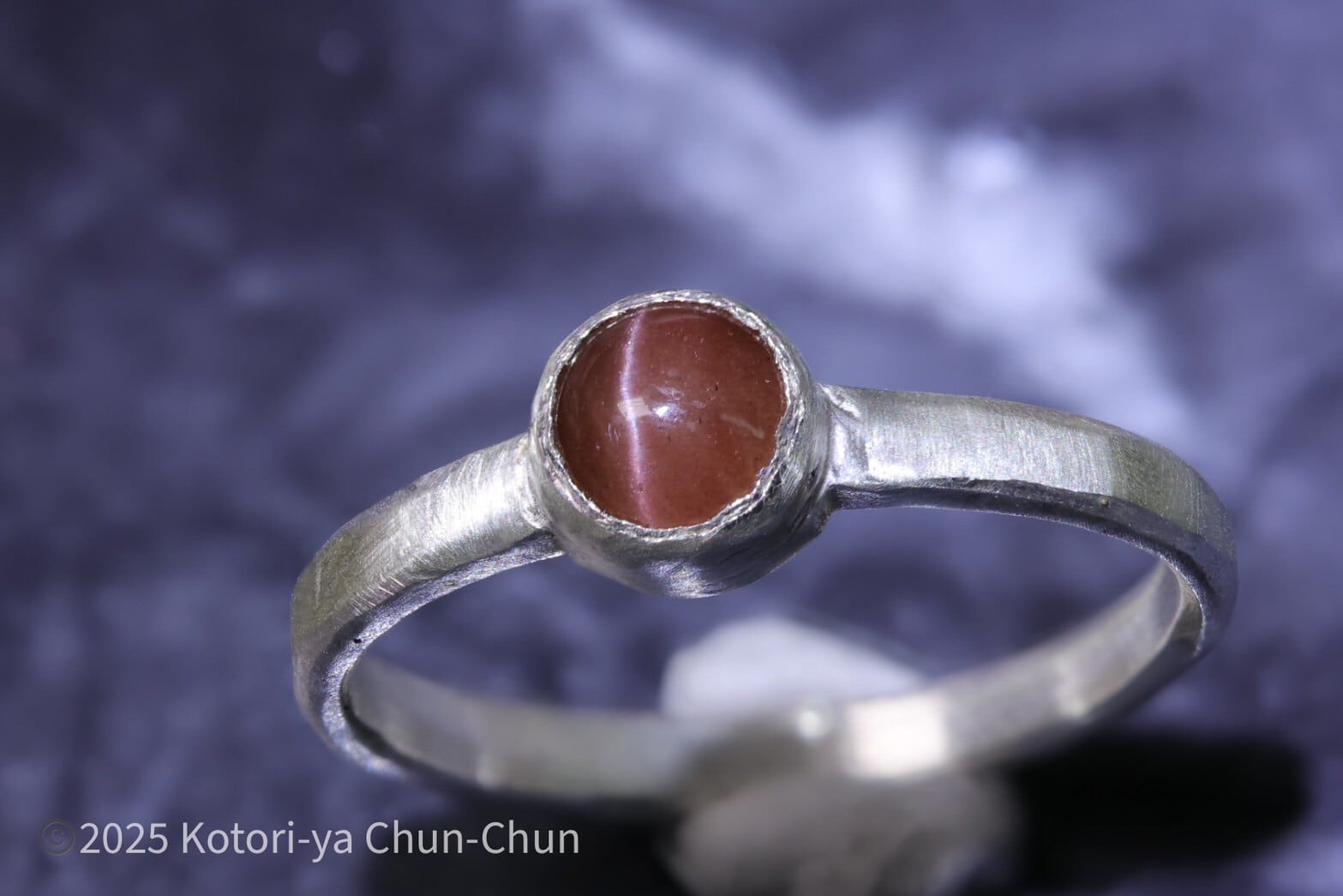 【キャッツ好き必見!】珍しい赤いキャッツ! スキャポライト・キャッツアイ・シルバーリング【赤猫】