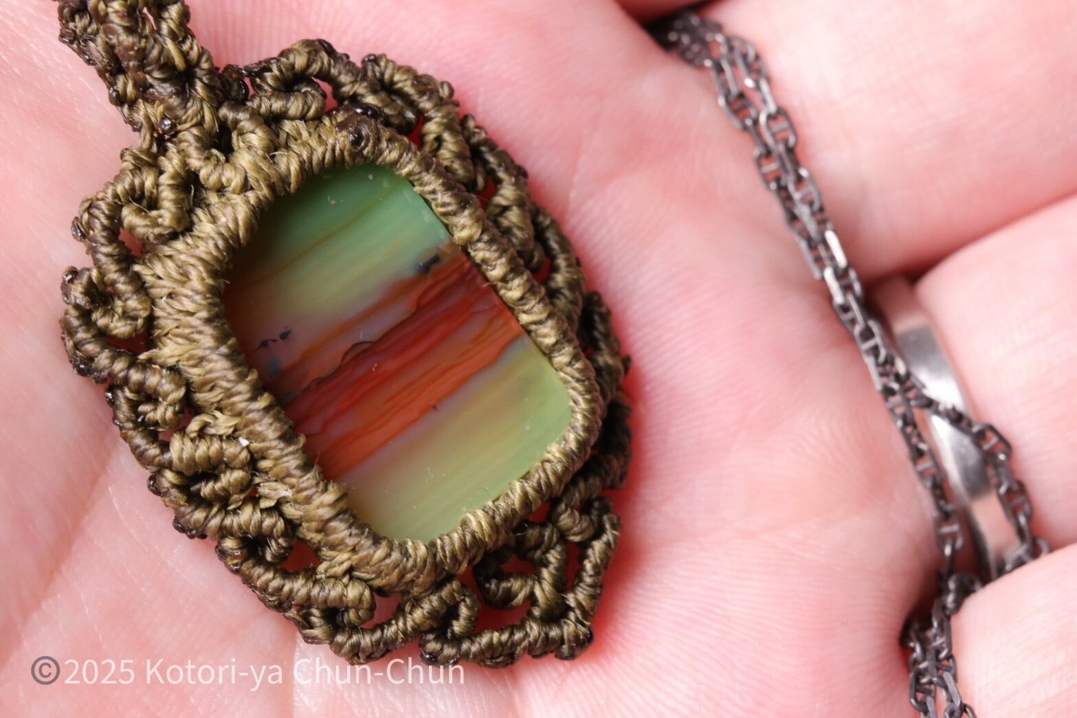 最初は小鳥屋の個人的な依頼で作ってもらったんですよね。「マクラメで額縁っぽい感じでピクチャーアゲートのペンダントヘッド作れない?」って