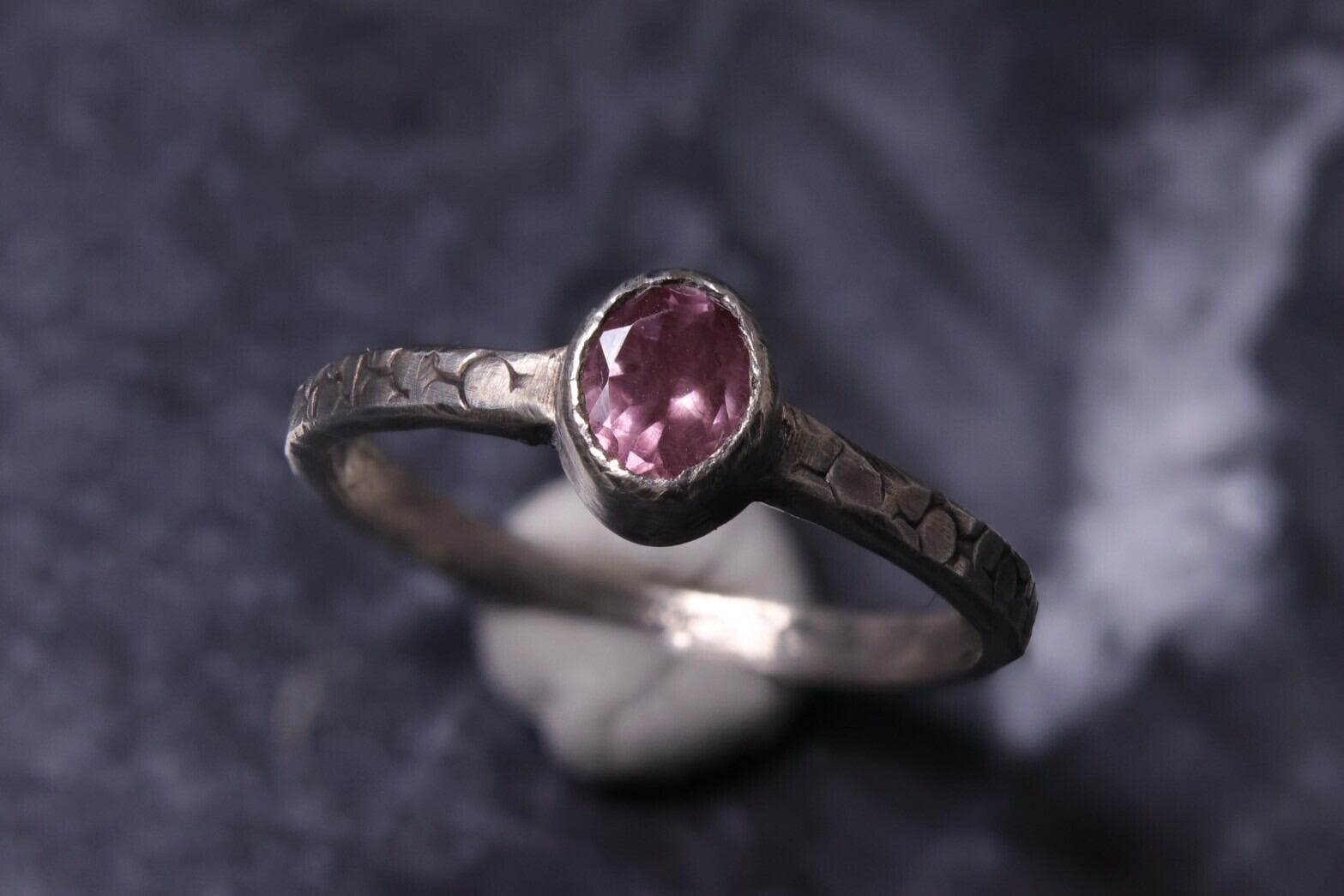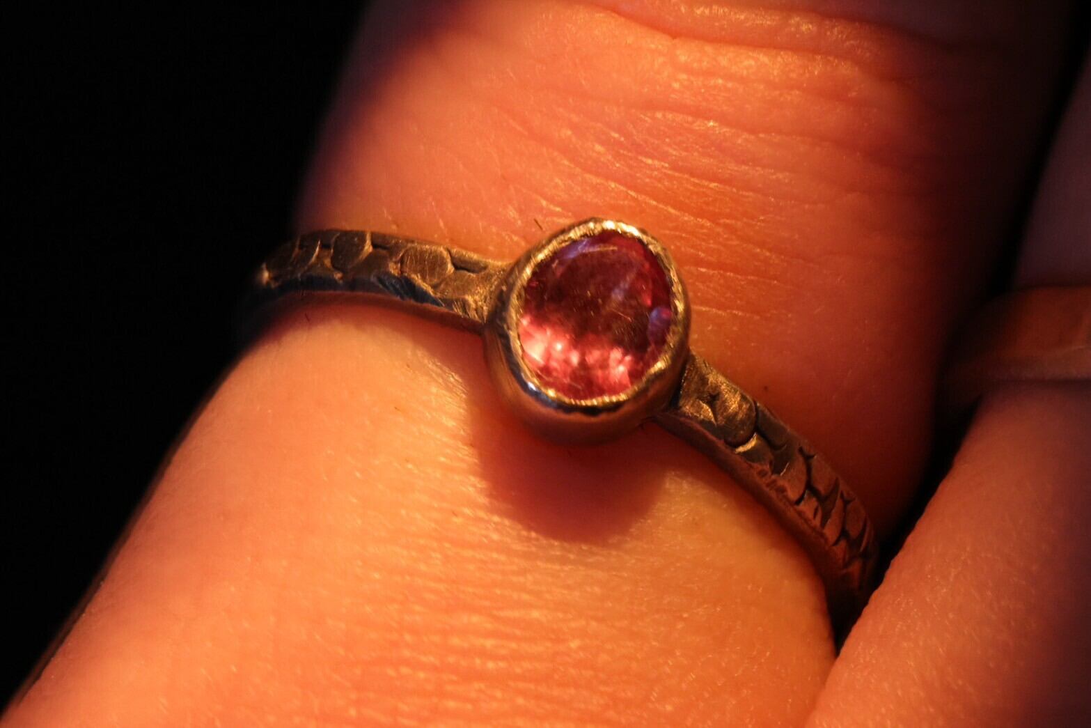 【紫→赤ピンク】カラーチェンジマラヤガーネット・シルバーリング【朱竜】