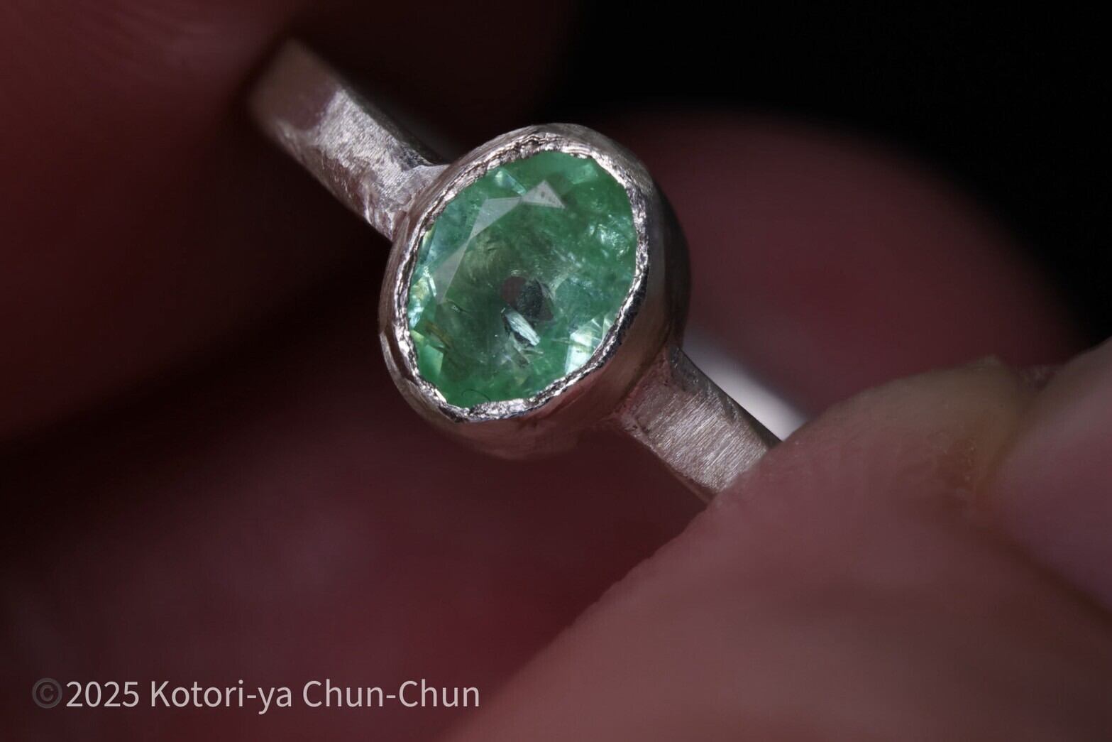 0.3CtOverのモザンビーク産パライバトルマリンの美しいネオンカラーのライトグリーンをなにを思ったかシルバーリングで作ってしまうという…