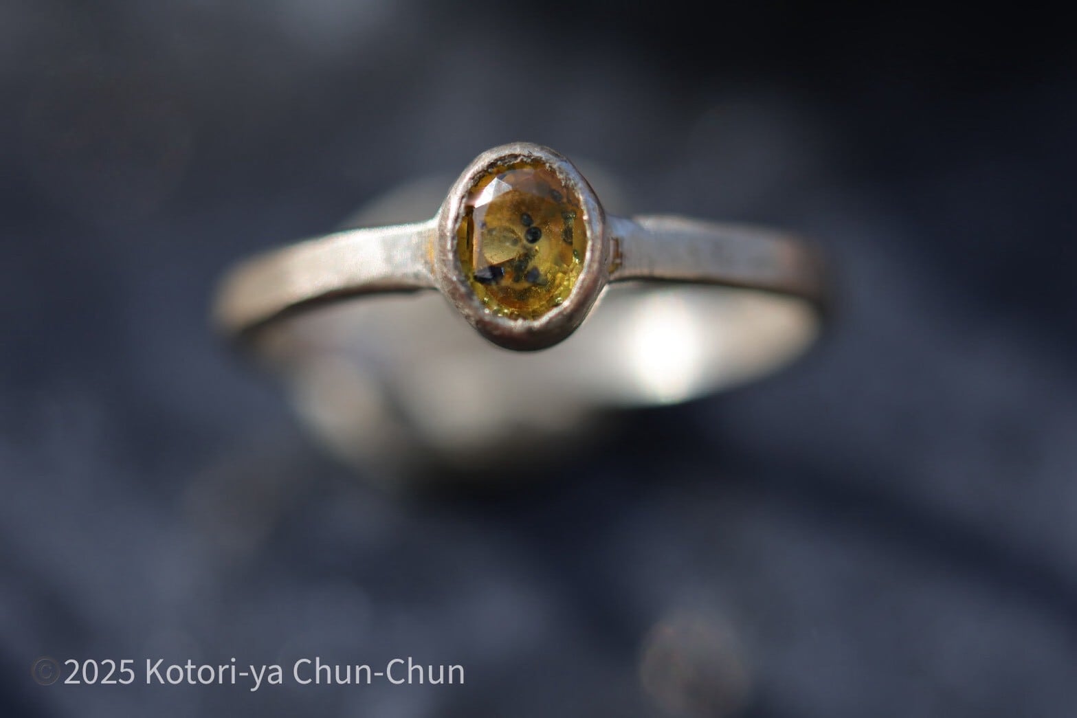 【かなり珍しい青と黄色のバイカラー】タイ産 バイカラーサファイア・シルバーリング【イエロウテントウ】