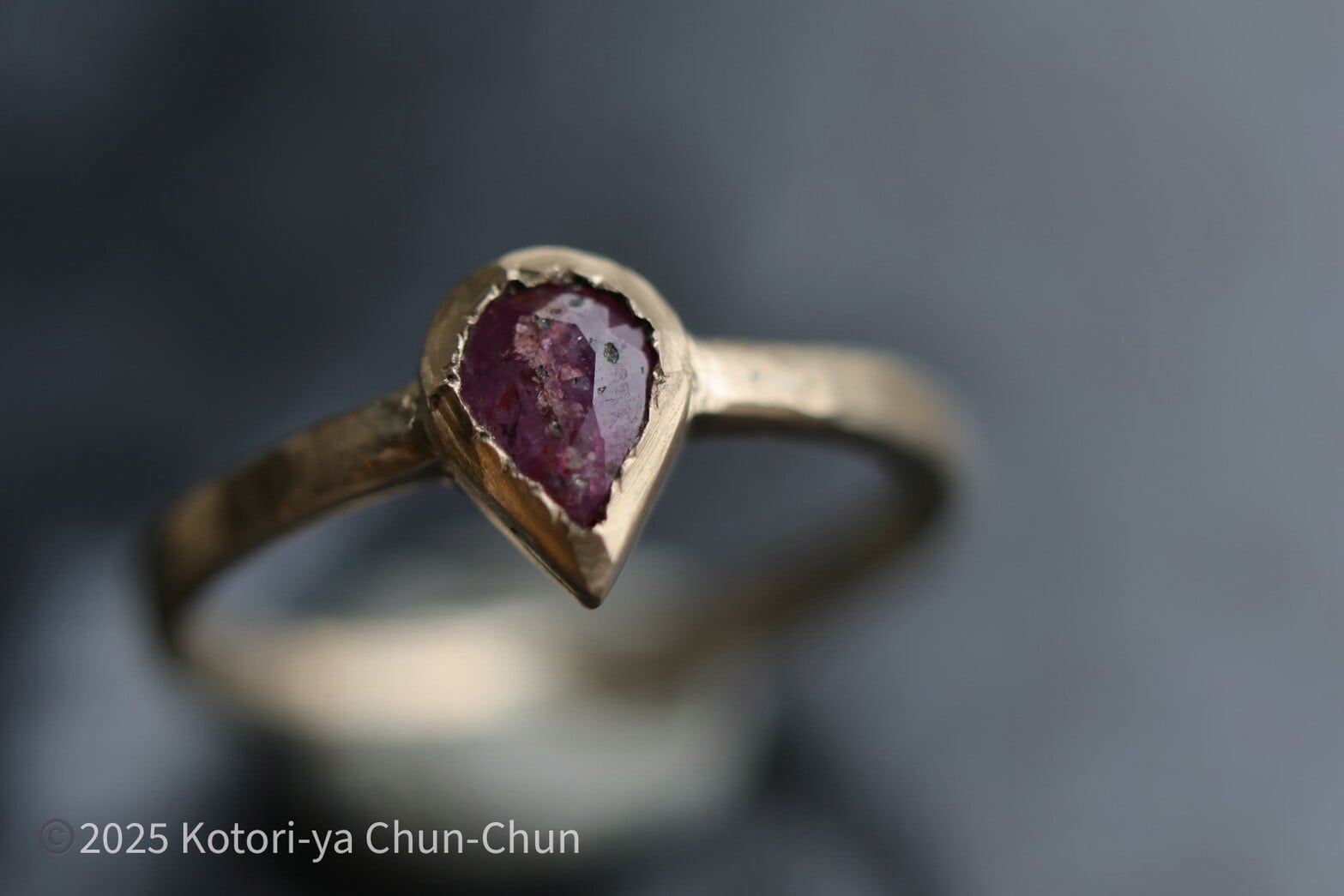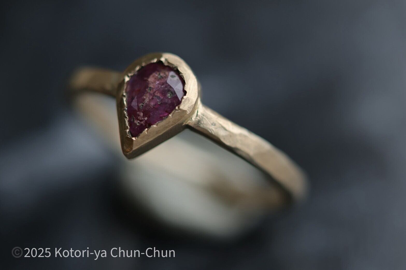 【小鳥屋ジュエリー】「トシッタさん」の初期の強蛍光ノーヒート・ホットピンクサファイア・K10YGリング【火の妖精の指輪】