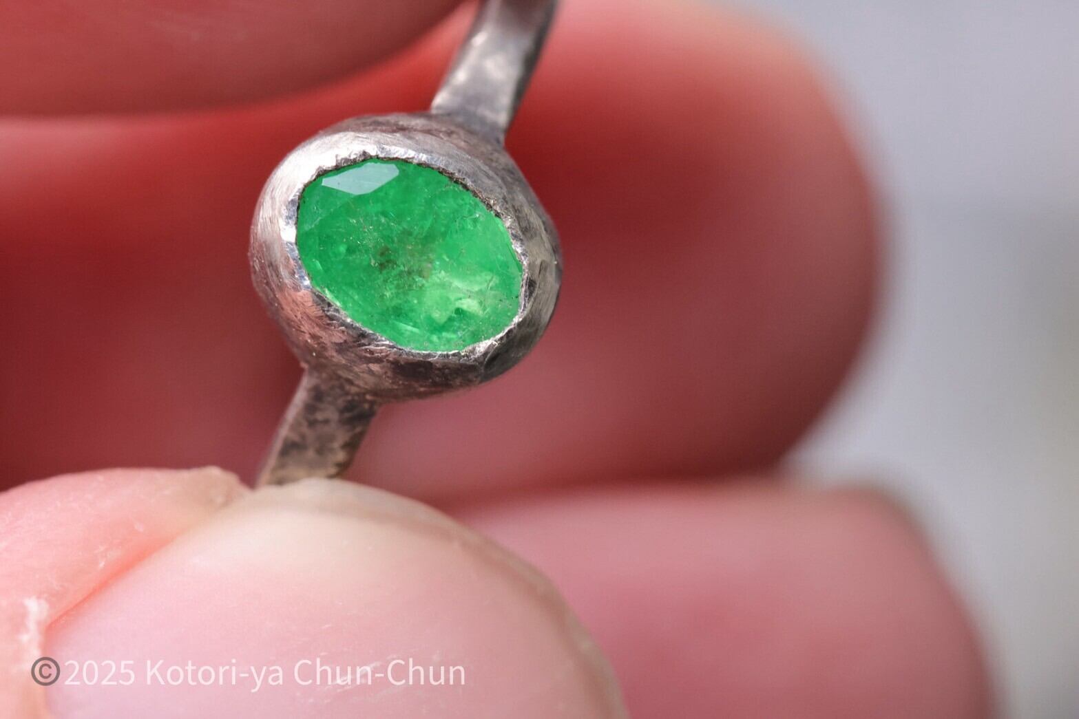 バナジウムのせいか、ツァボライトの緑ってなんというか唯一無二感があります。他の石には代用不可能なマスカットグリーンなんですよね。