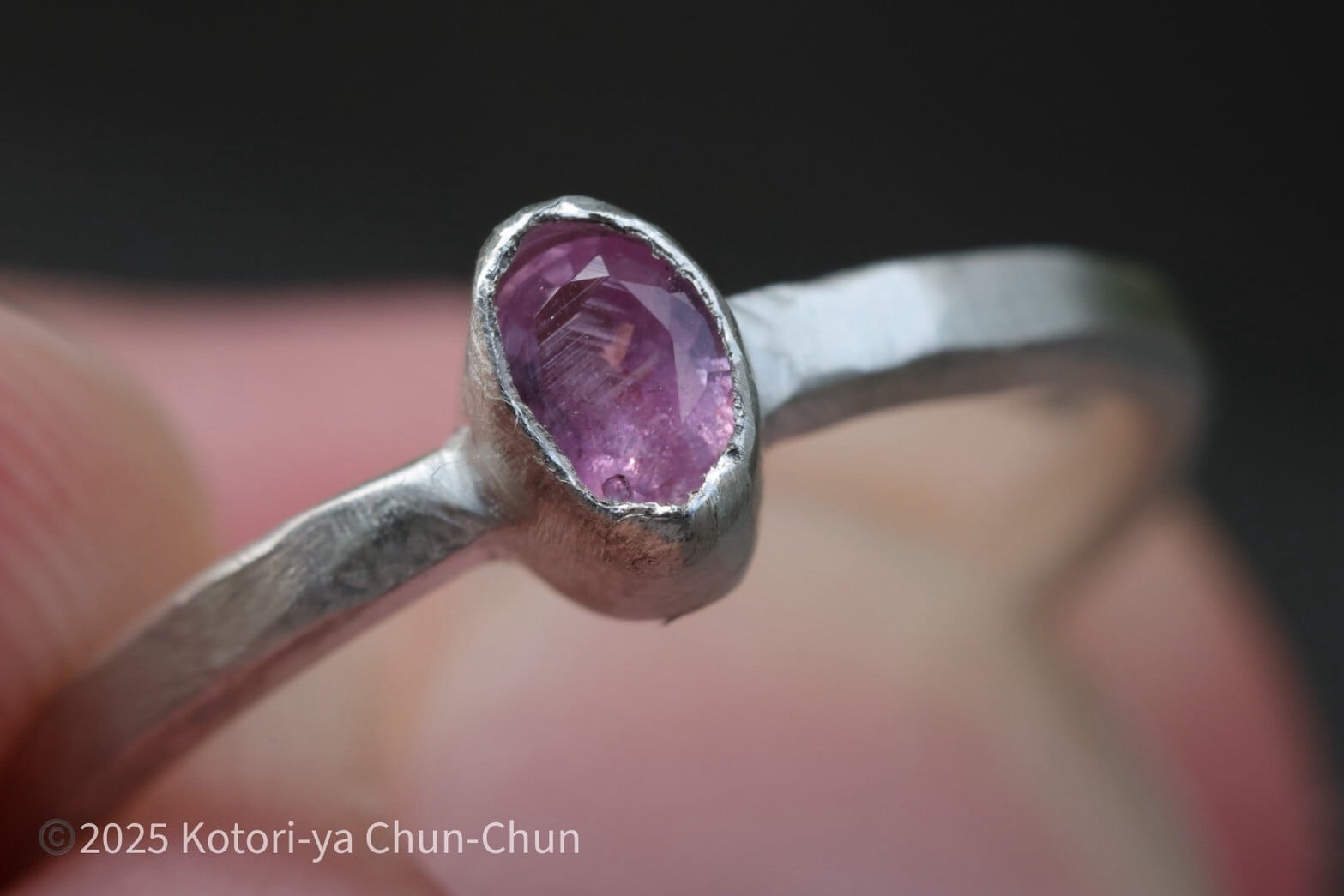 【超掘り出し物】「トシッタ」さんのノーヒート・強蛍光ピンクサファイア・シルバーリング【和蓮】
