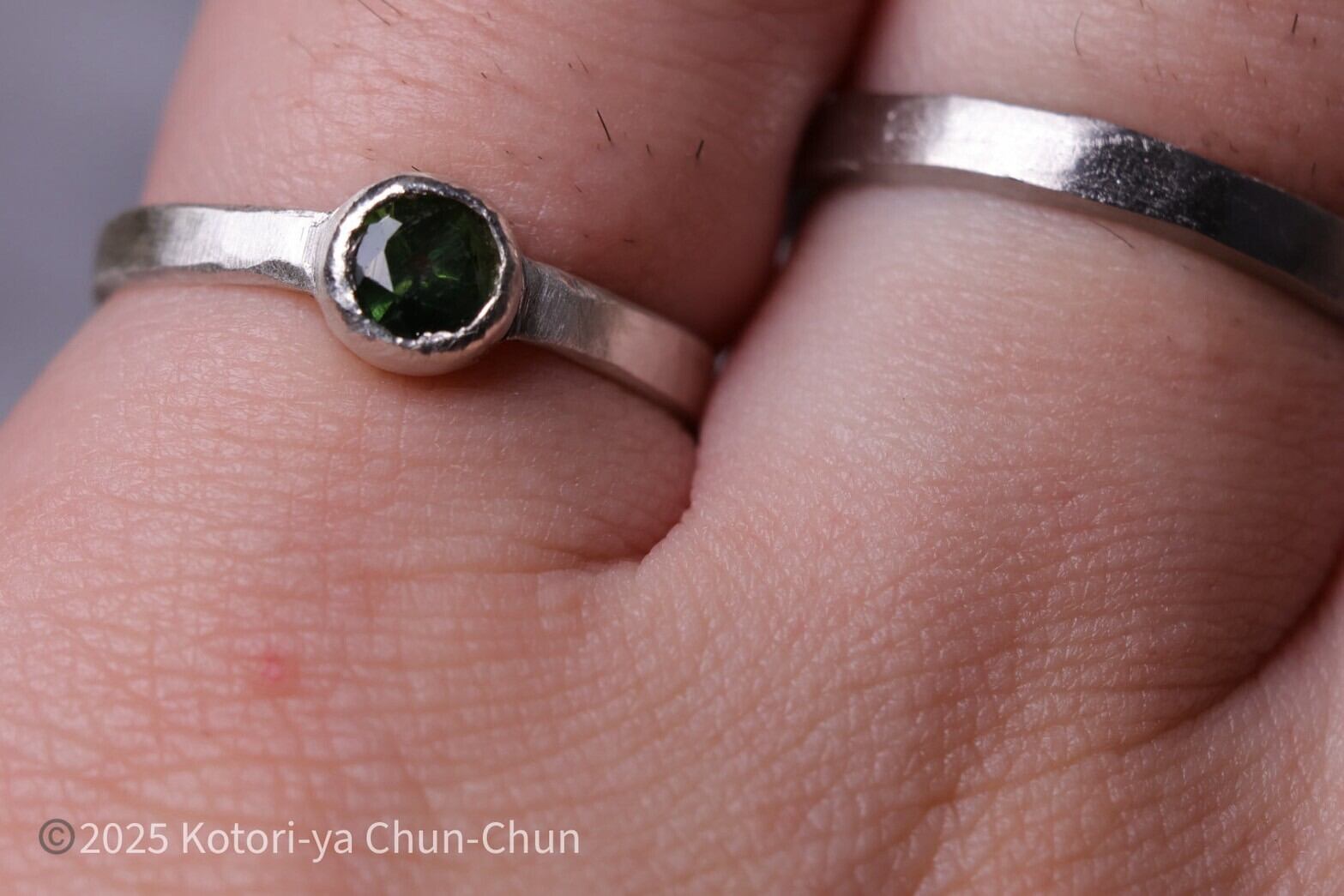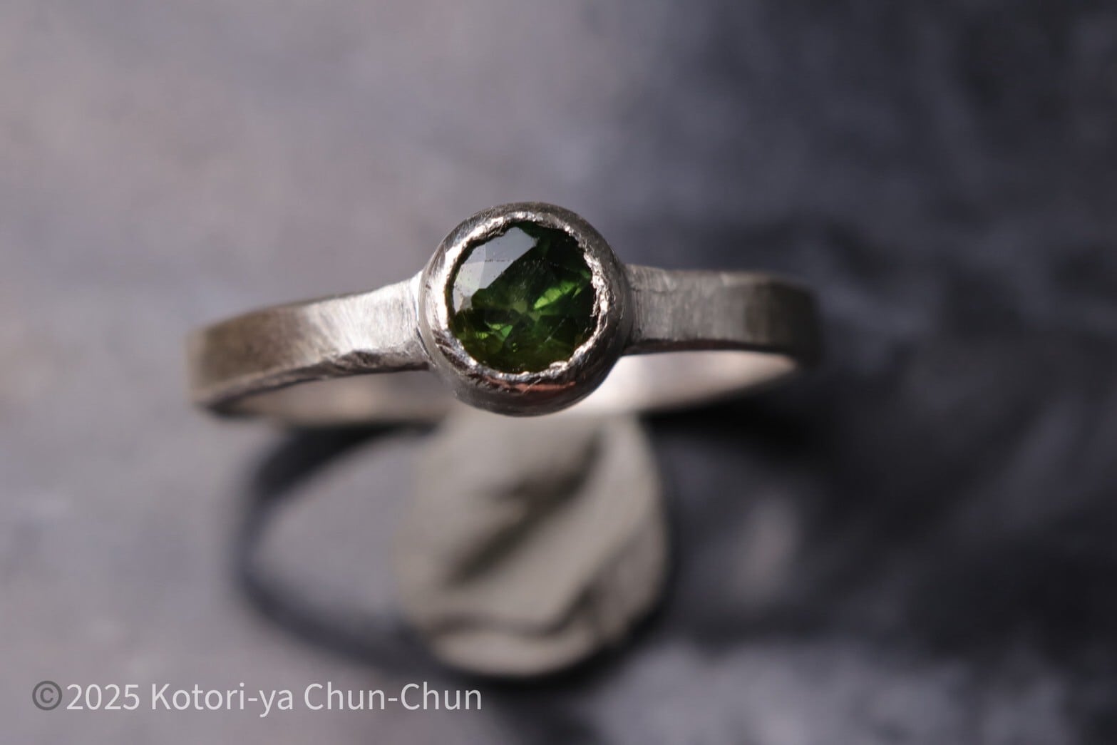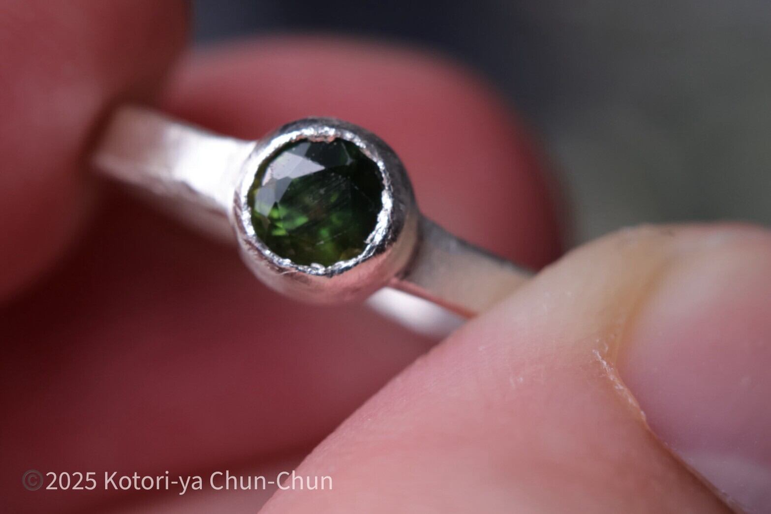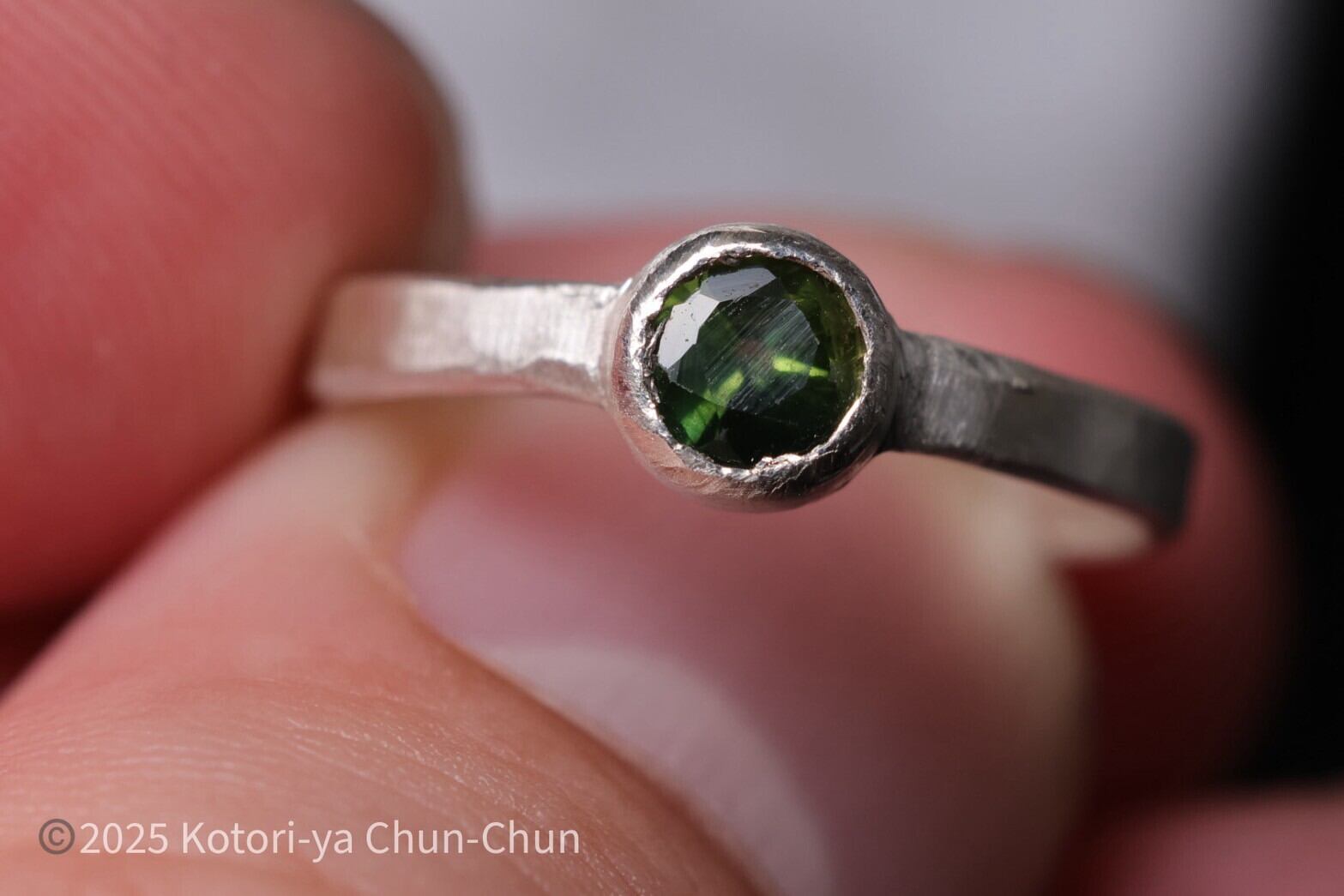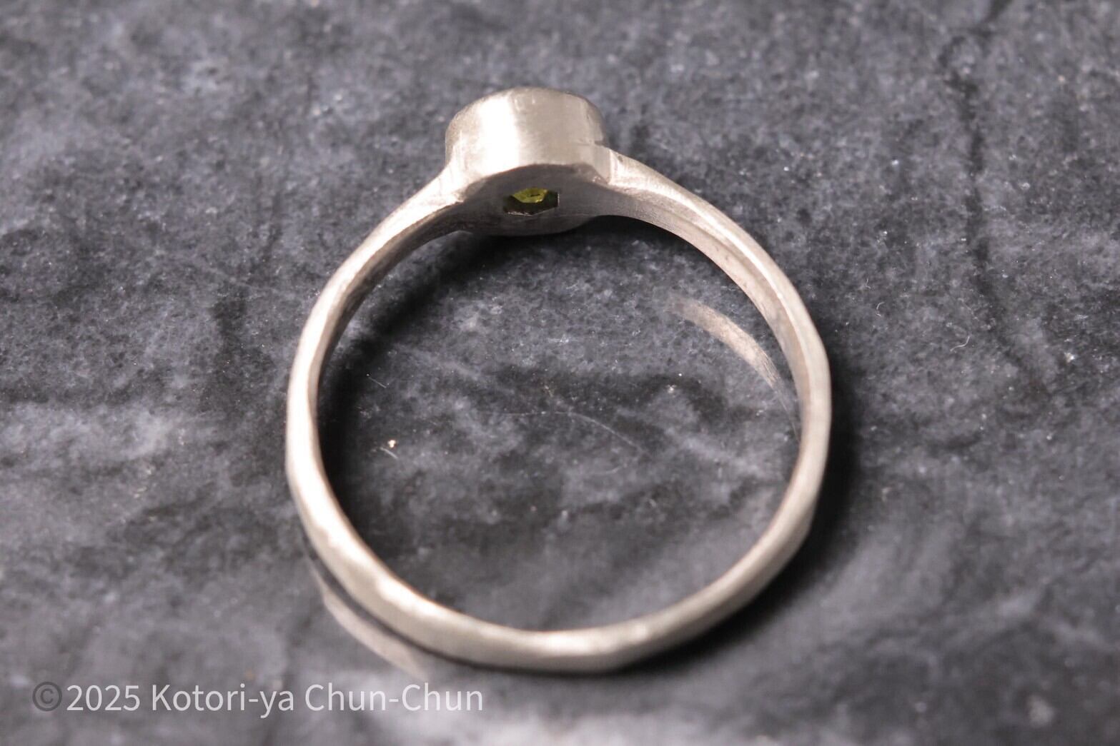 【黄緑色と緑の隠れバイカラー】タイ カンチャナブリ産 バイカラーグリーンサファイア・シルバーリング【葉隠】