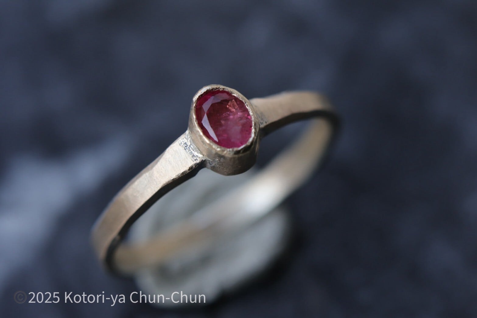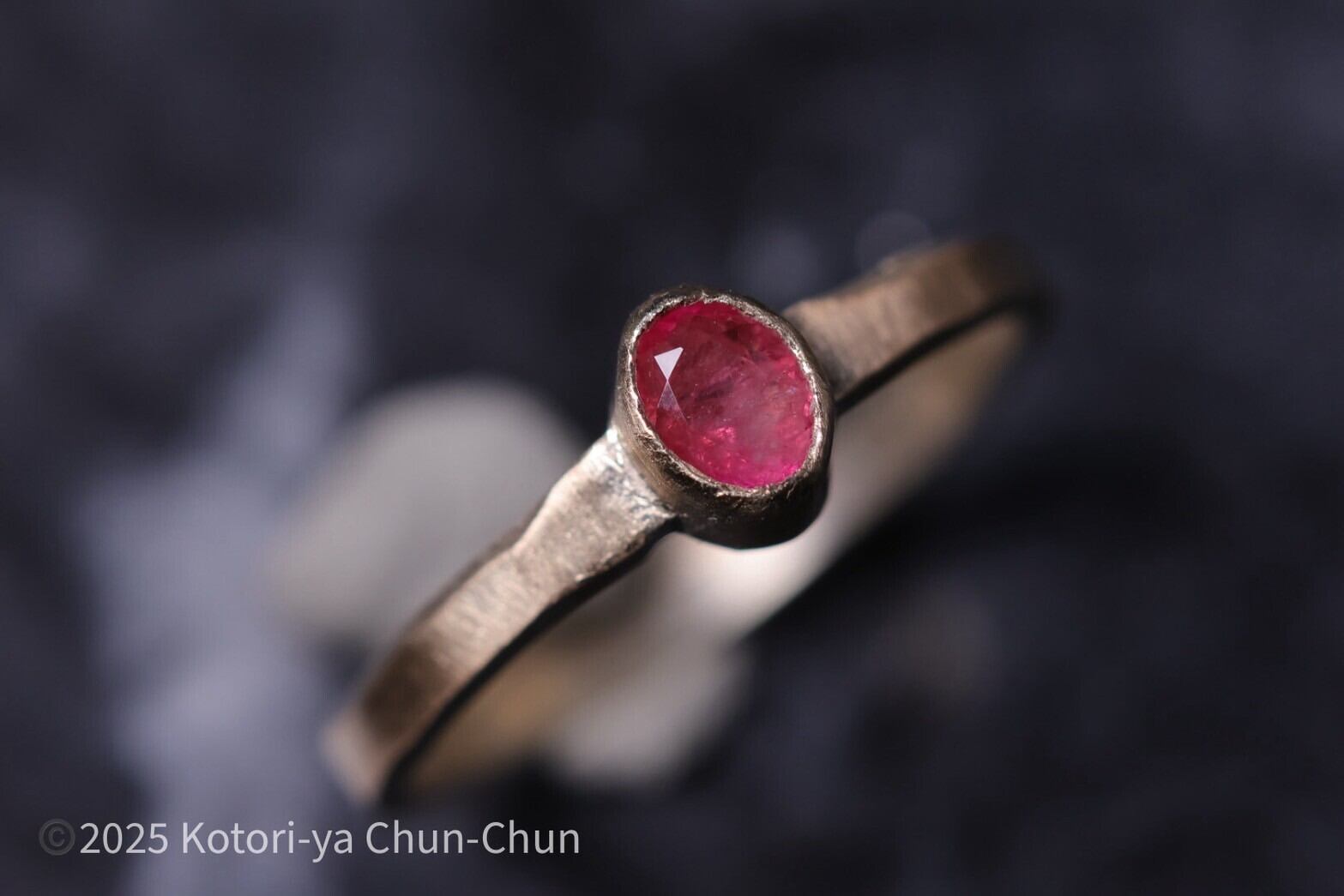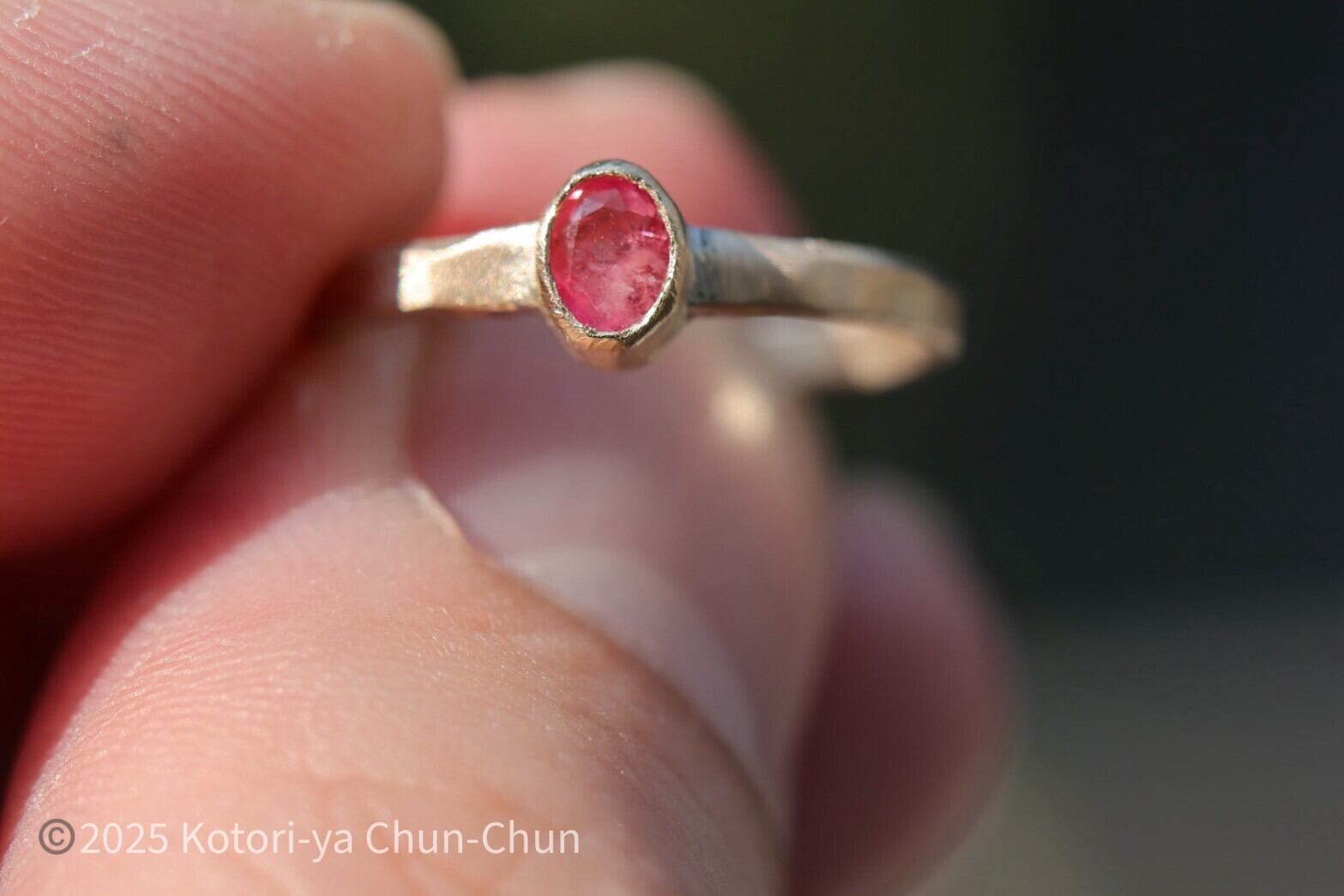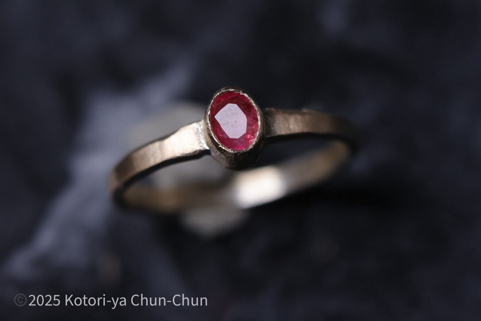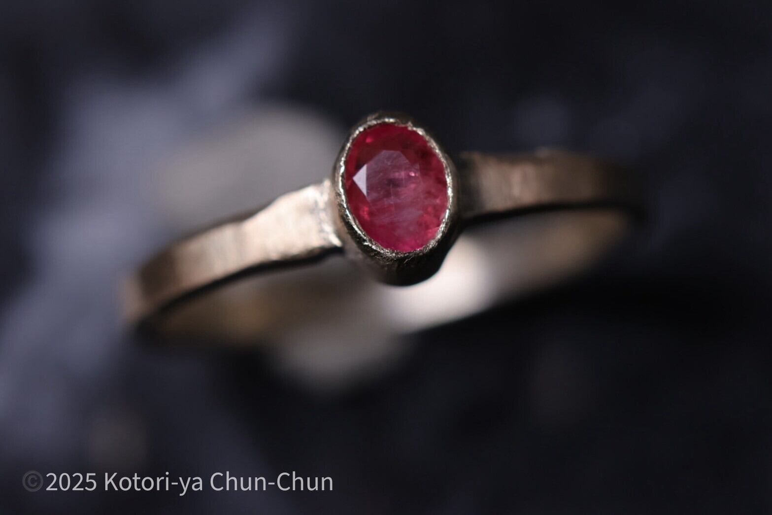 【小鳥屋ジュエリー】「幻の赤いエメラルド」レッドベリル・K10YGリング【朱雀】