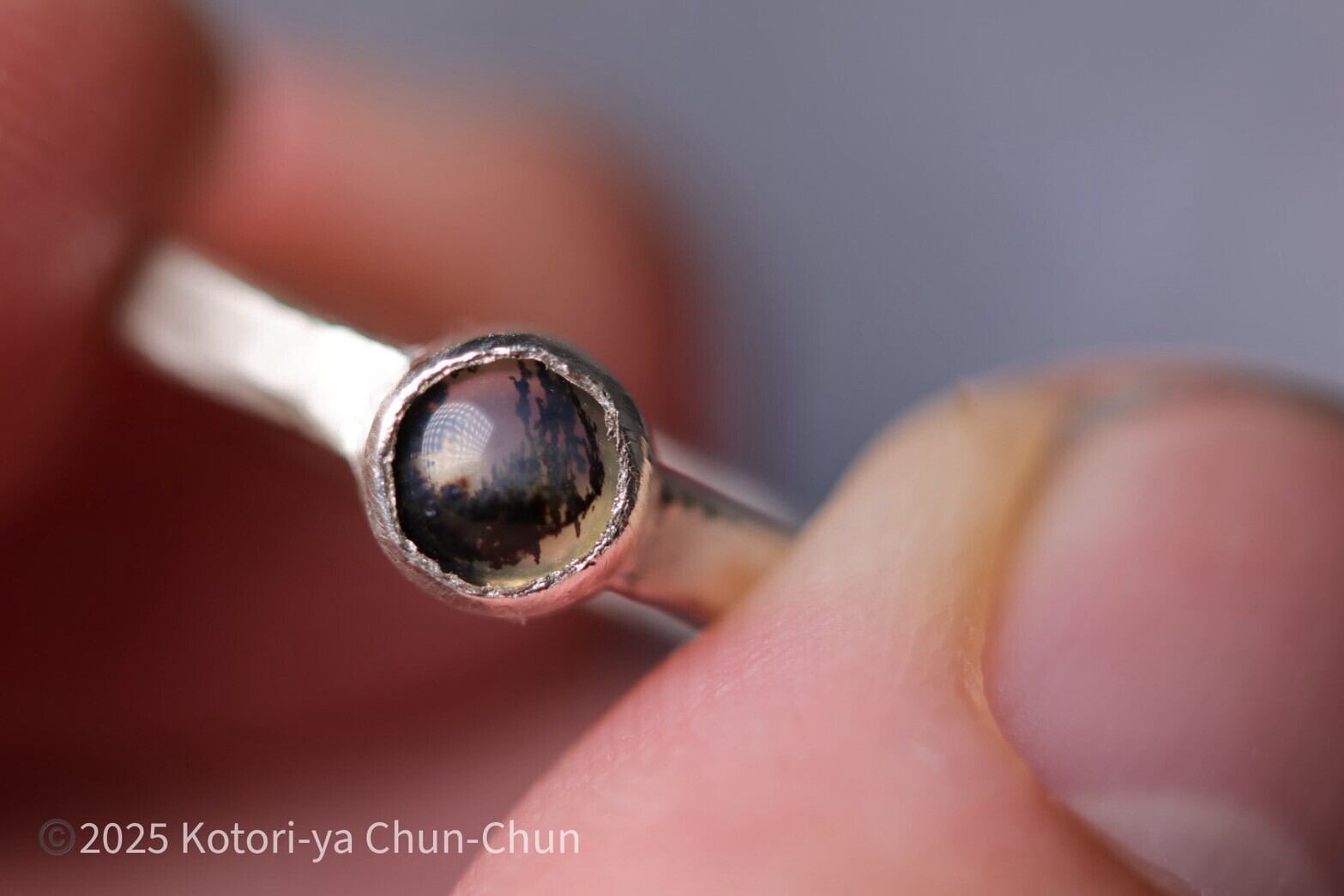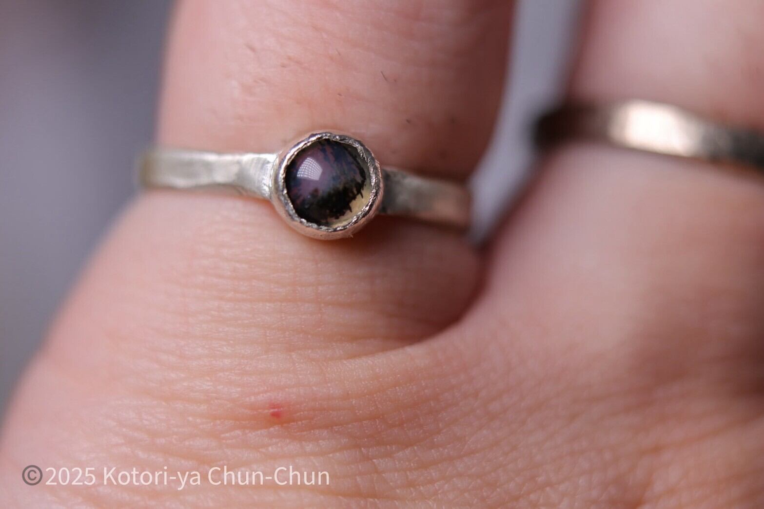 【高級オパール】ペルシャ産微蛍光デントリック・ペルヴィアン・オパール・シルバーリング【霧ノ森】