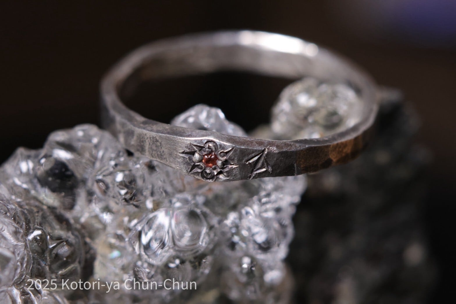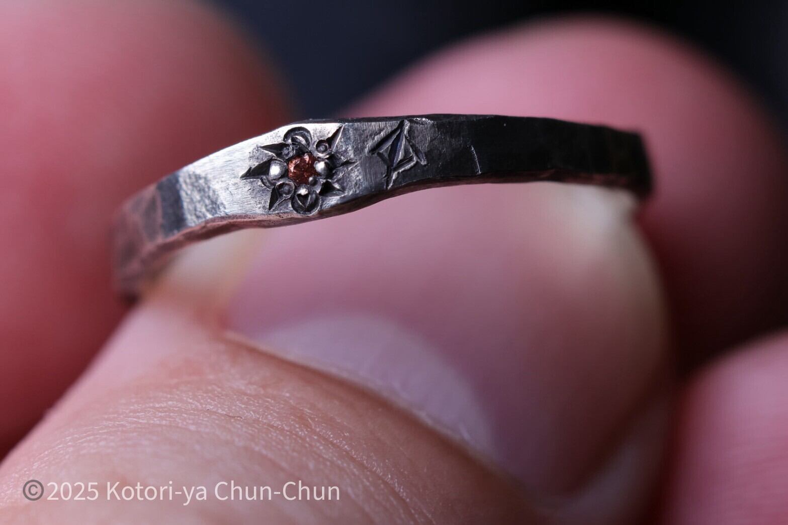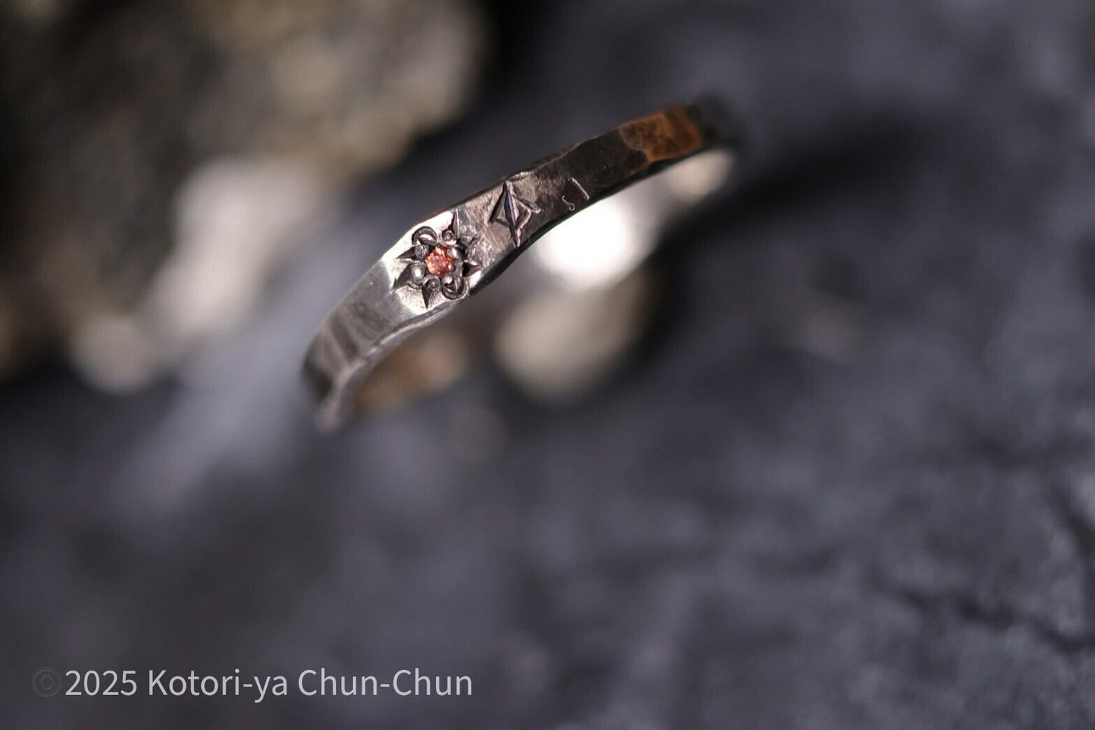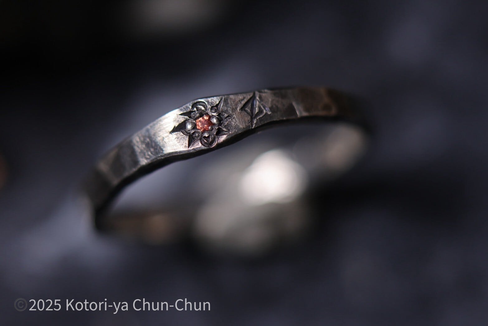 【ルーン文字×石言葉】幻の宝石 レッドダイヤモンド・シルバーリング【小鳥屋ルーン『常勝』】