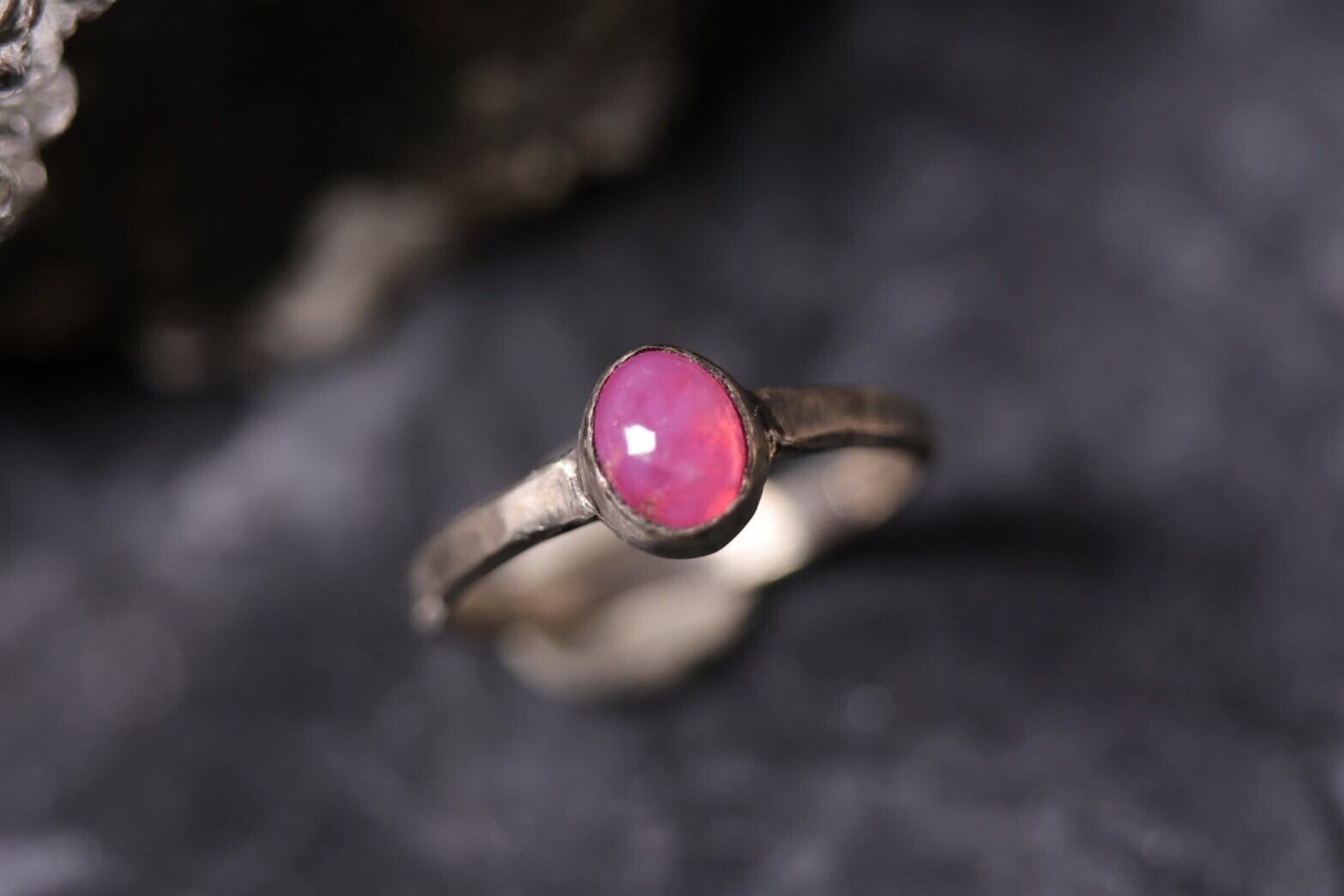 【キャンディ・スピネル】ミャンマー産蛍光シルキーホットピンクスピネル・シルバーリング【炎朱】