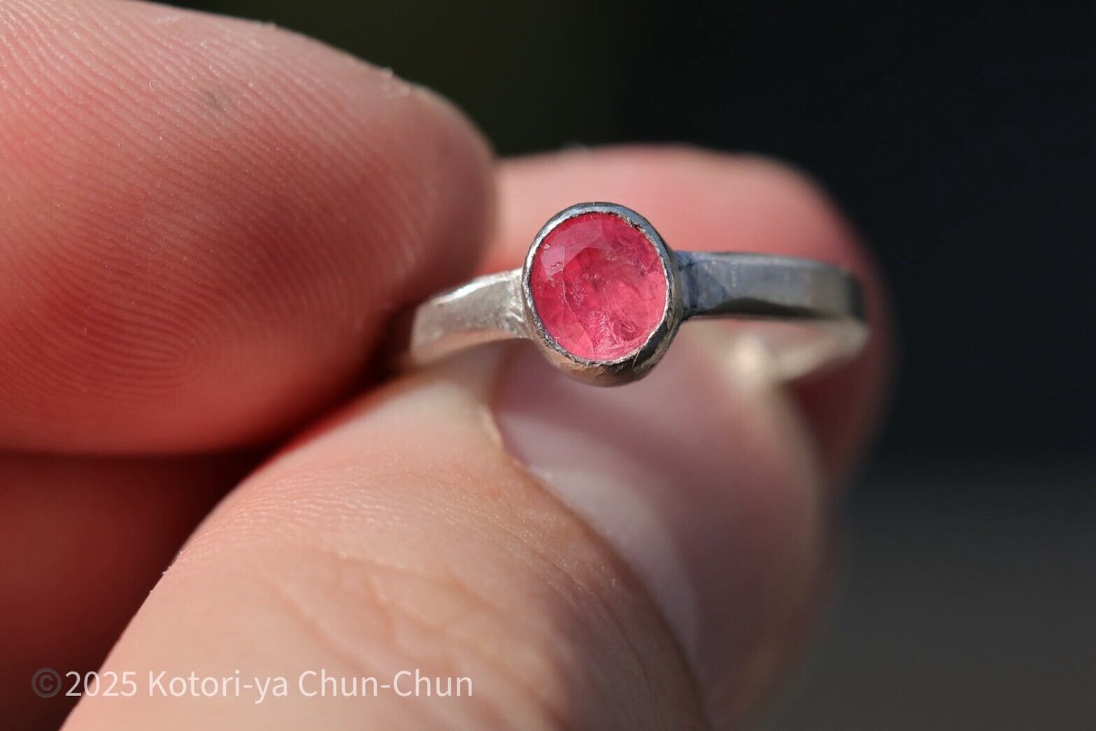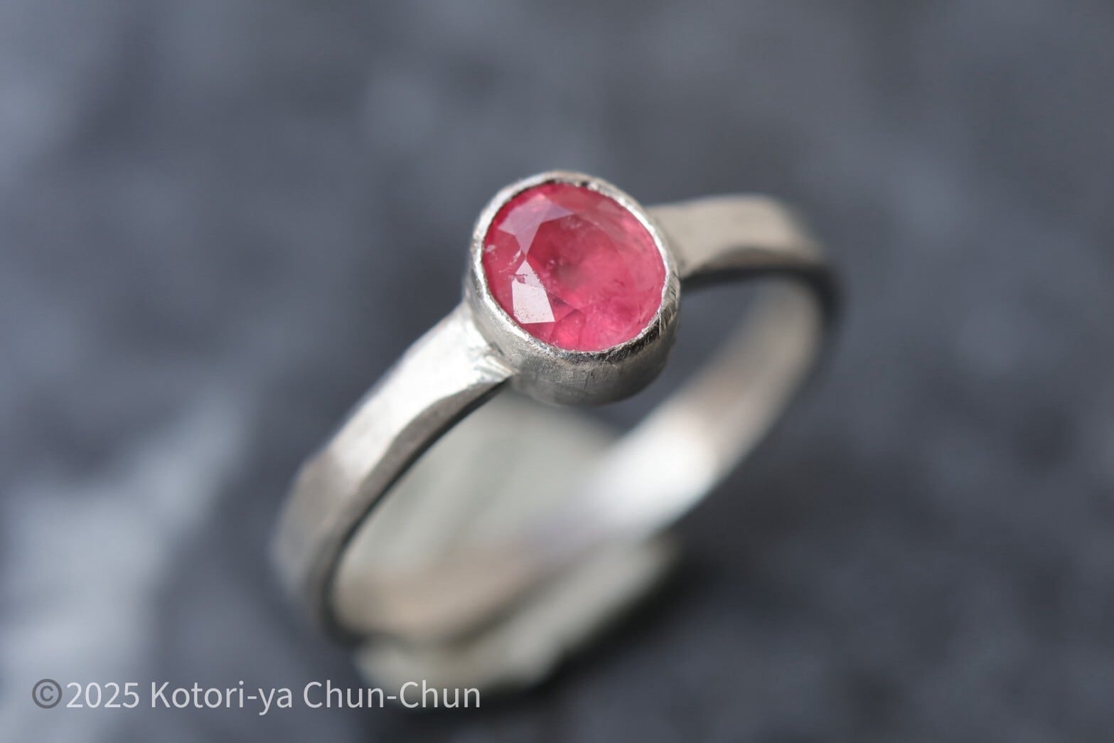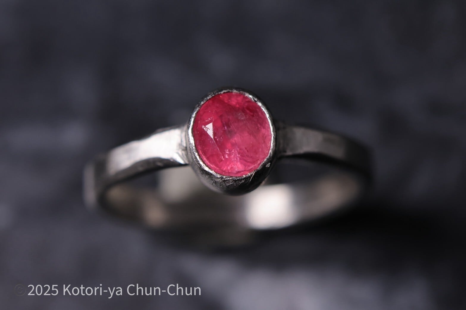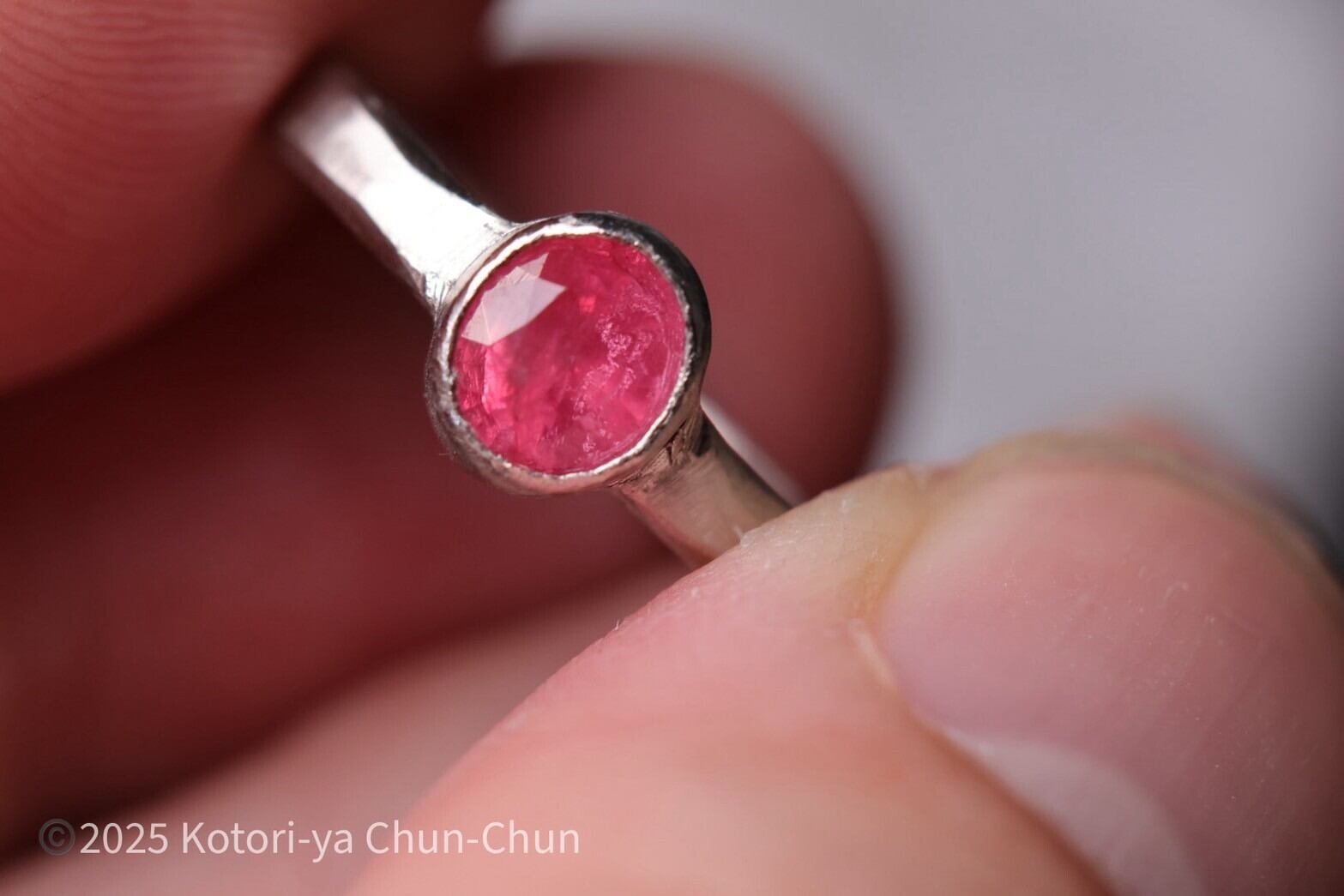 【小鳥屋ジュエリー】「アラジン」のタンザニア・マヘンゲ産蛍光マヘンゲスピネルPt900リング【莟紅姫】