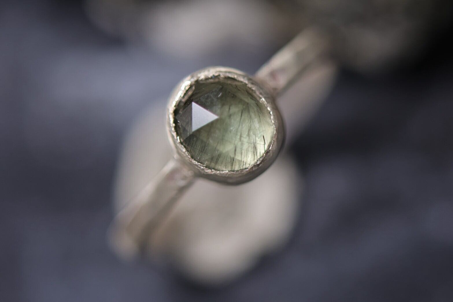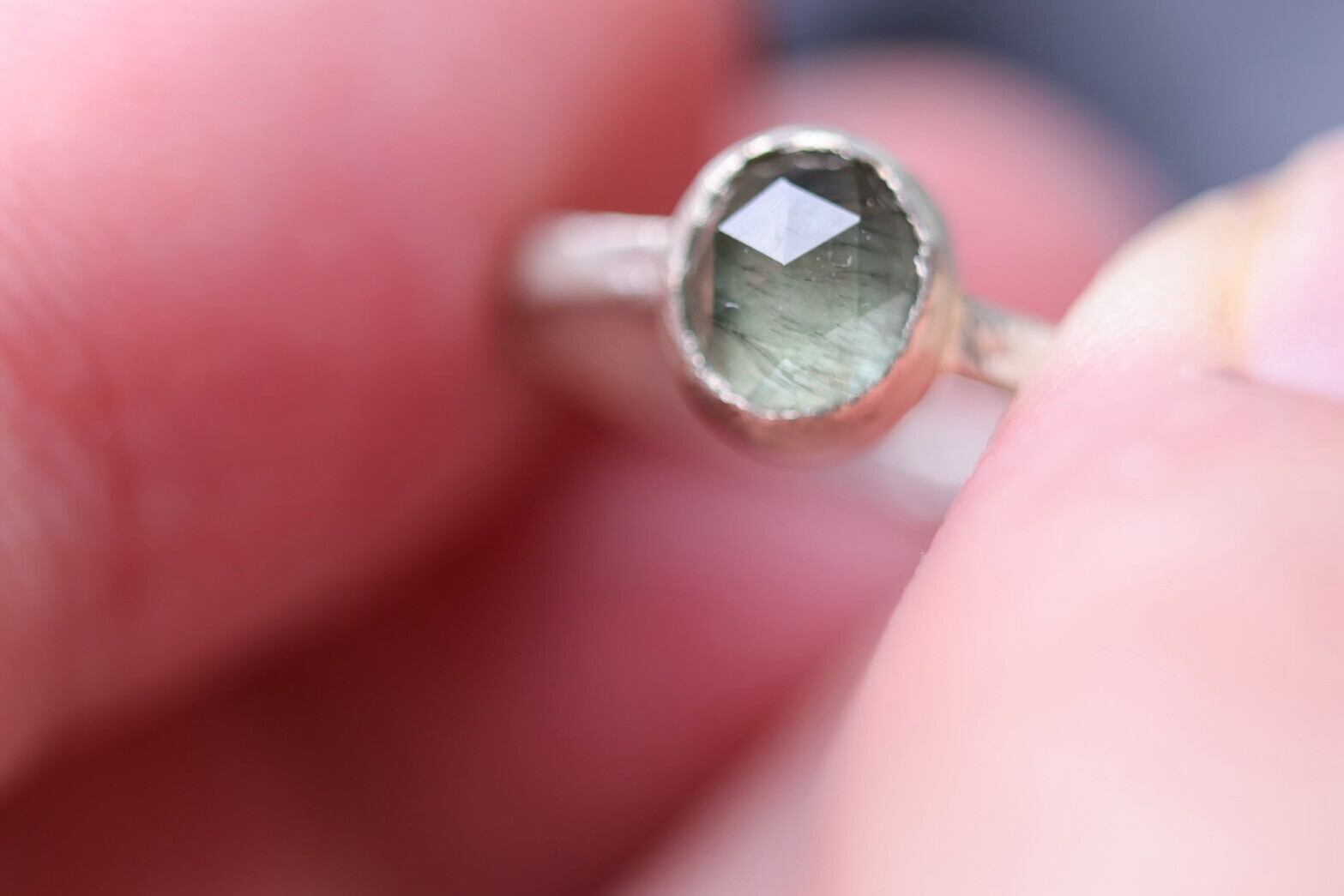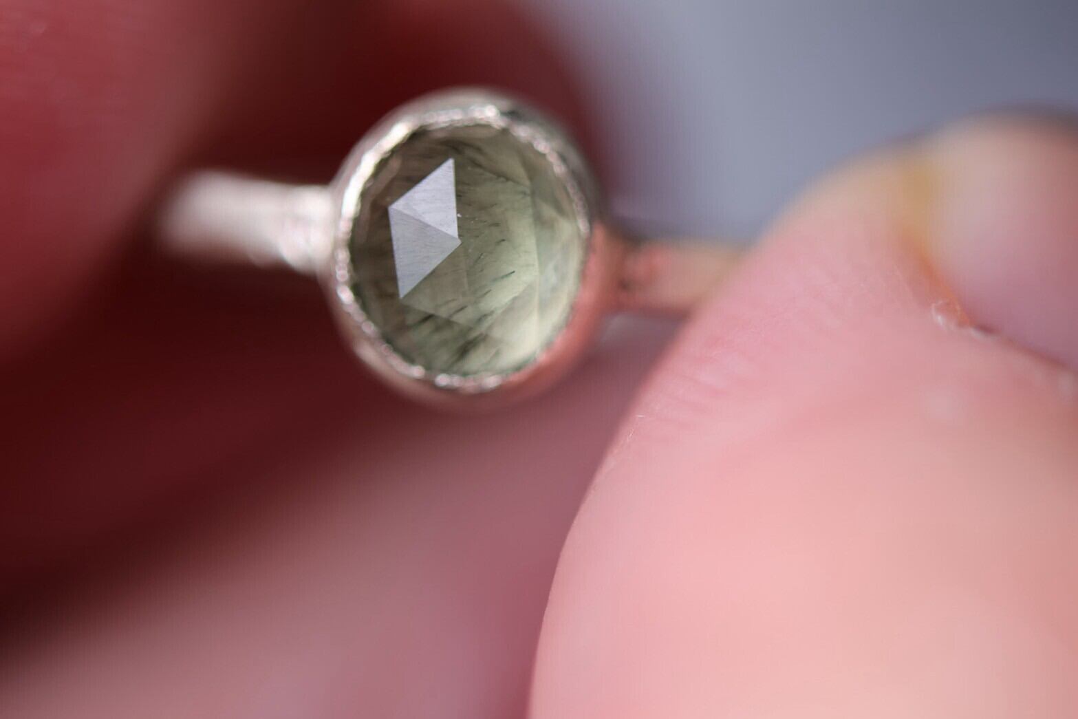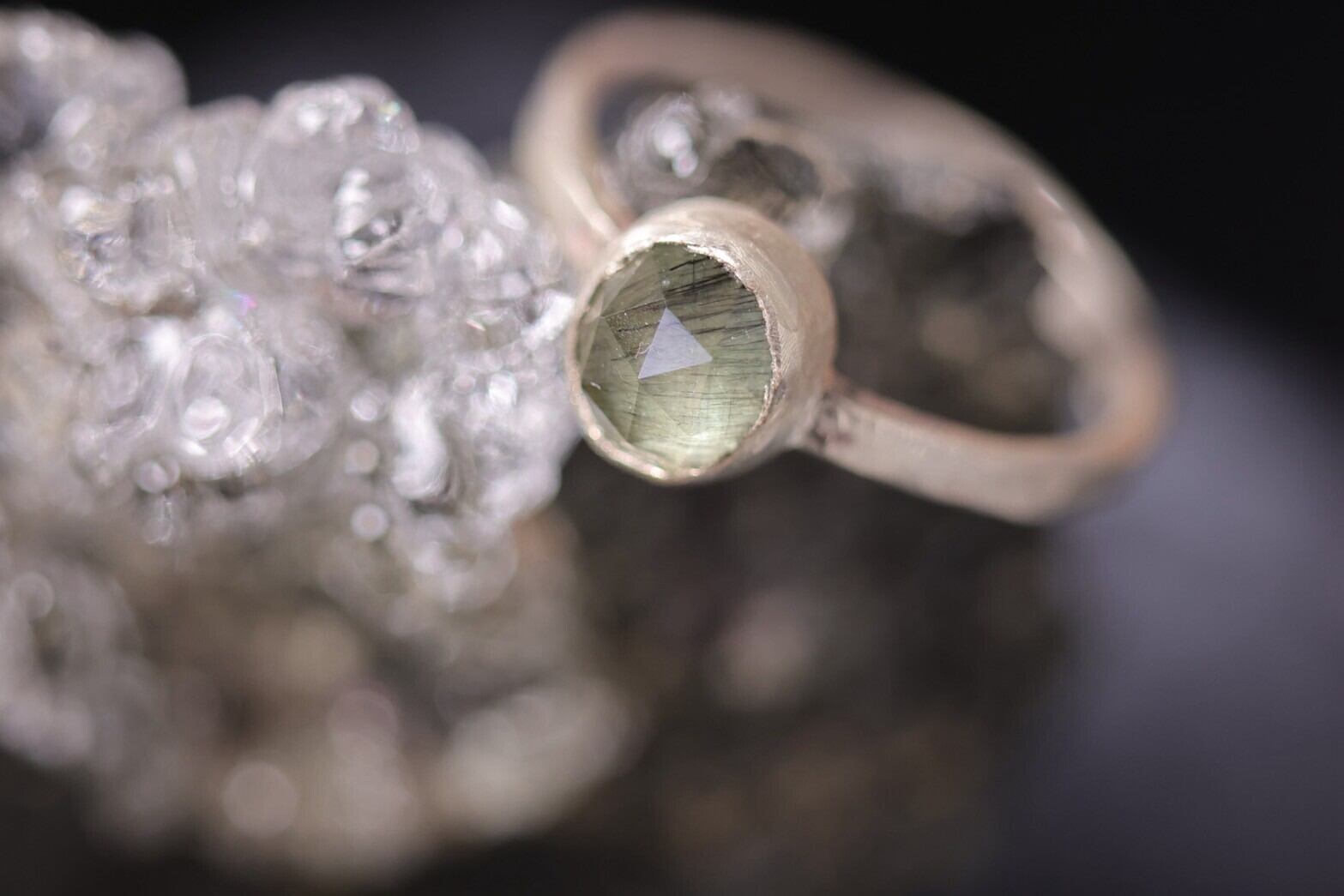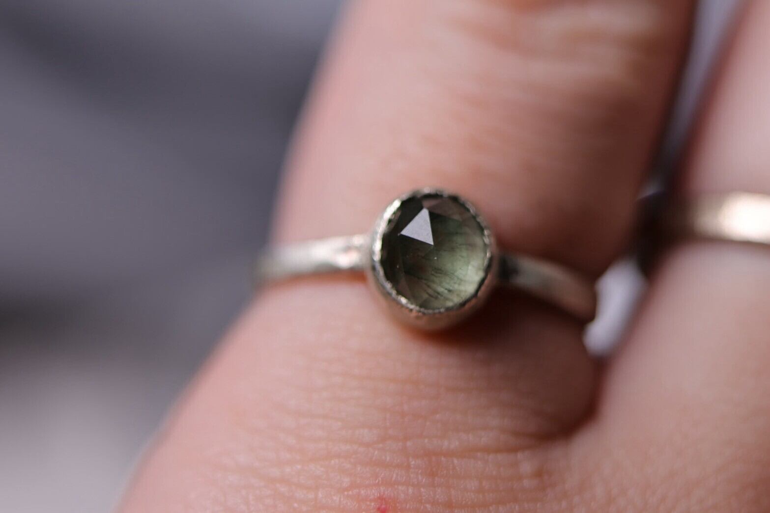 【超激レアの誕生石】特注ローズカット パキスタン産ルドヴィジャイトインペリドット・シルバーリング【黒流星】