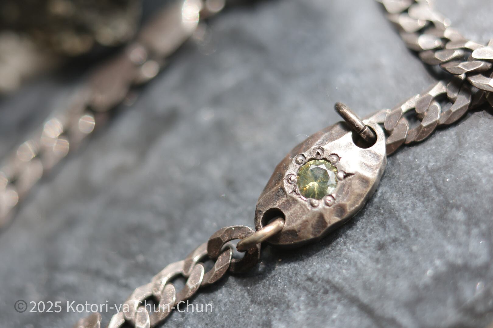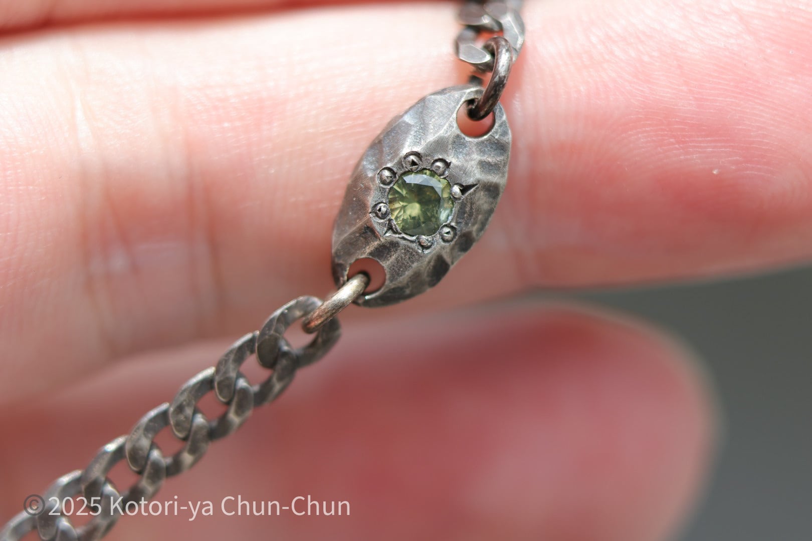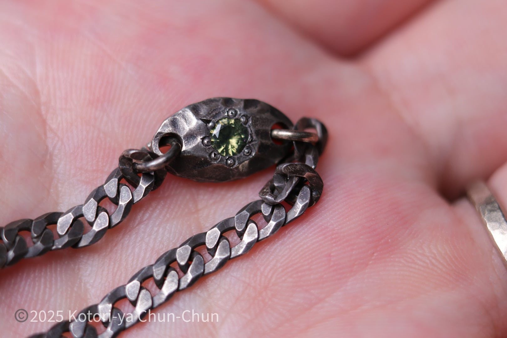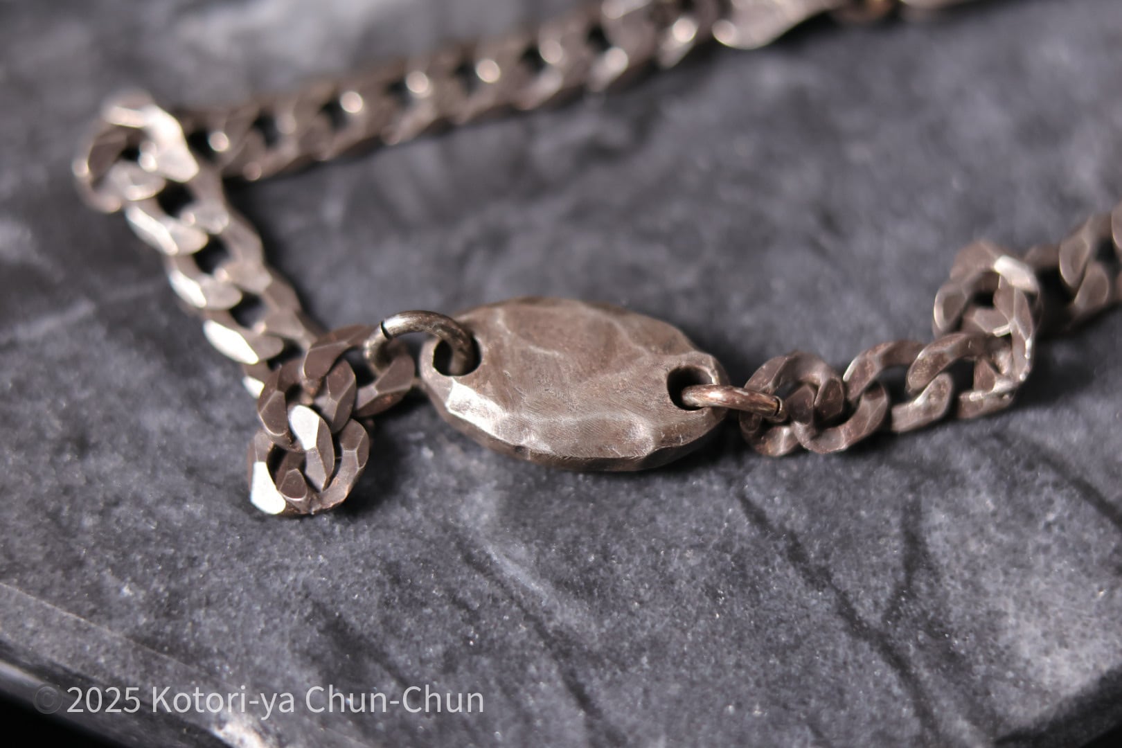 チェーンの太さもユニセクシャルに着けられるように苦心しました。この太さなら日常使いでブチッといくことも少ないはずだし。