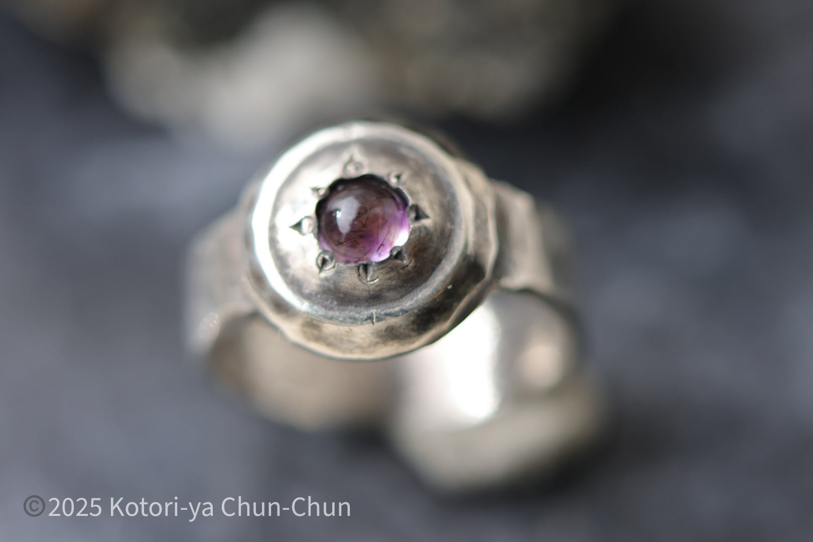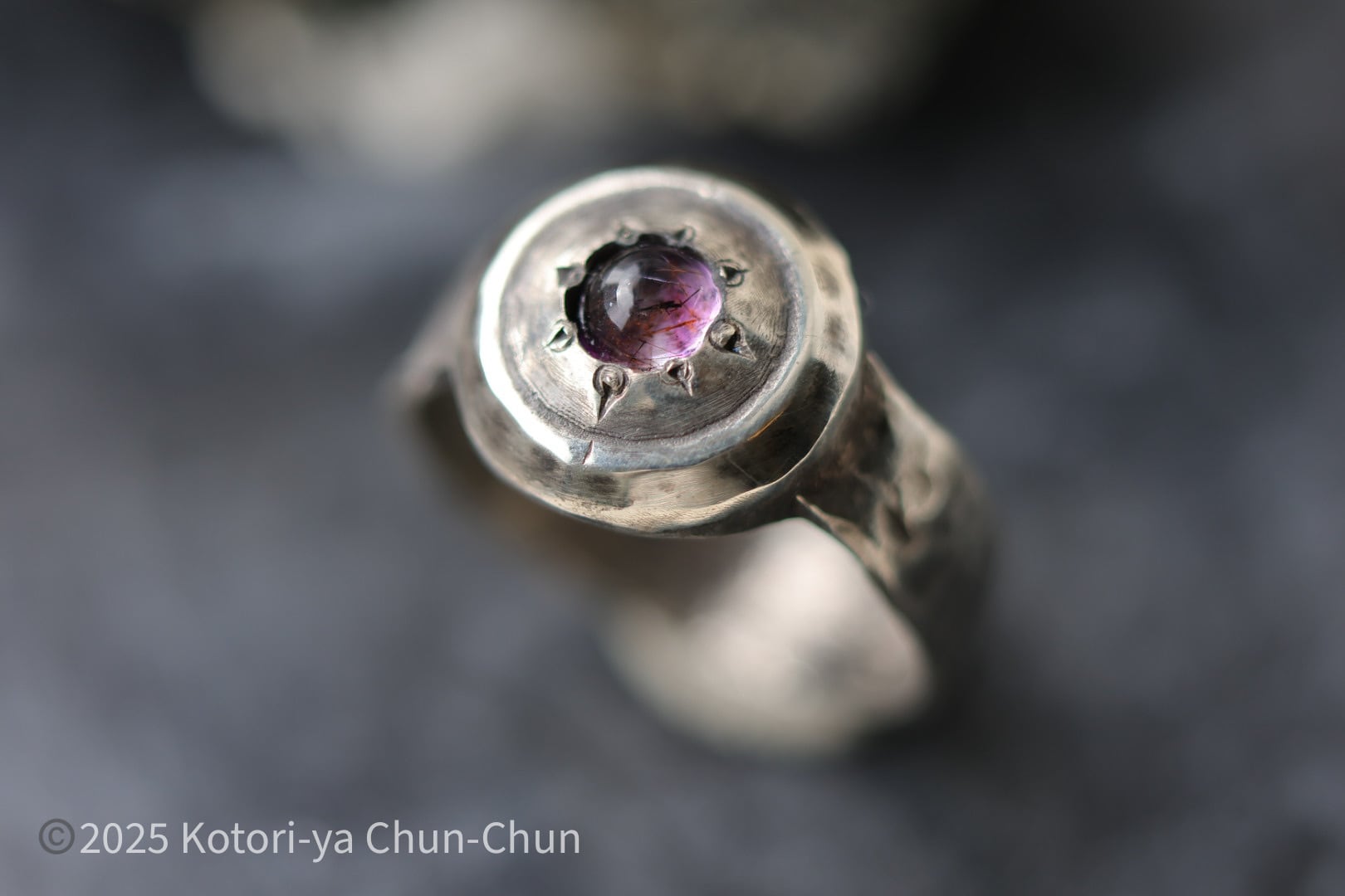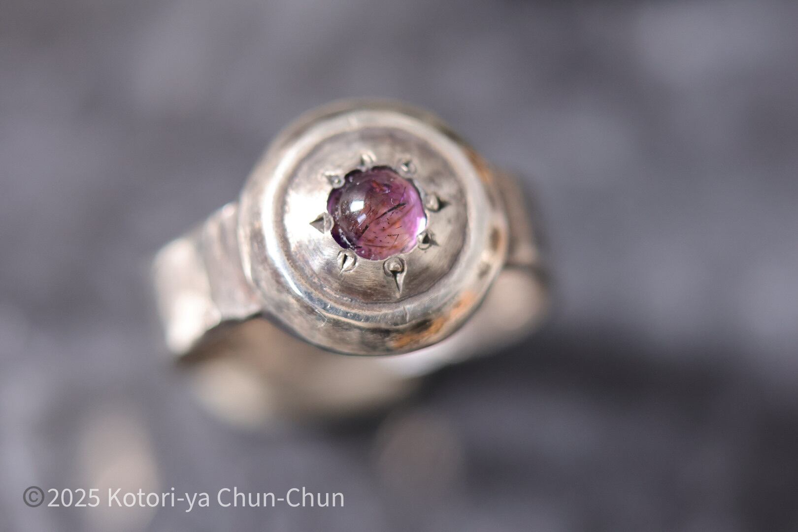 【盾シリーズ】特注カット スーパーセブン(アメシスト)・シールドリング【紫陽花の盾】