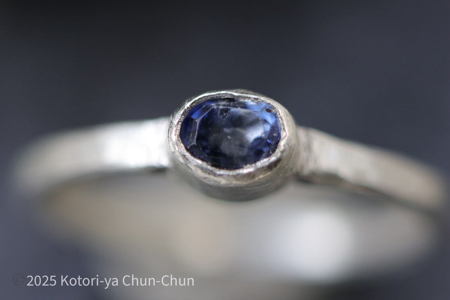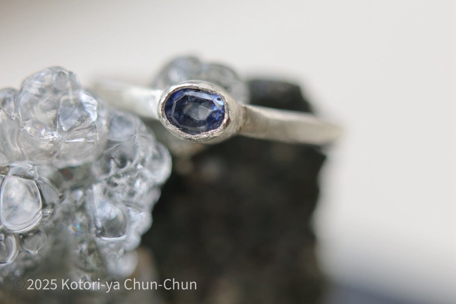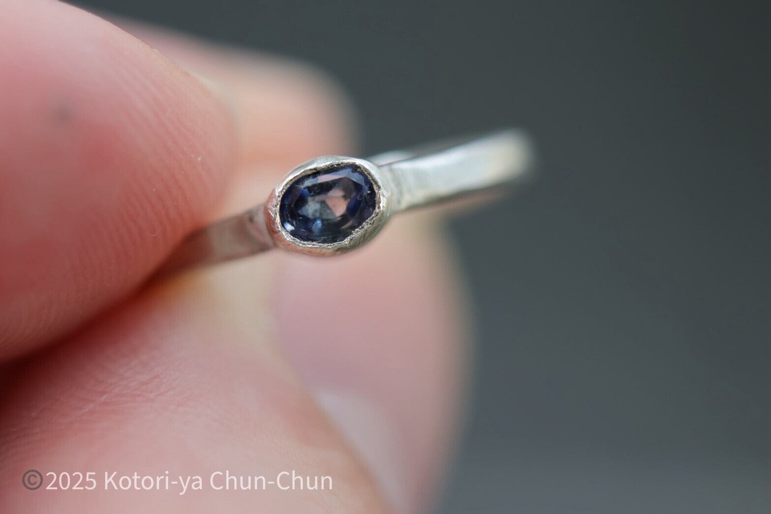 【様々な青が覗ける石】バイカラーブルーサファイア・シルバーリング【多様青】