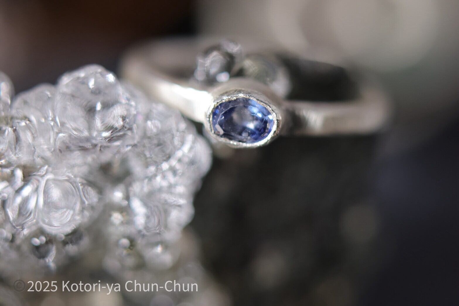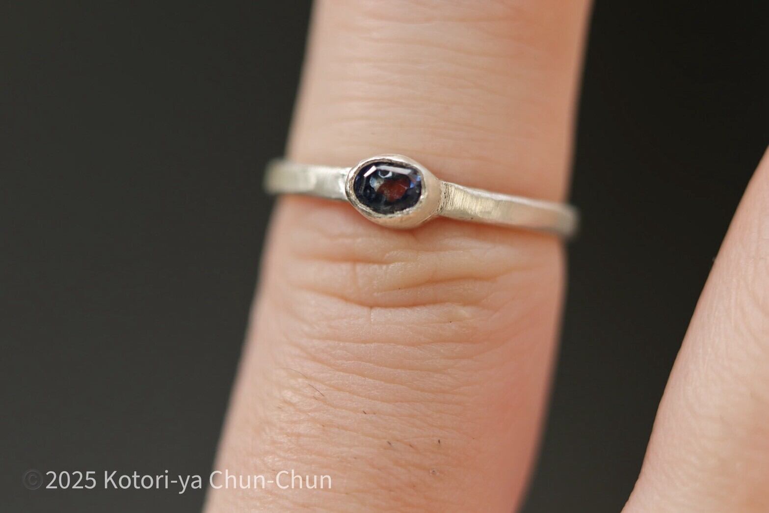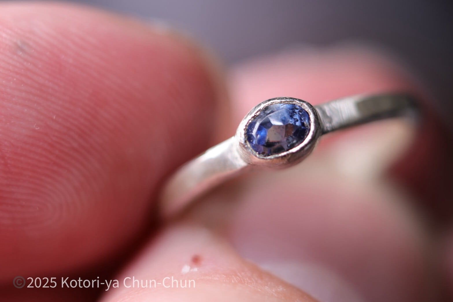 【様々な青が覗ける石】バイカラーブルーサファイア・シルバーリング【多様青】