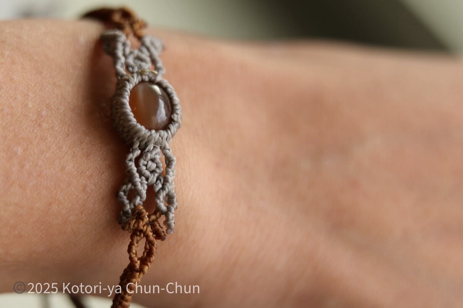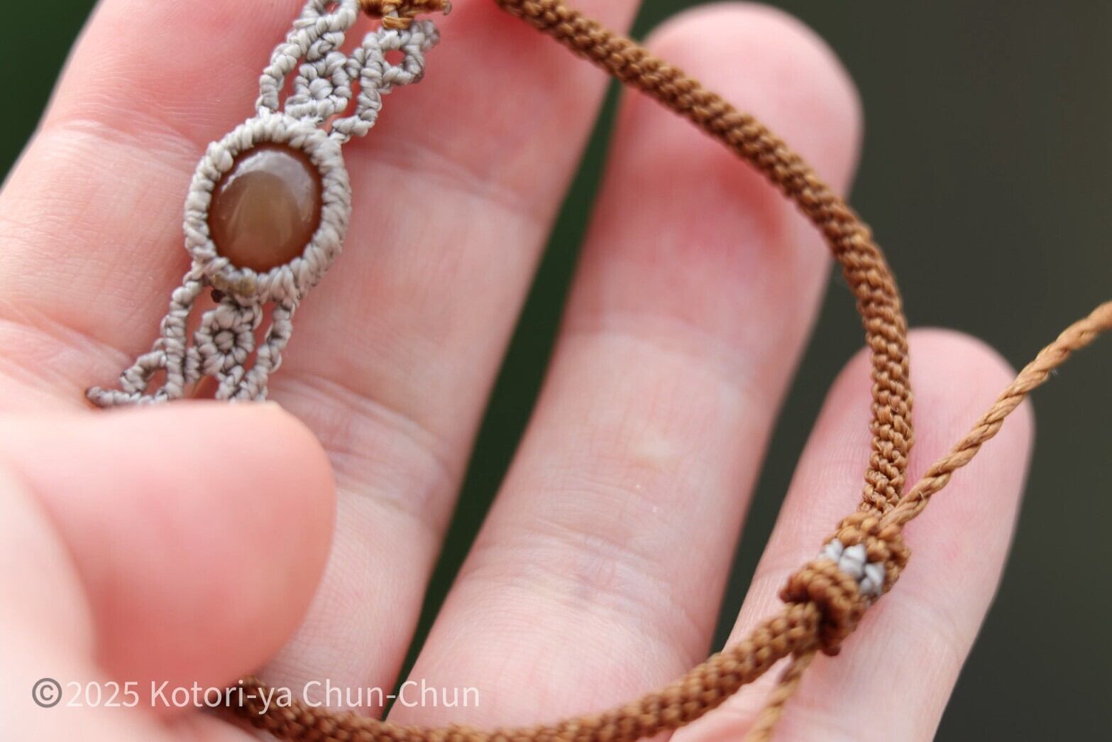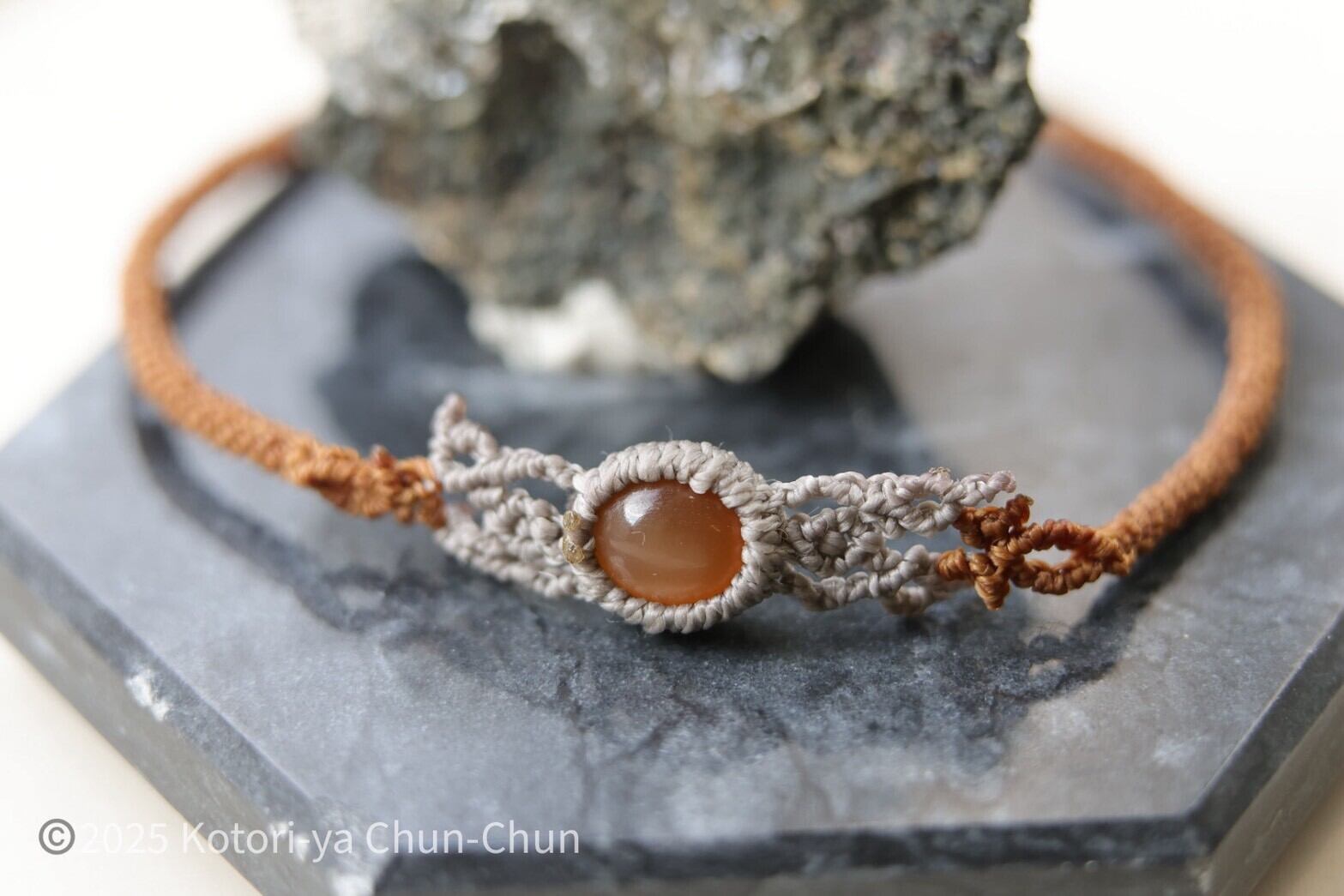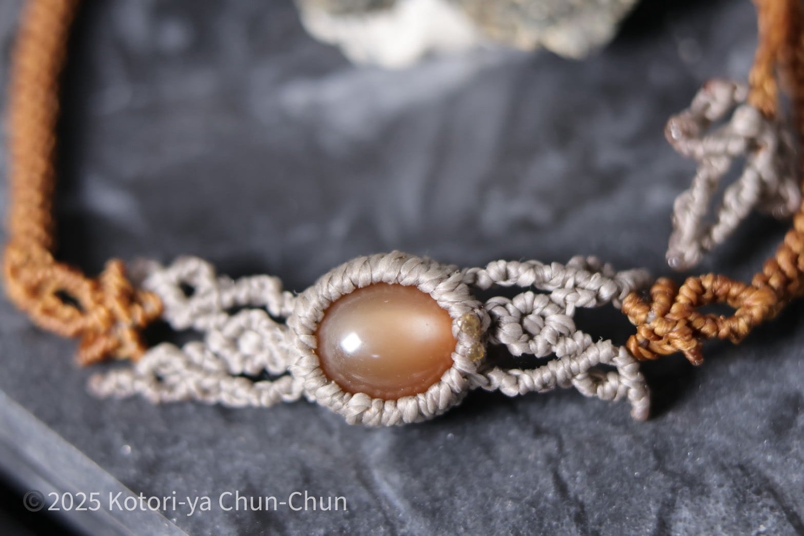 【植物モチーフ】スマイルベアーのオレンジムーンストーン・ミサンガ風マクラメブレスレット【苺月】