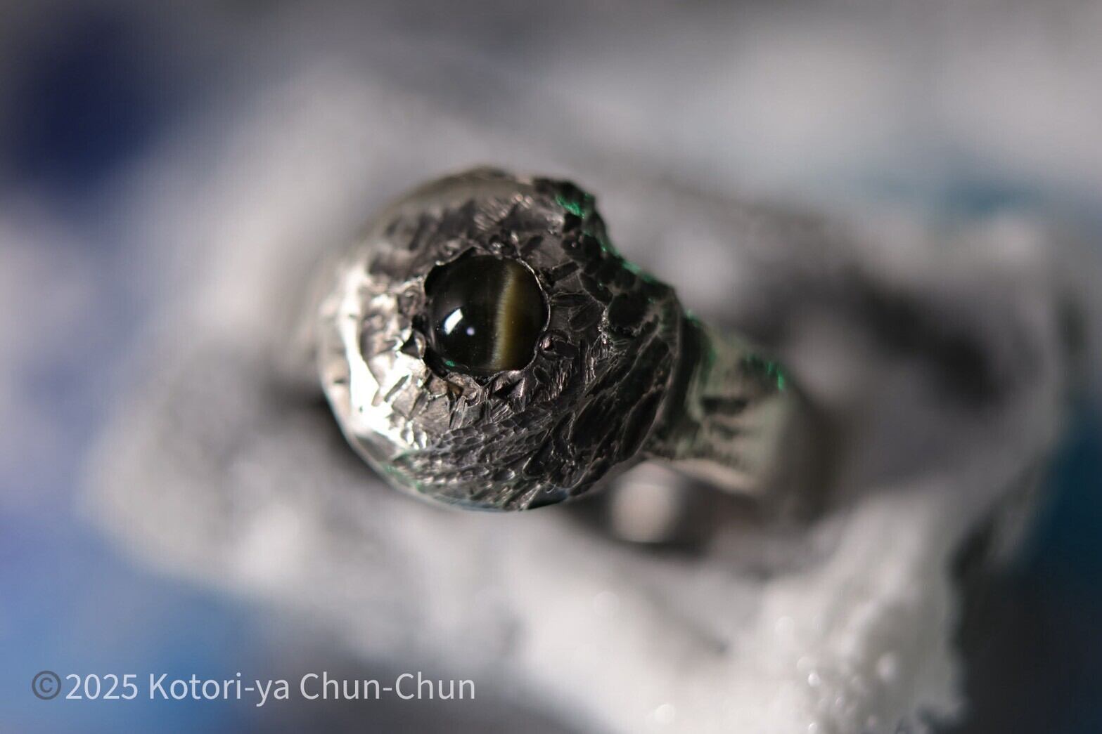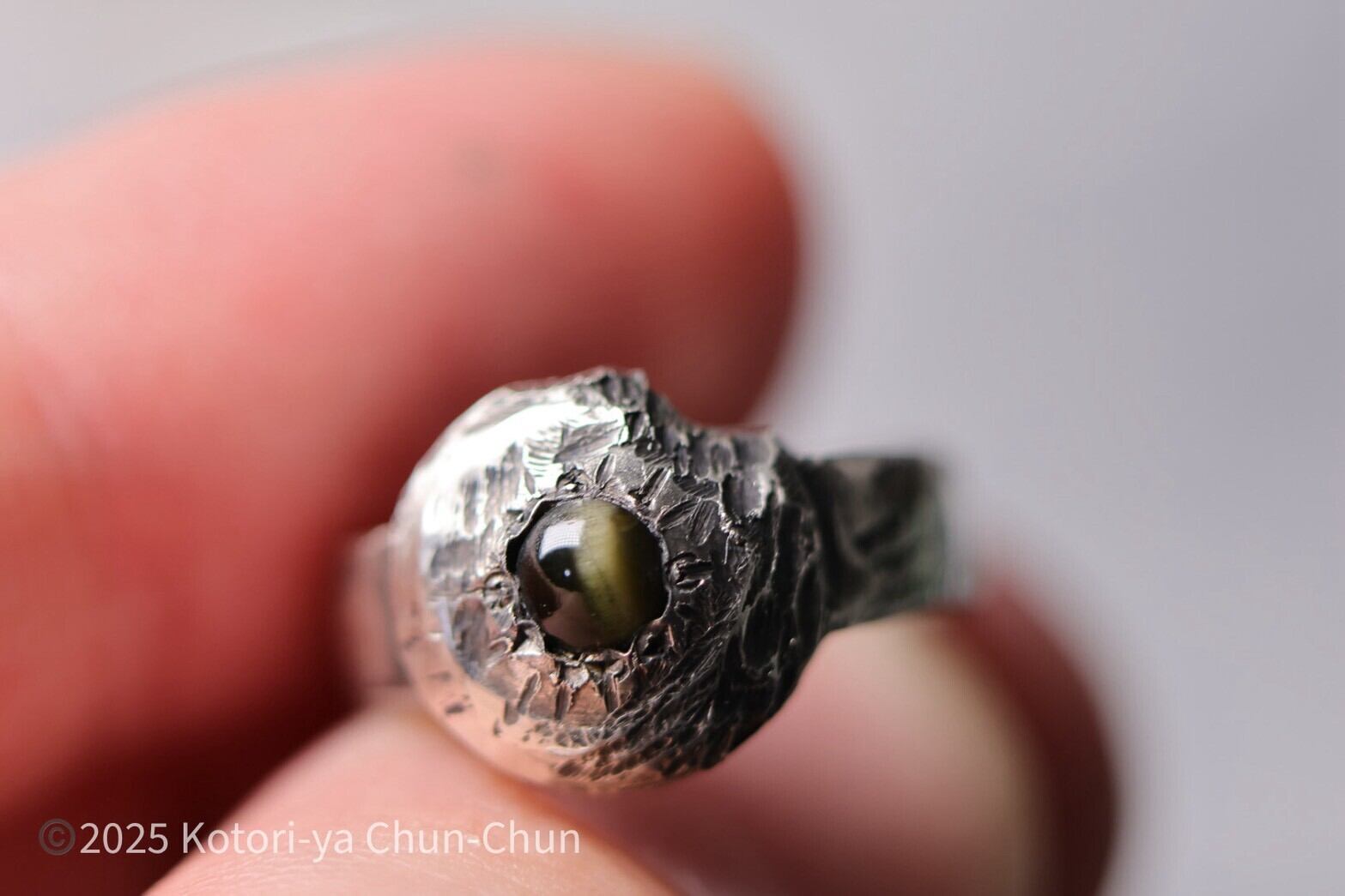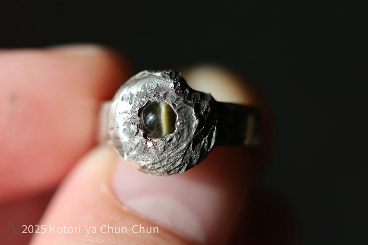 そしてど真ん中に入れた石はとても珍しいコーネルピンのキャッツアイ。