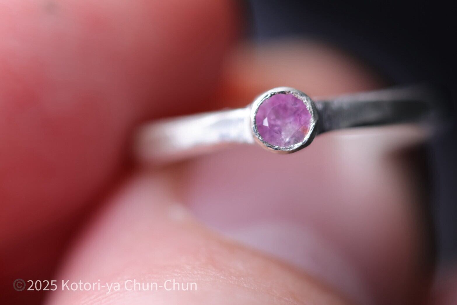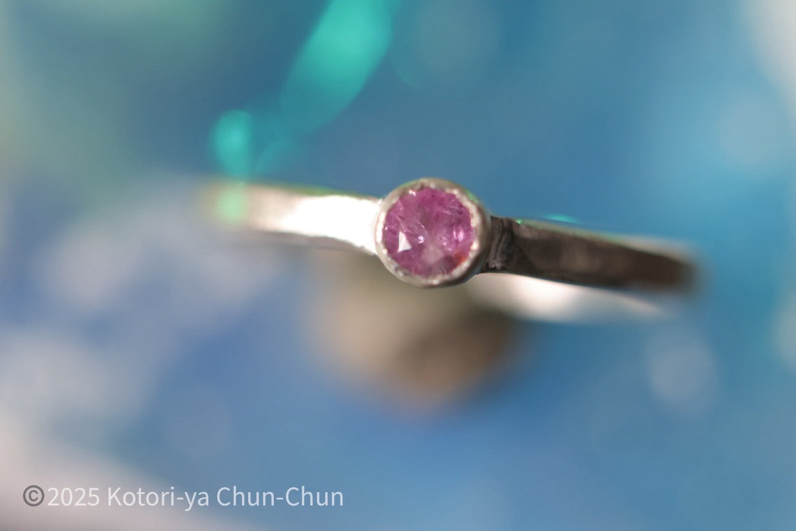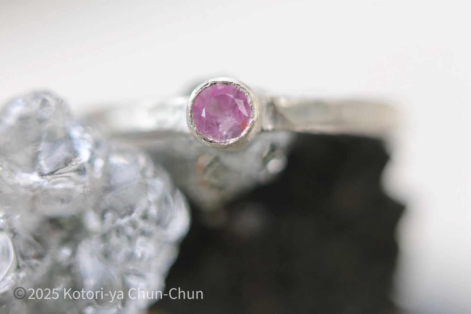 【石感のあるサファイア】バイカラーピンクサファイア・シルバーリング【淡桃】