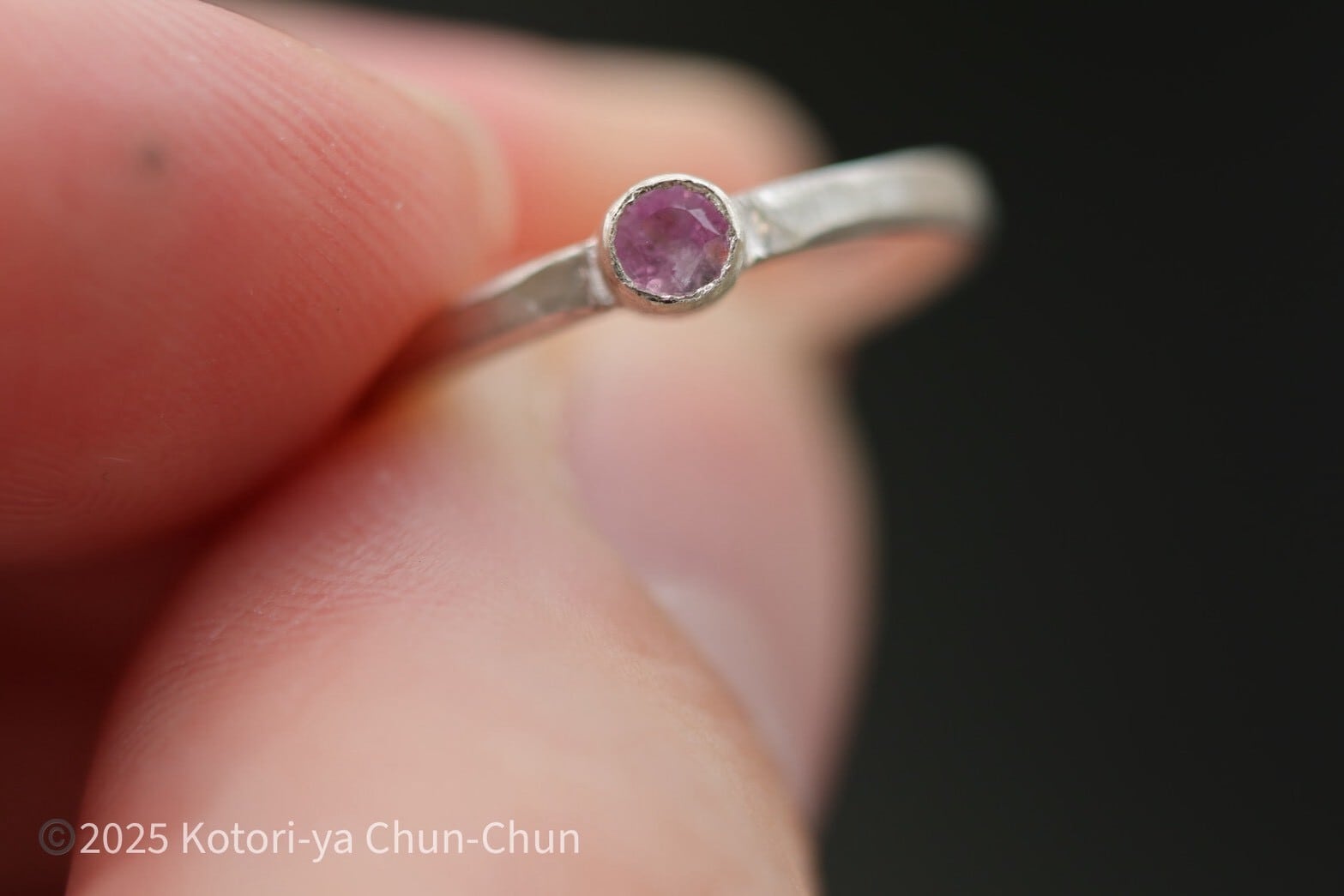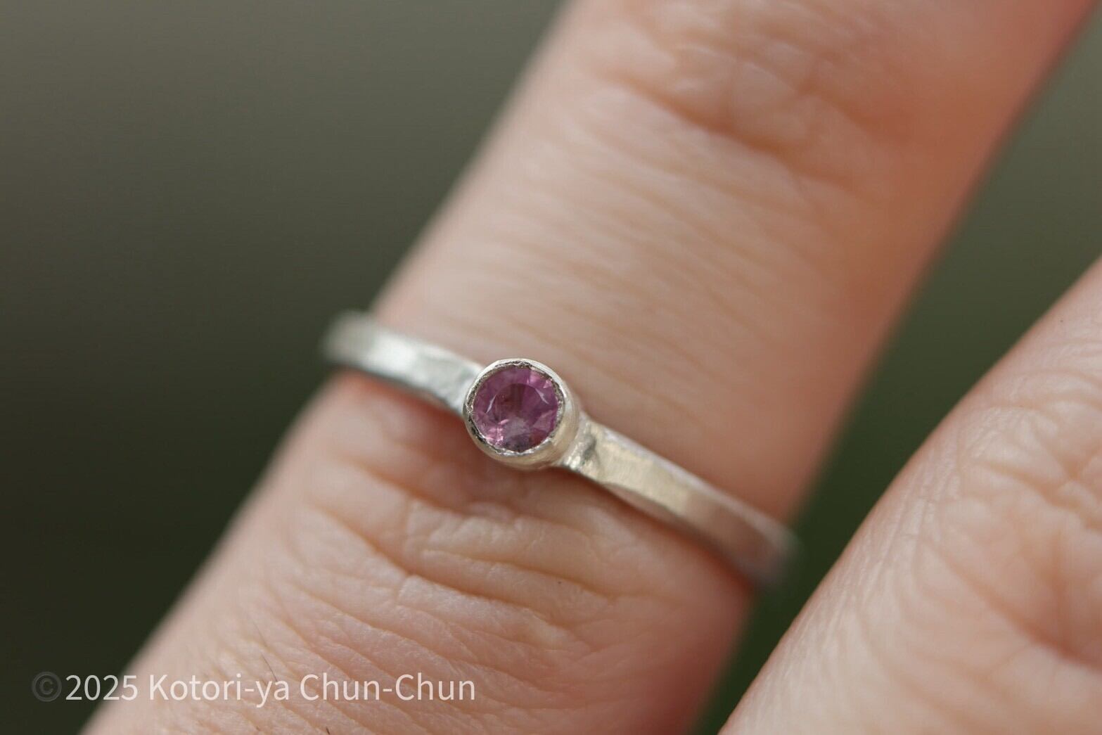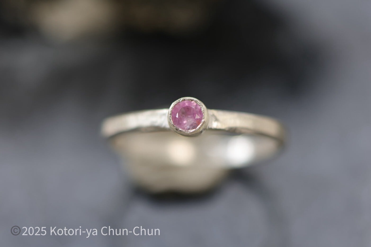 【石感のあるサファイア】バイカラーピンクサファイア・シルバーリング【淡桃】