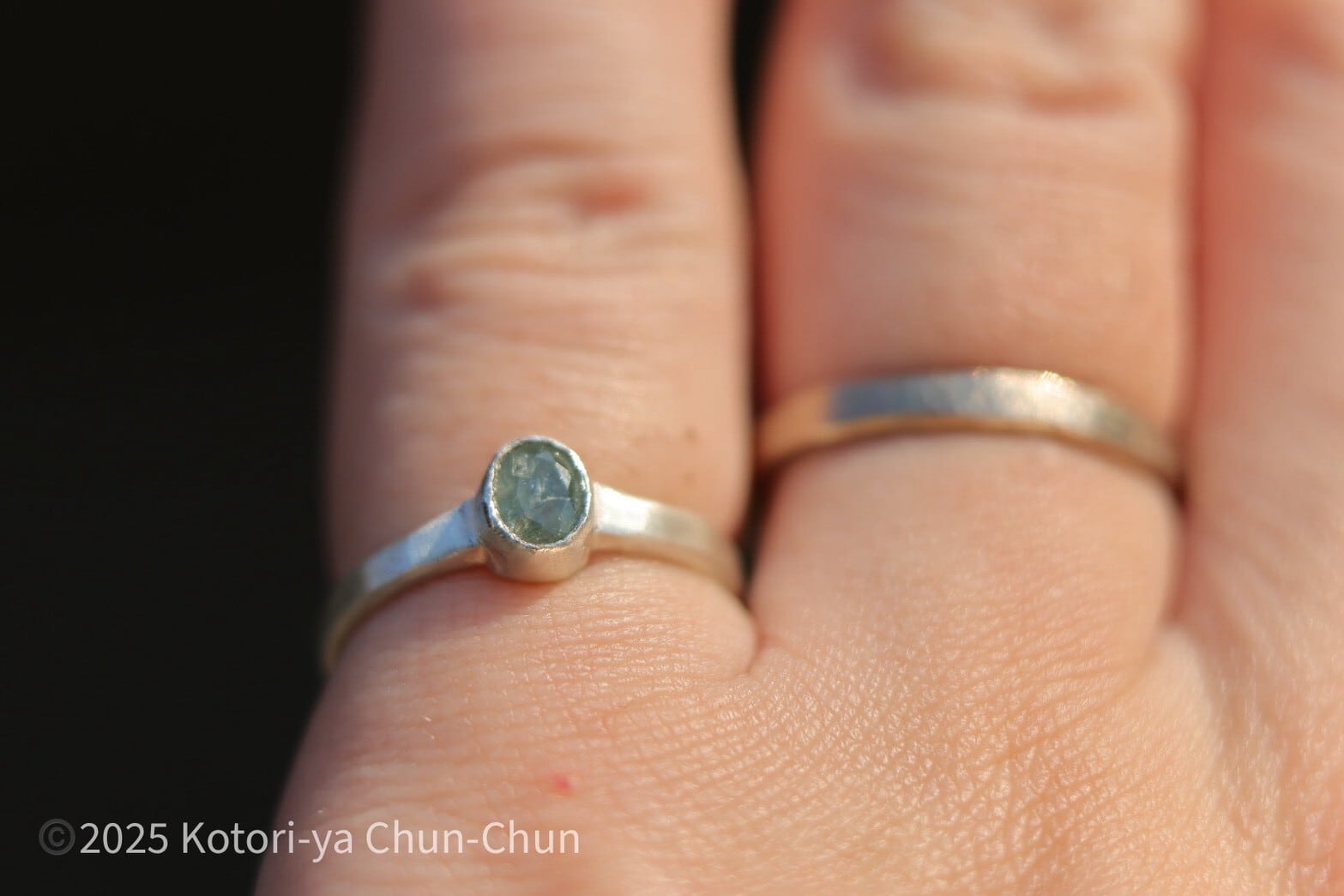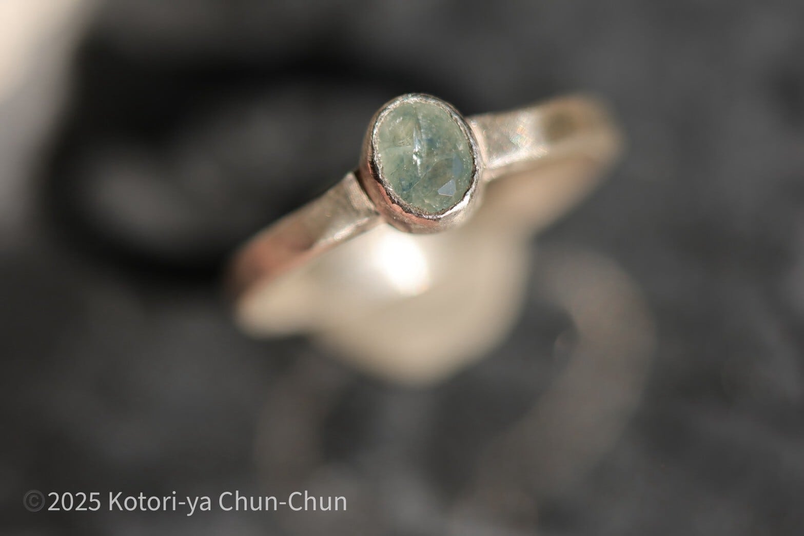アイスブルーカラーの中に青い絵の具を垂らしたような石なので、この子の銘は【垂青(すいせい)】とします。