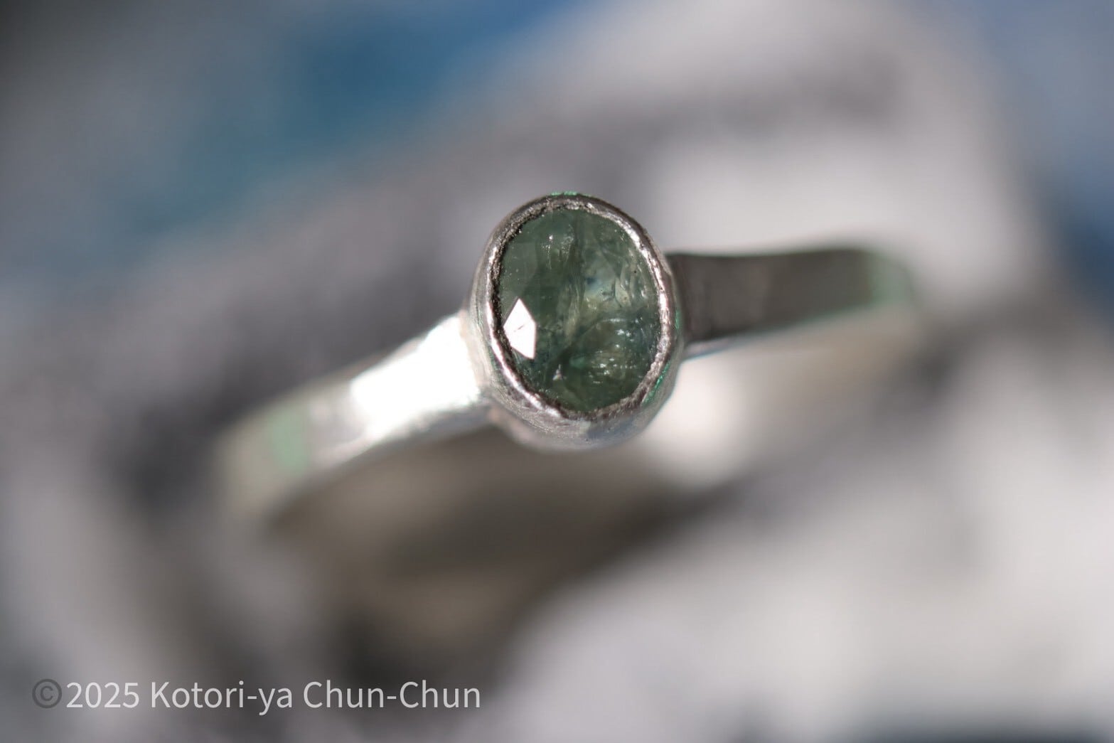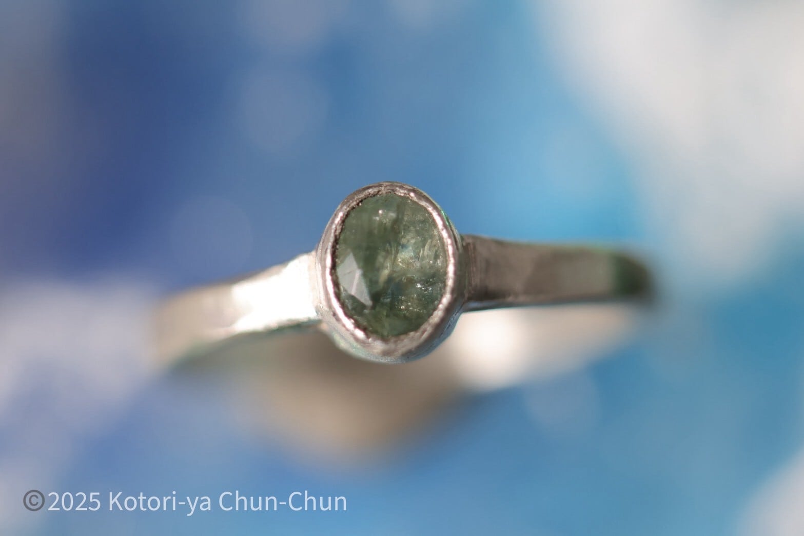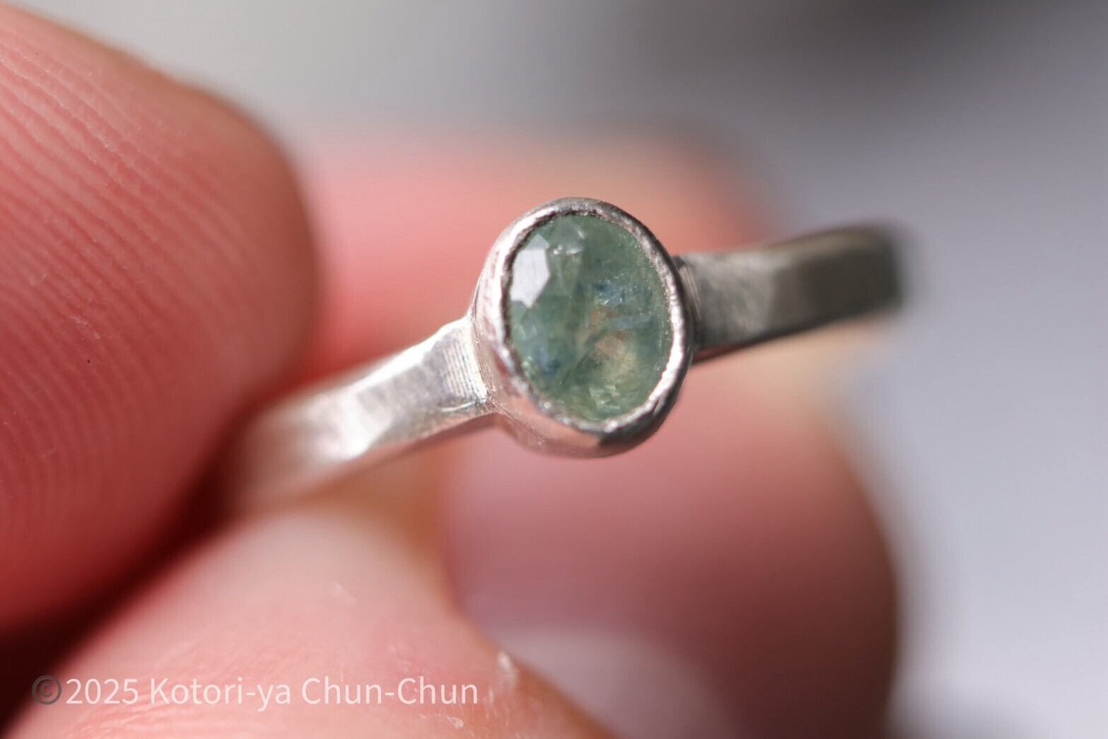 【タイのお土産】アフリカ産バイカラーアイスブルーサファイア・シルバーリング【垂青】