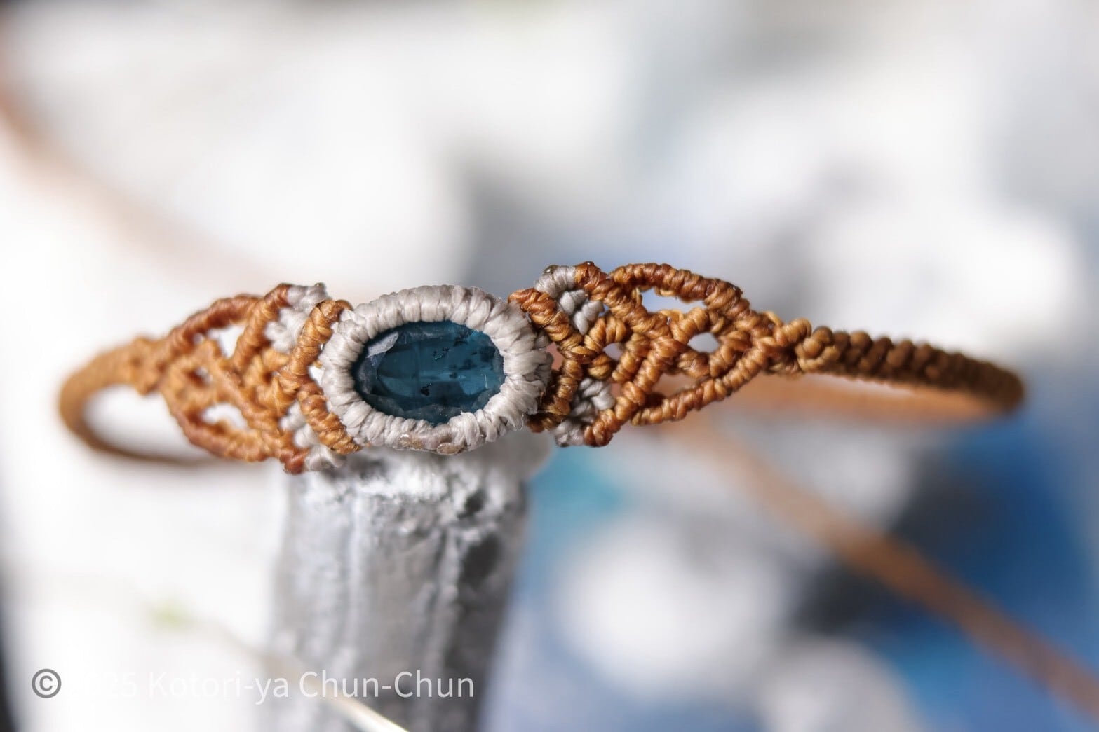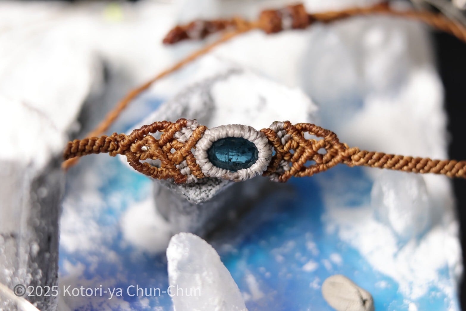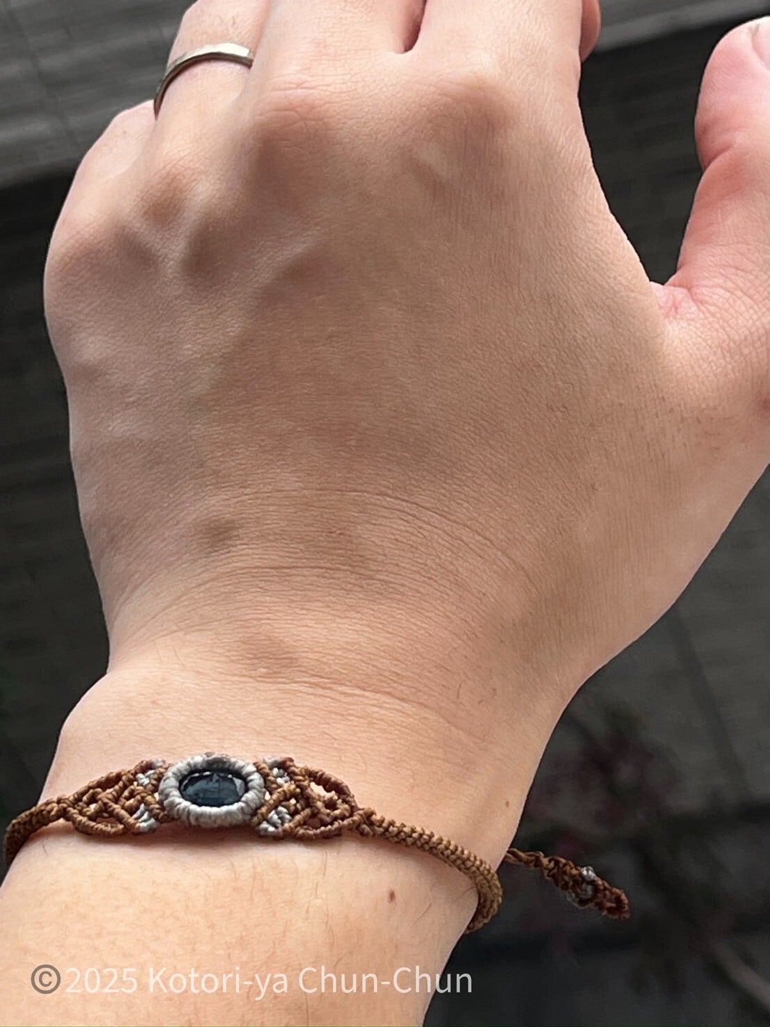【スマイルベアーシリーズ】スマイルベアーのYashのブラジル産モスカイヤナイト・マクラメブレスレット【碧海】