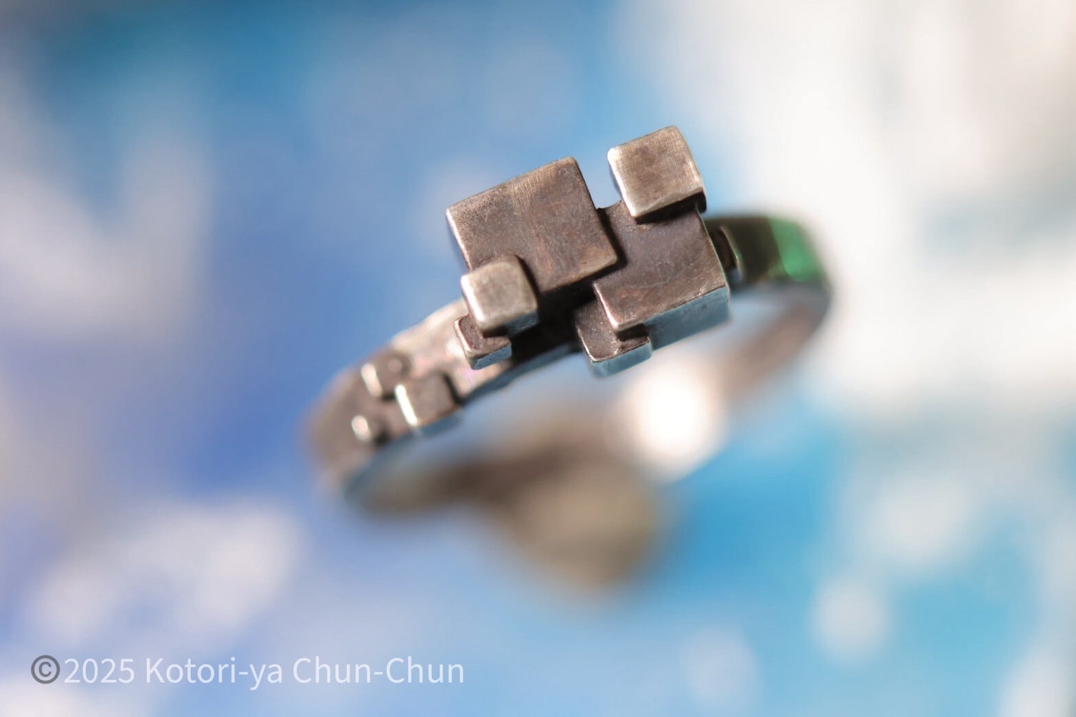 立方体をランダムな大きさでランダムに配置したリングなんですが、着想は近年の映像作品でよく見る作中のVR系のゲームの中とかでゲームオーバーになる時、キャラクターがキューブ状に霧散するヤツ( ◜ω◝ )