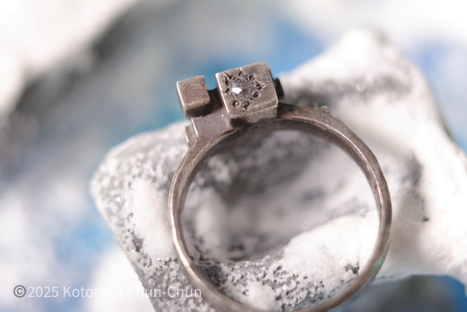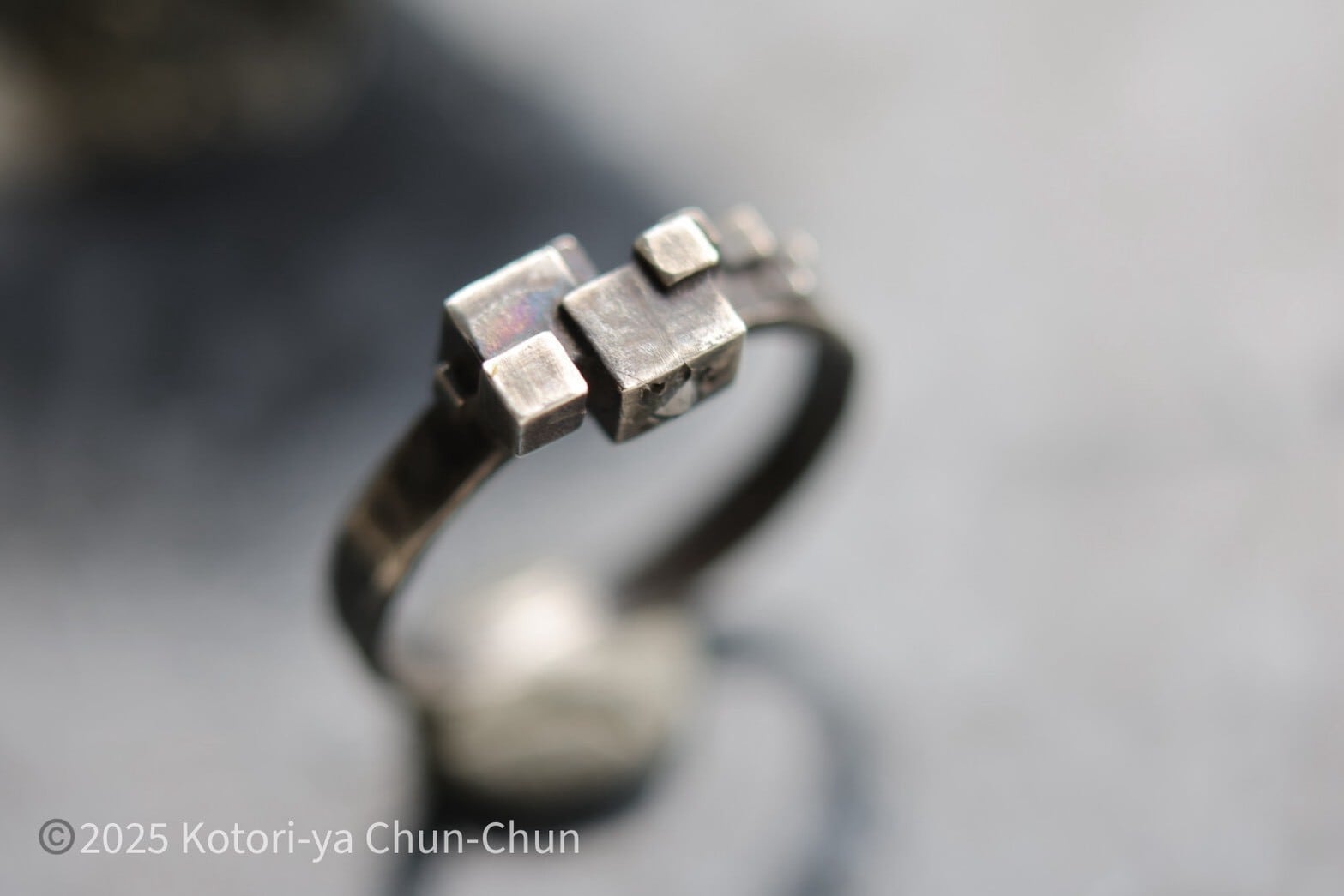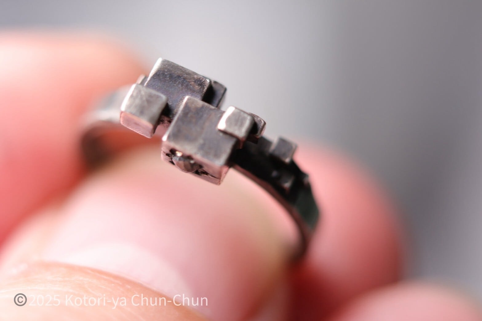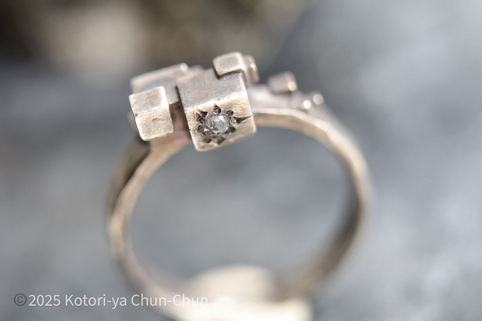 【小鳥屋グッドデザイン賞2025】Yashのローズカットソルト&ペッパーダイヤモンド・キューブリング【灰匣】