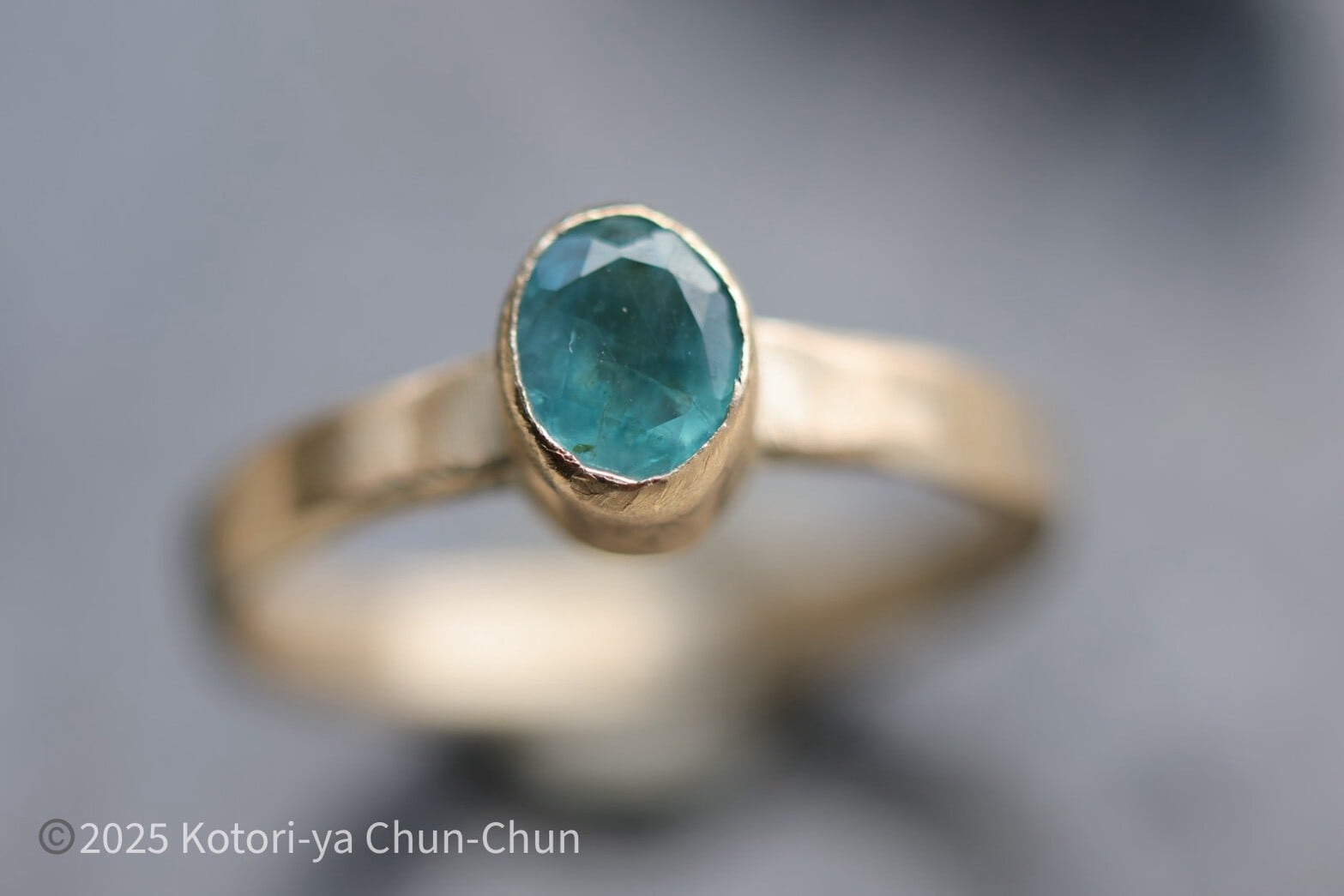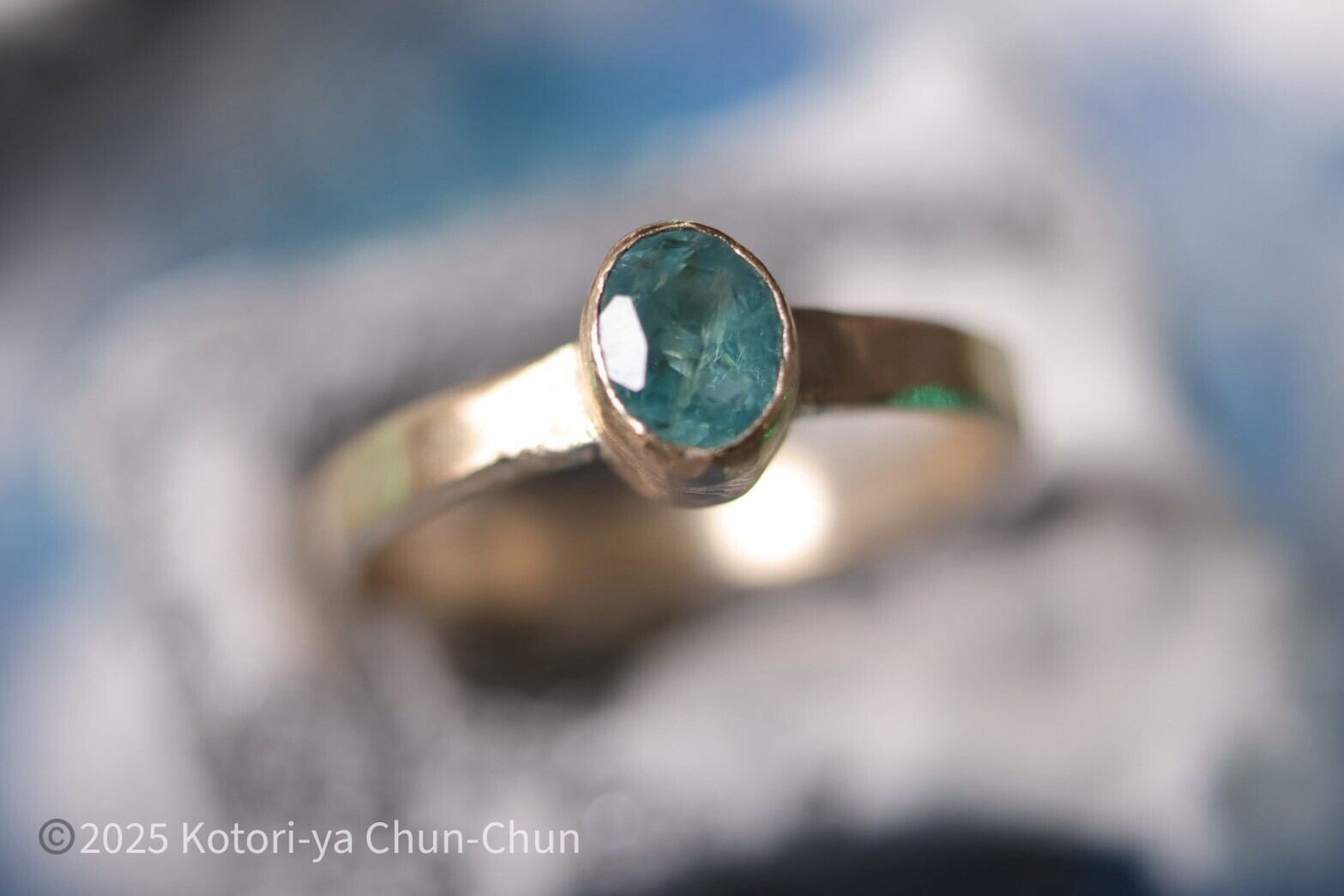 【小鳥屋ジュエリー】特注カット ズィーシャンのグランディディエライト・K10YGリング【蒼艶】