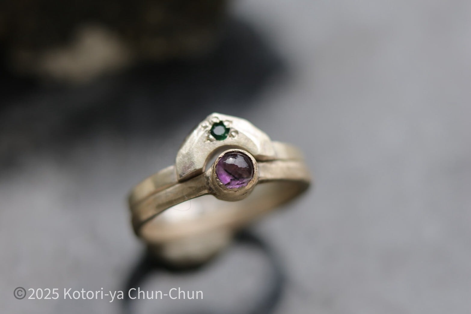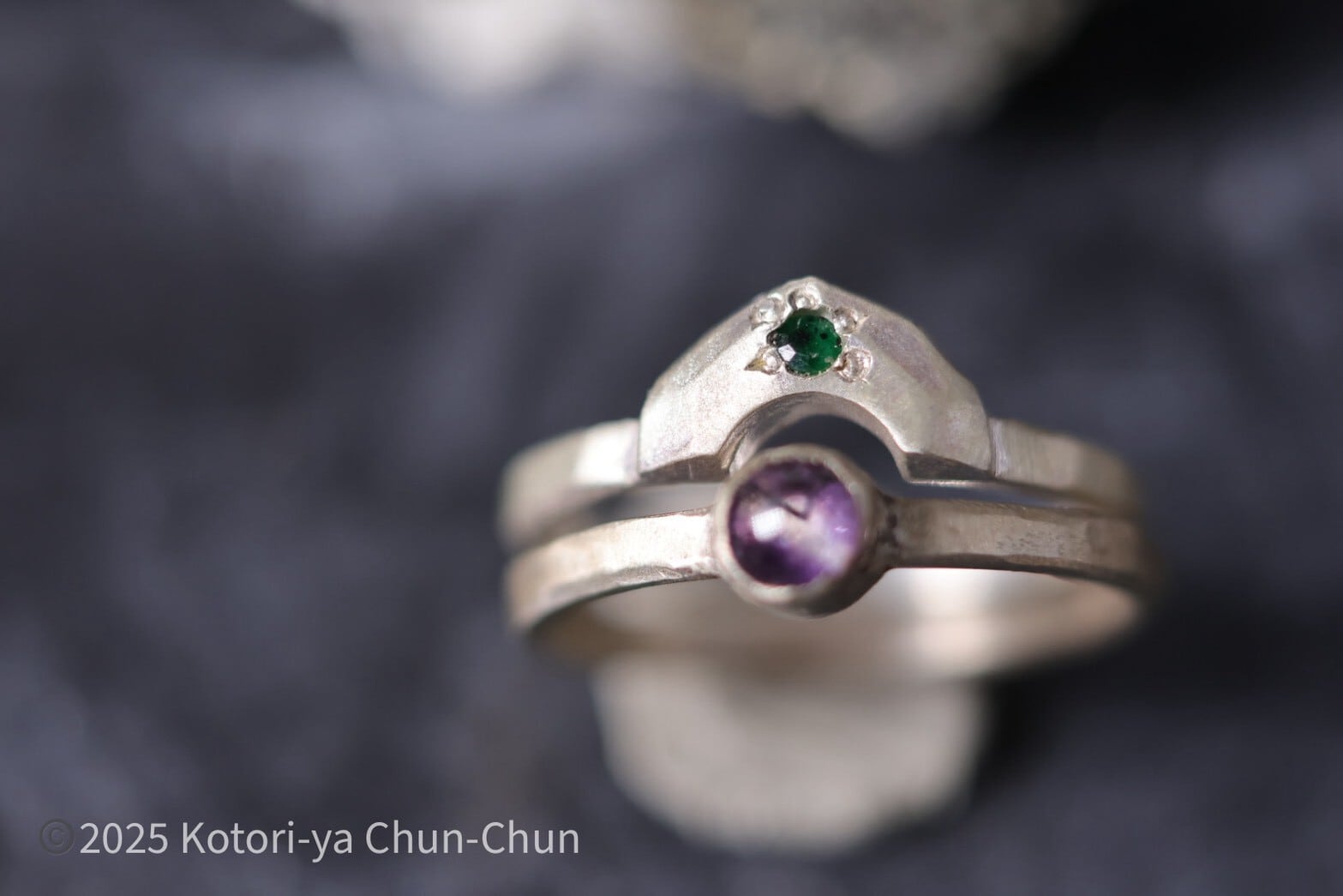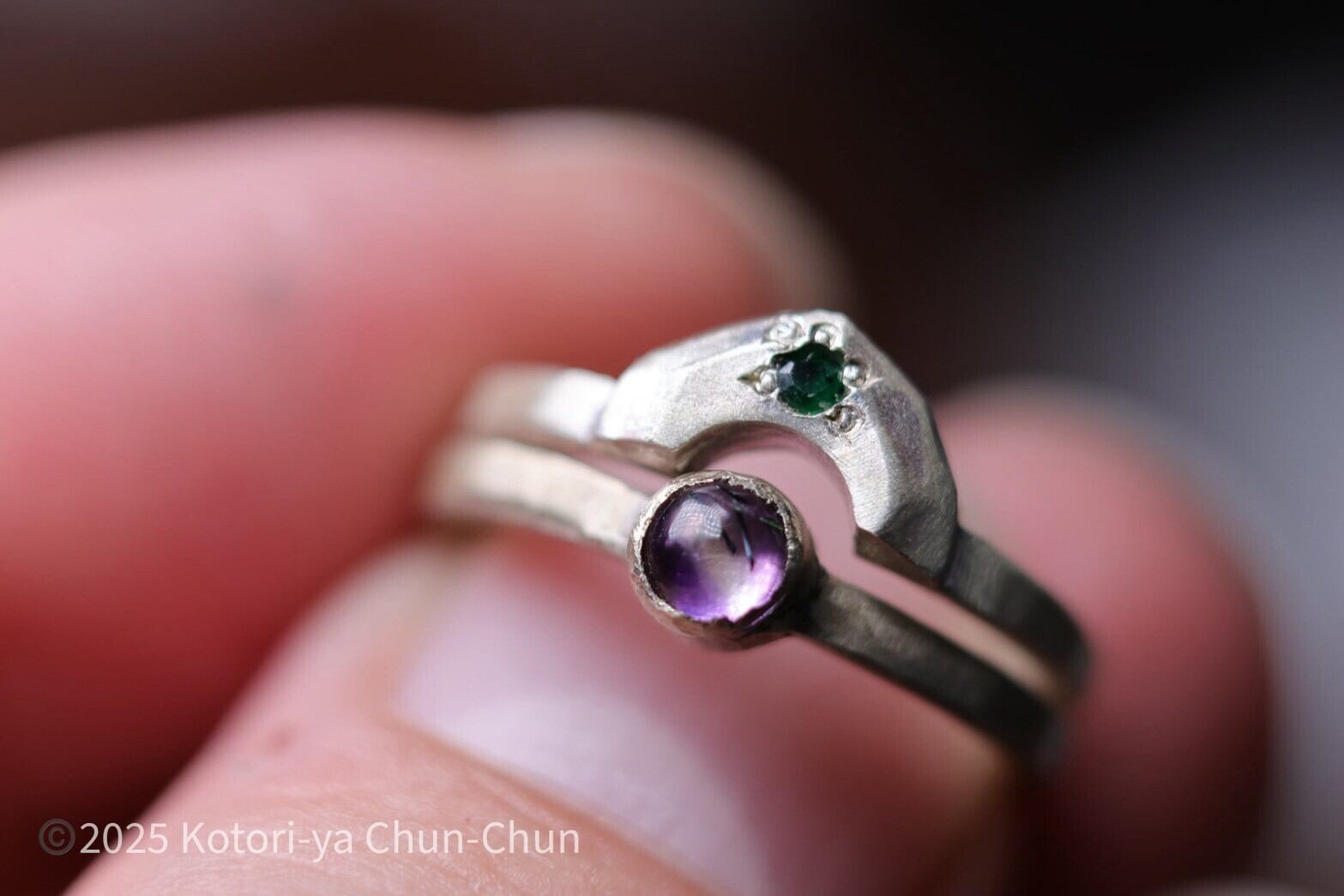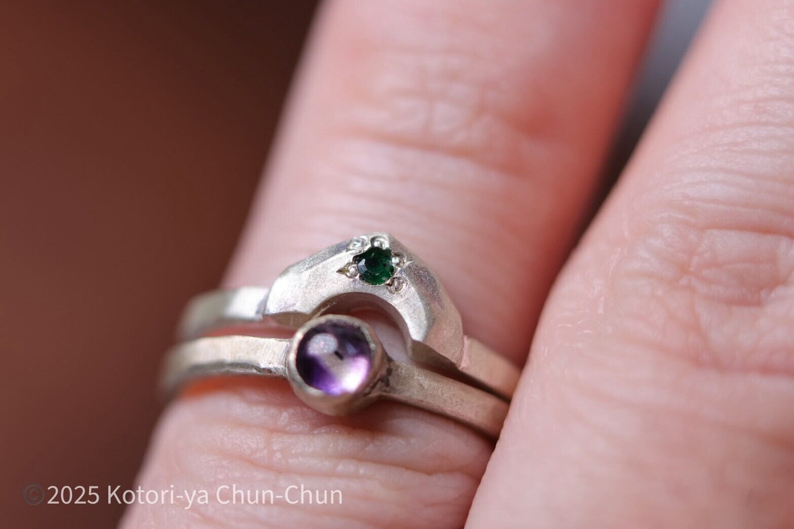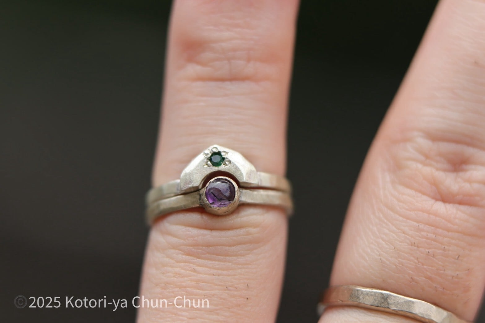 イメージとして5枚目以降に4mmのアメシストのリングと組み合わせていますので参考にしてみてください(※アメシストはセットには含まれていません)。
