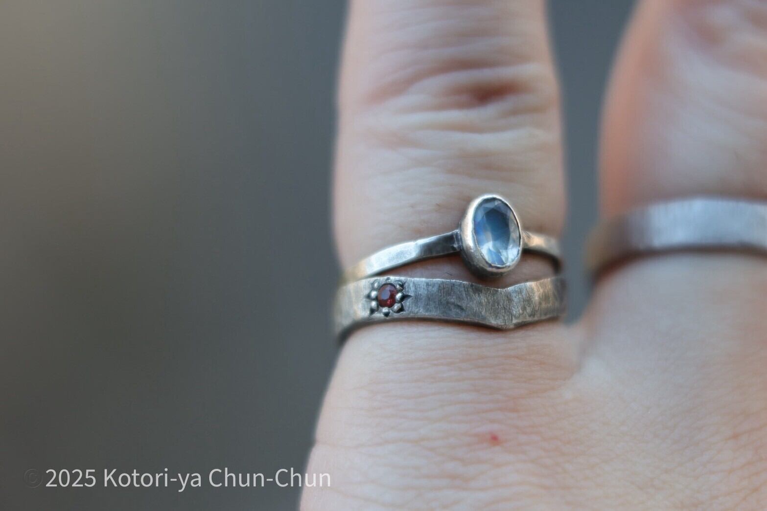 元々3つでも、1つでも使えるように作っていたので、シンプルにこれだけで使っていただいても良いのですが、最後の画像のように既存の小鳥屋リングとの重ね付けの相性も良いんです。