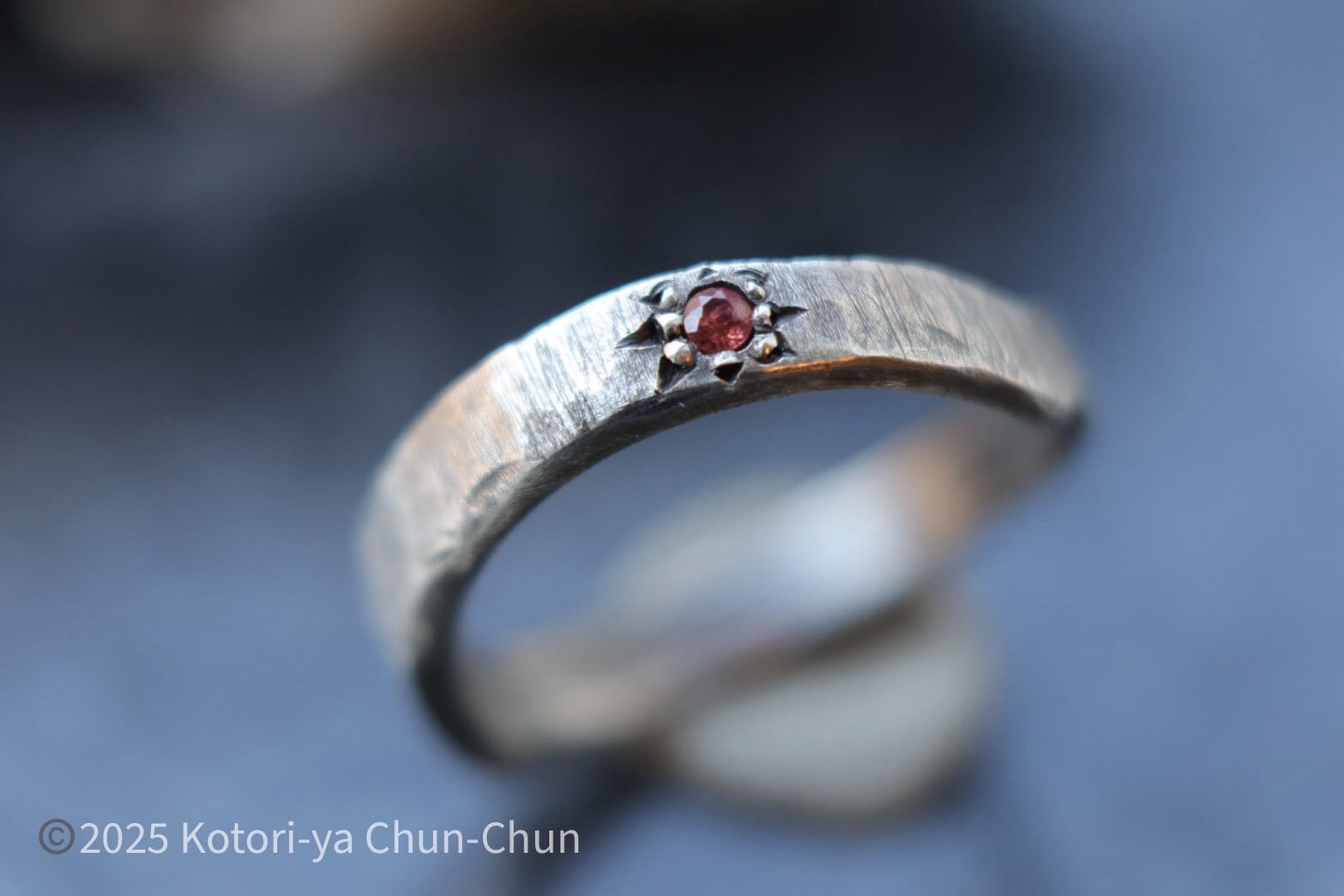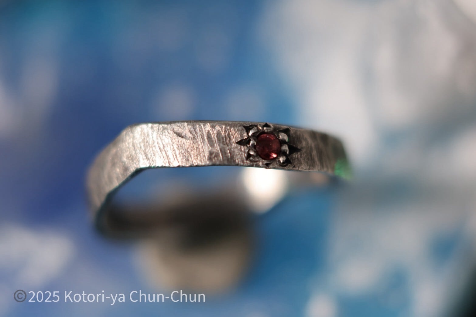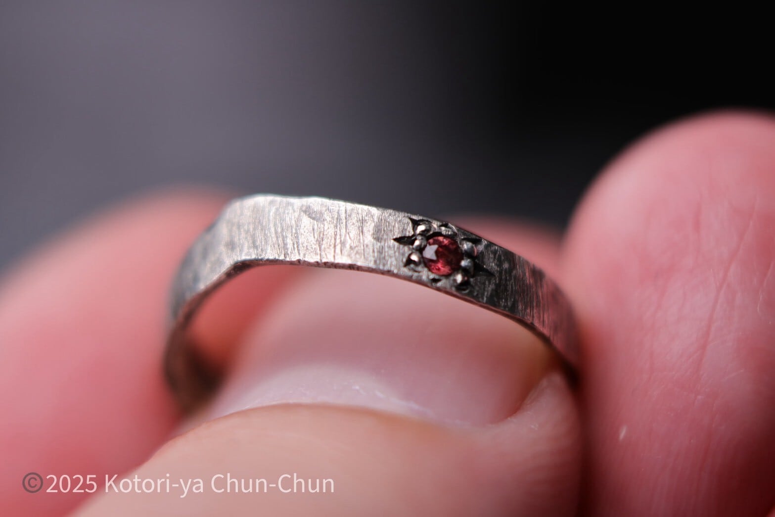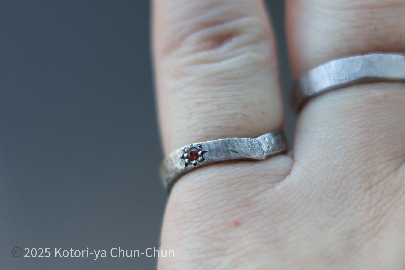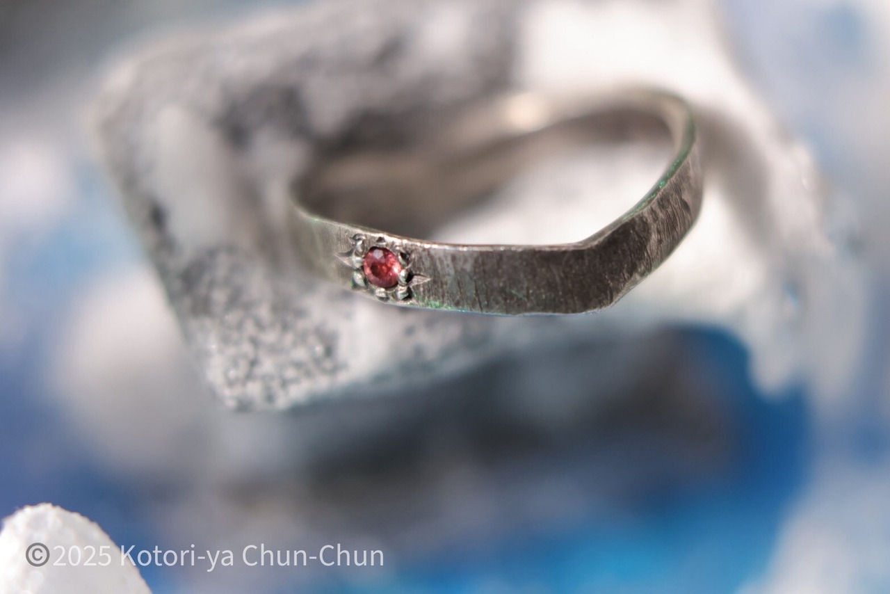 元々は3つ重ねることを前提で作った一点もののリング。【桃ノ字】【金ノ字】とピッタリと合います。