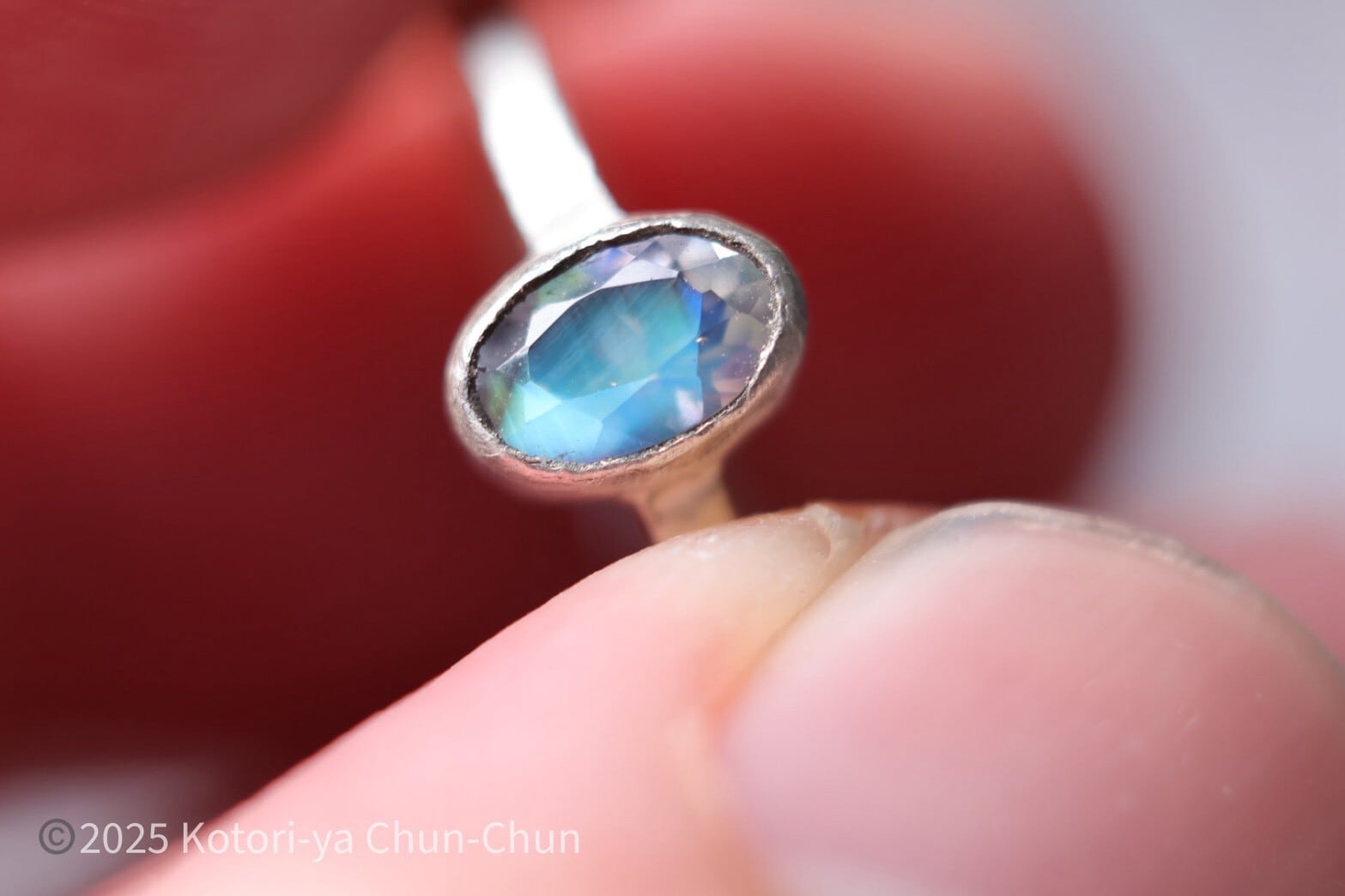 つまり常に黒い背景の上に載せている状態を作り出しているわけです。これがね、オパールとかムーンストーンは凄く有効なんですよ。