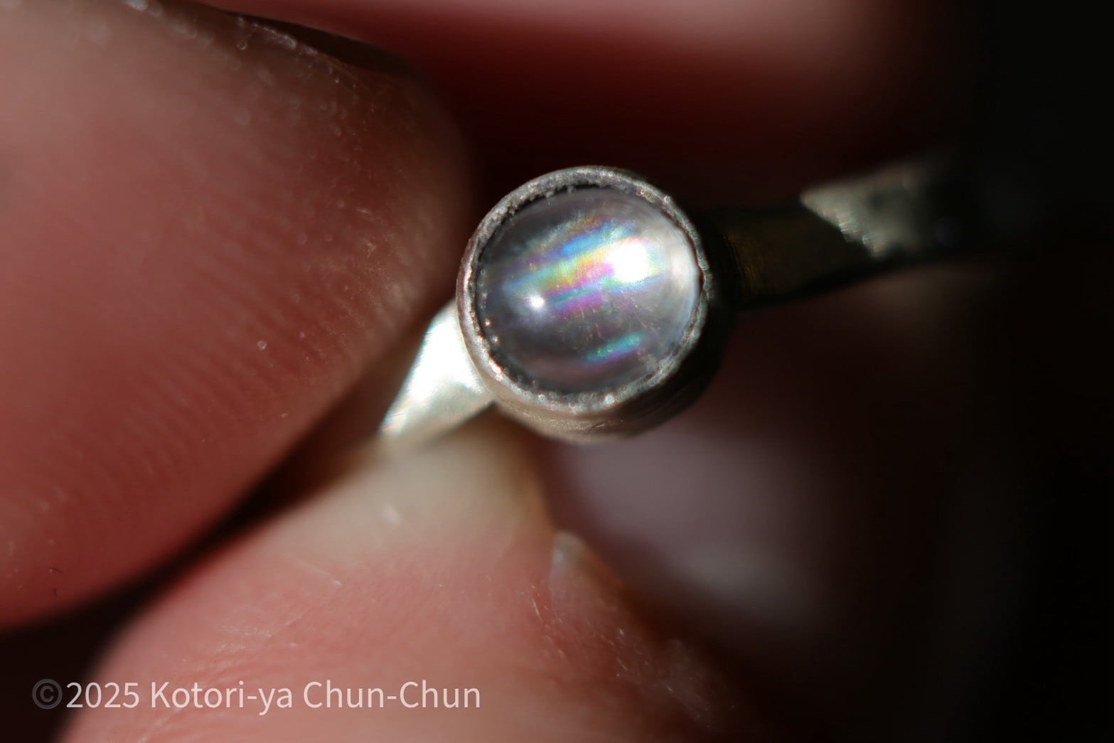 【これが欲しかった】特注カット マラウイ産流星ムーンストーン・シルバーリング【虹ノ軌跡】