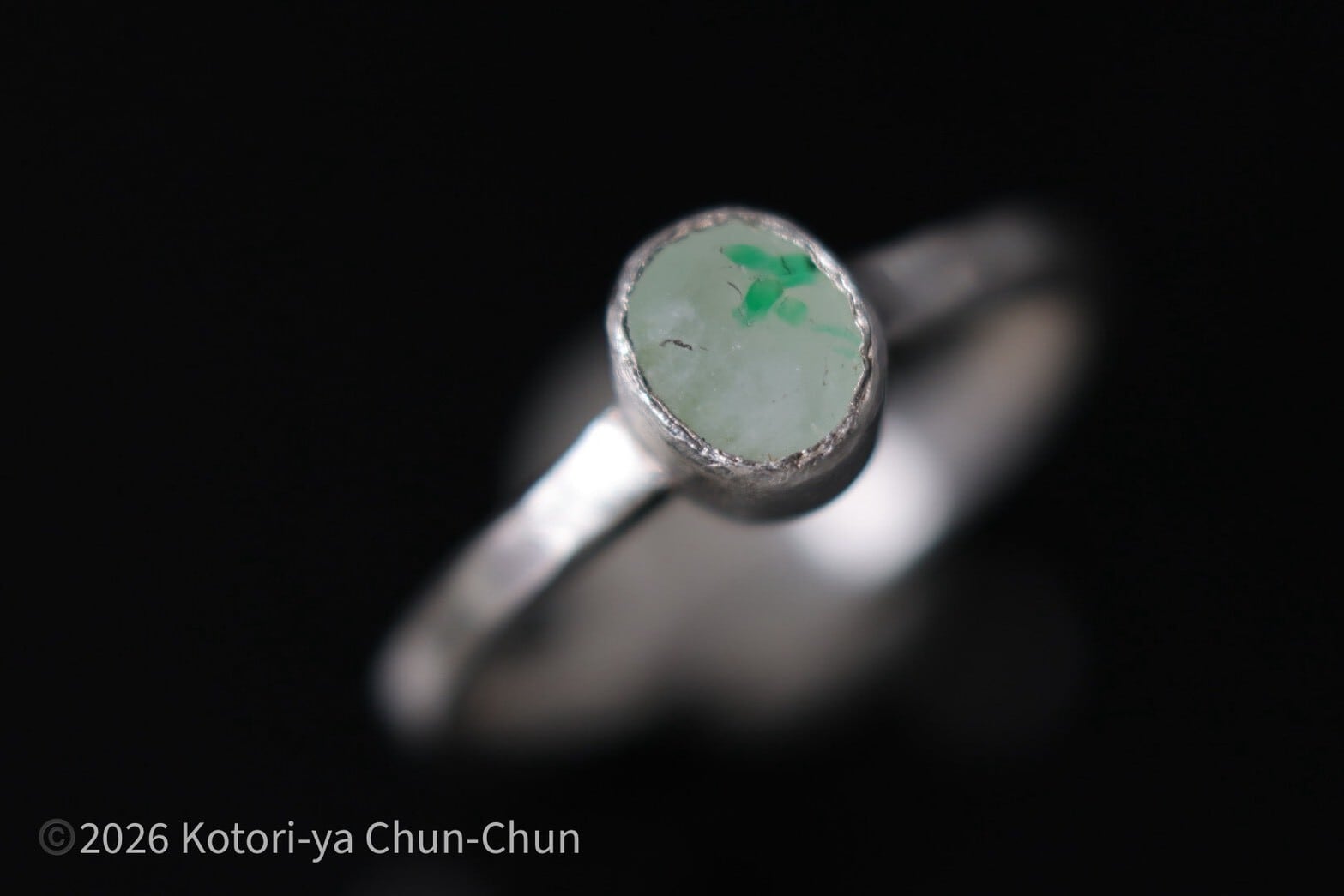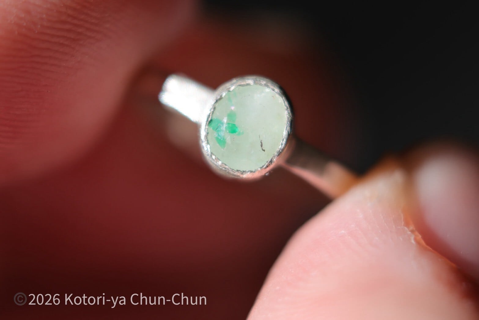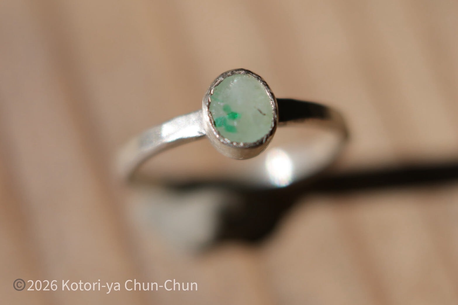 【白い水晶に咲くクローバー】 タイアの特注カット エメラルドインクォーツ・シルバーリング【雪葉】