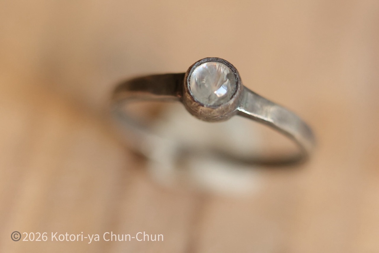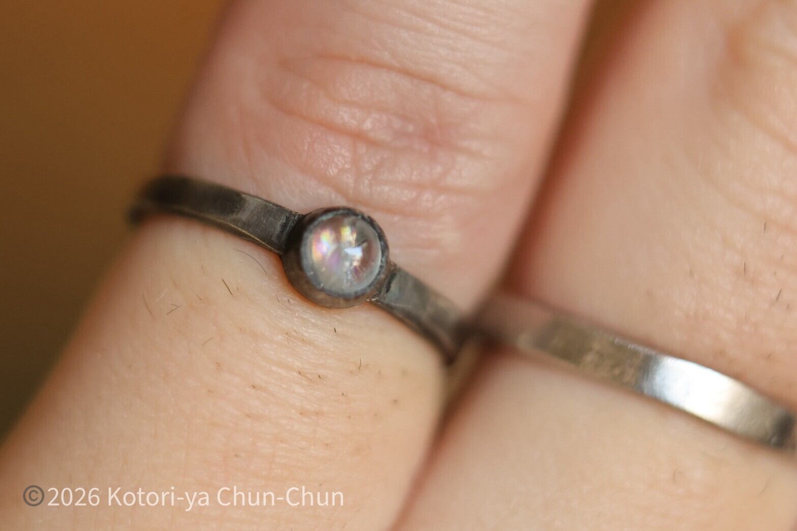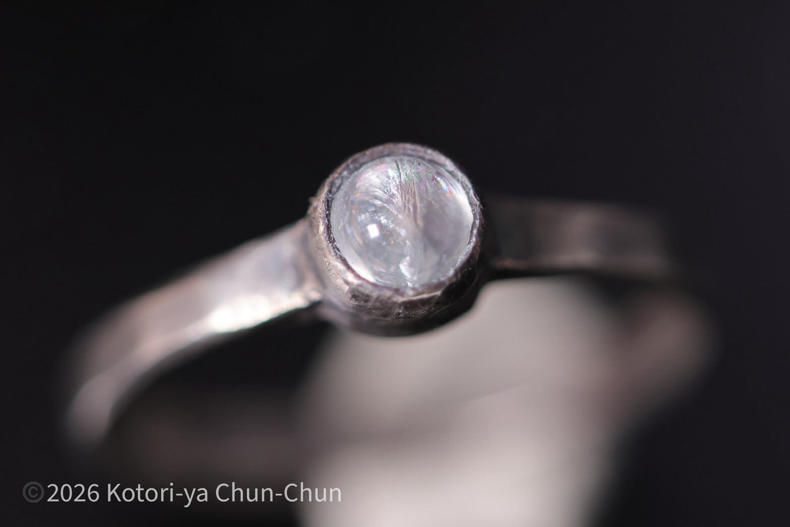 ムーンストーンあるあるですが、普通の台座ではシラーがわかりにくいため、小鳥屋は石座を燻してシラーが出やすくしております。