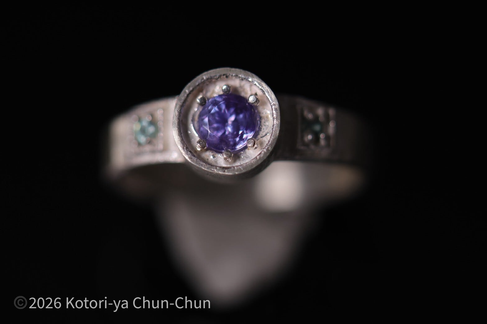 サテンの方が石の反射を楽しめるかな、と思って燻加工はしていませんが、燻加工にするとそれはそれで石そのものの輝きが際立って楽しいと思います。