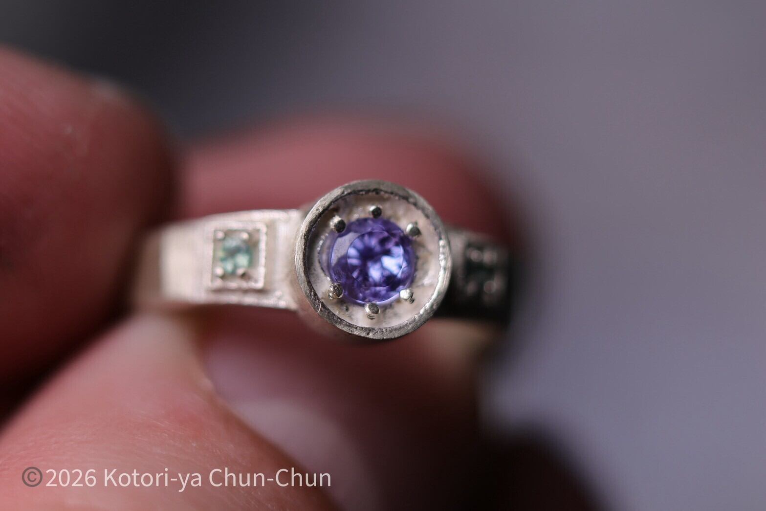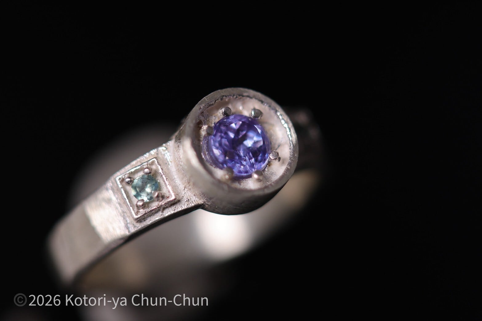 基本的に小鳥屋は「石が主役」をモットーとしているため、どんなに小さい石でも1つのリングに1石が基本なのですが、この「能鷹」シリーズは石の組み合わせによる相互作用を楽しむをコンセプトにしています。