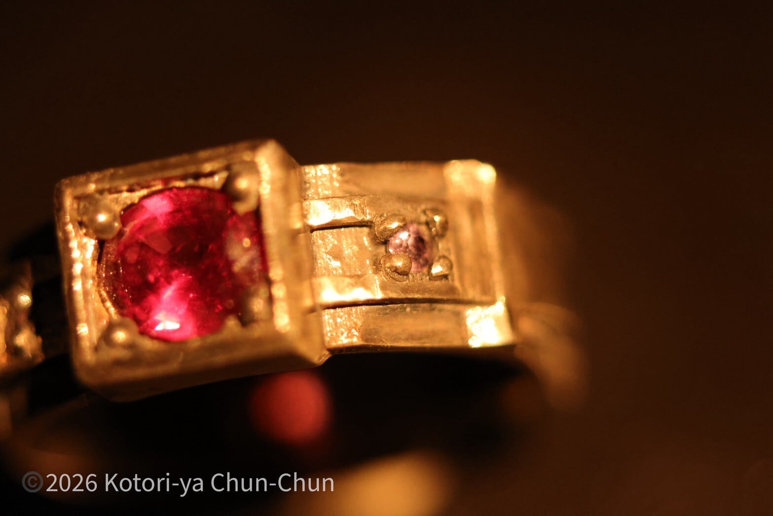 メインの石は2025年11月のタイの仕入れの中でも目玉商品のひとつ。宝石商の聖地チャンタブリーで手に入れたマダガスカル産パープルガーネット。