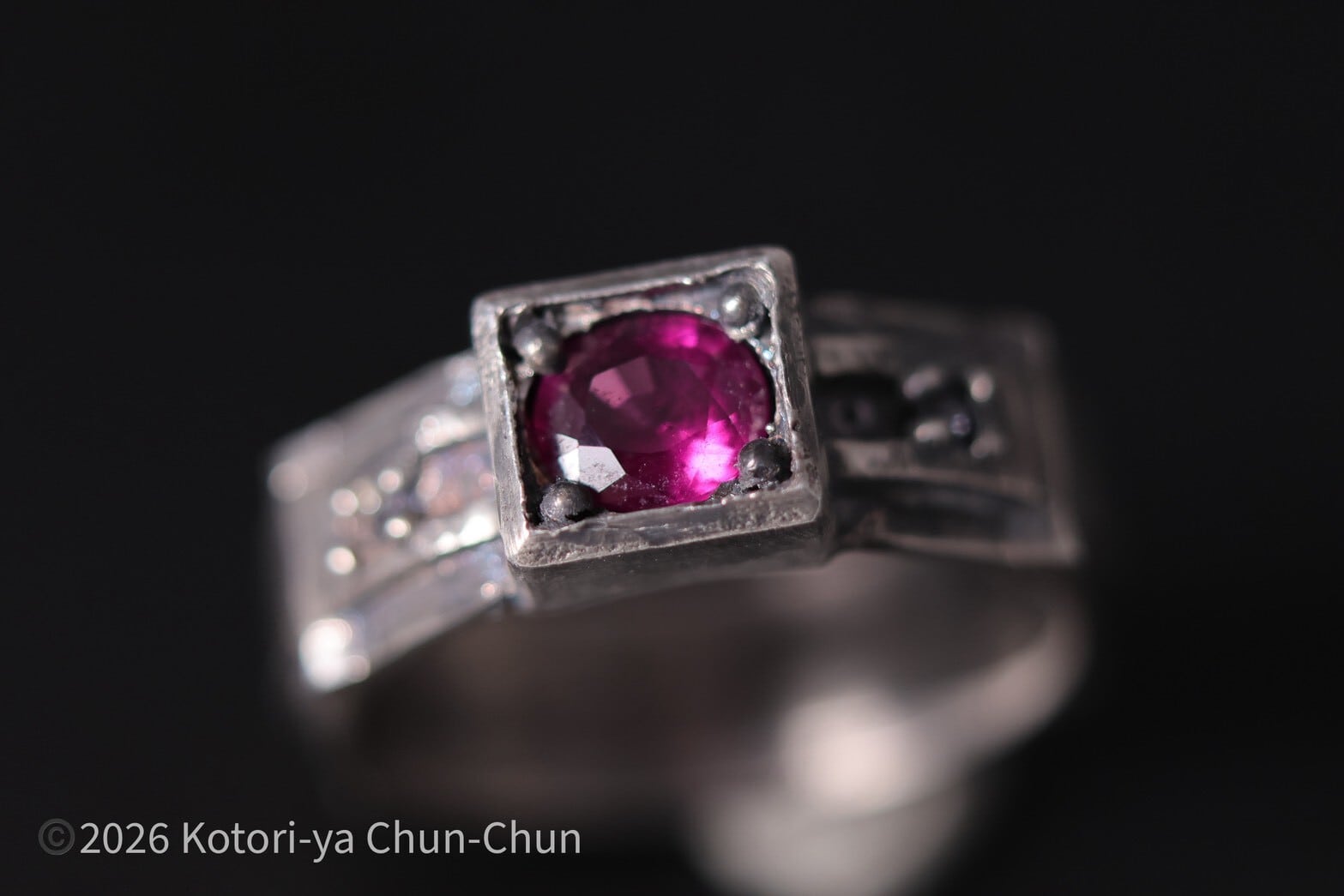 ということで、この子の銘ですが、ヴォルンパラシガーネットの柱リングということで【紫柱(しちゅう)】とします。