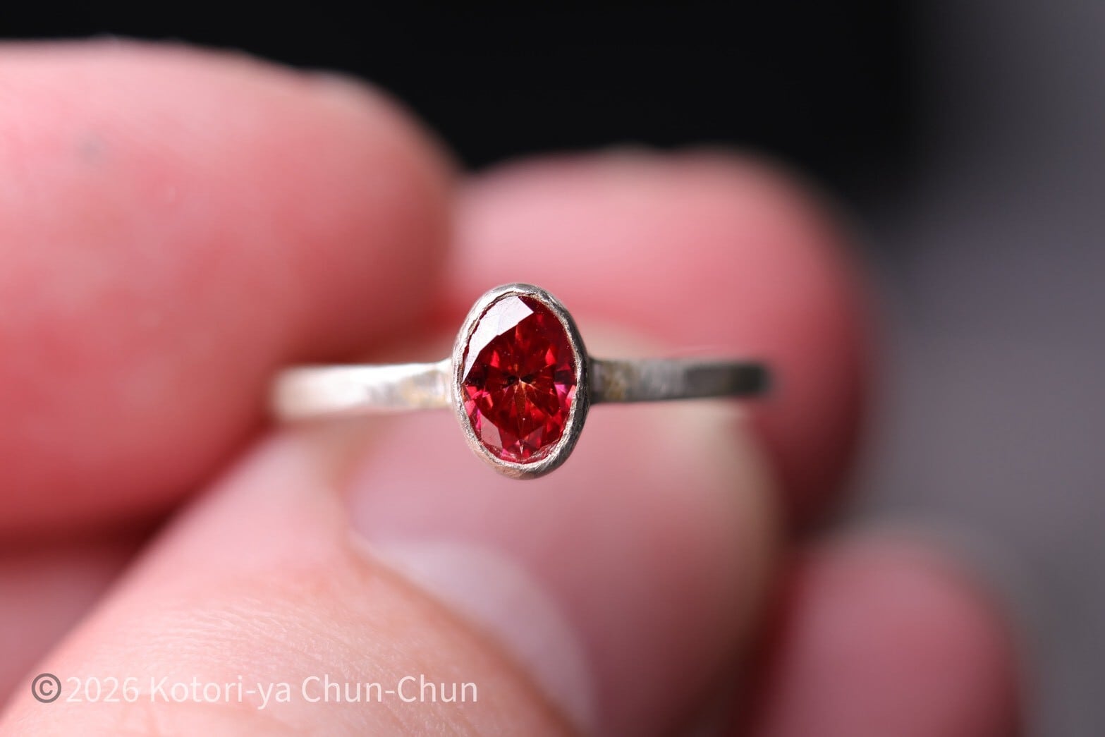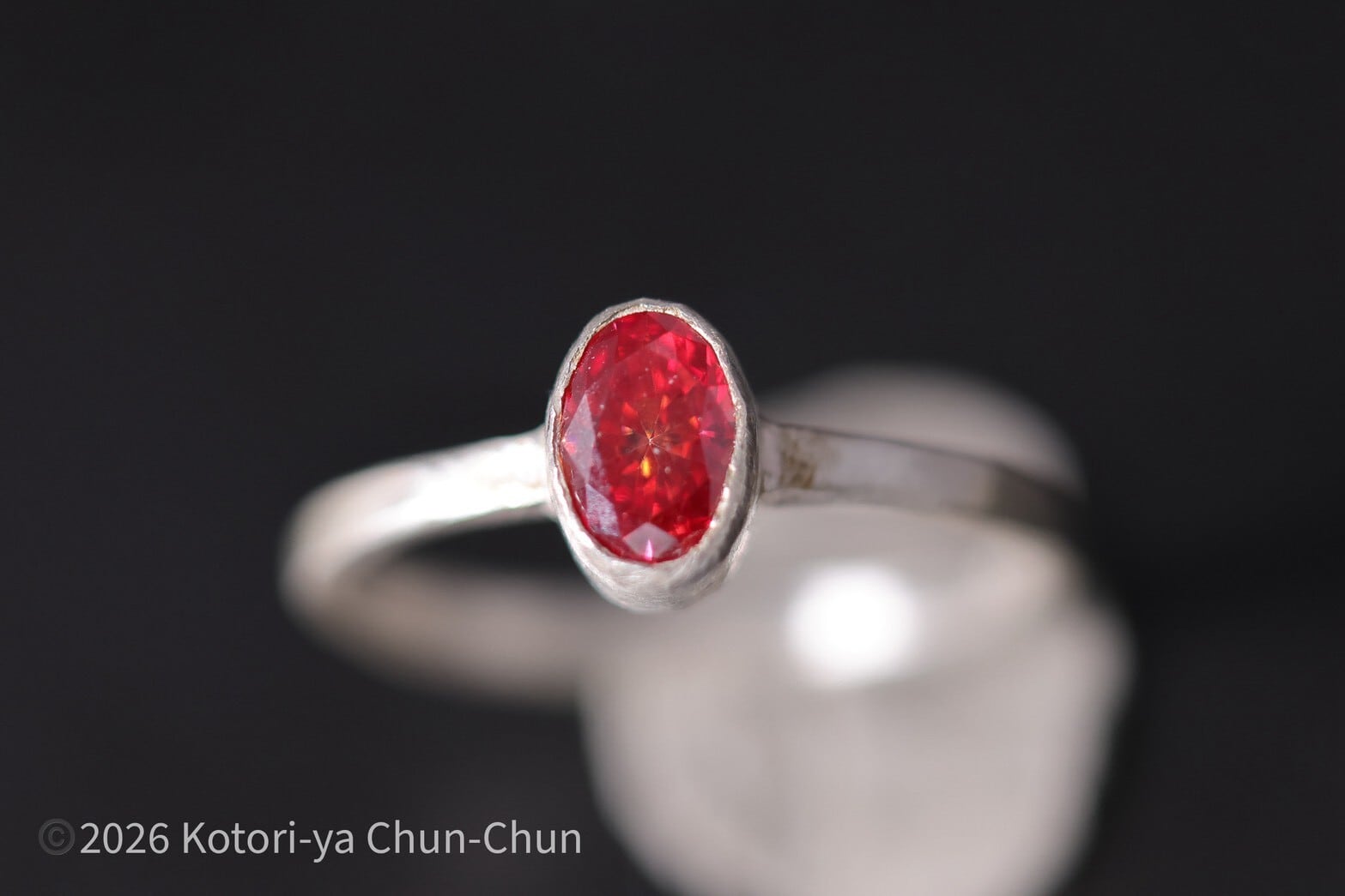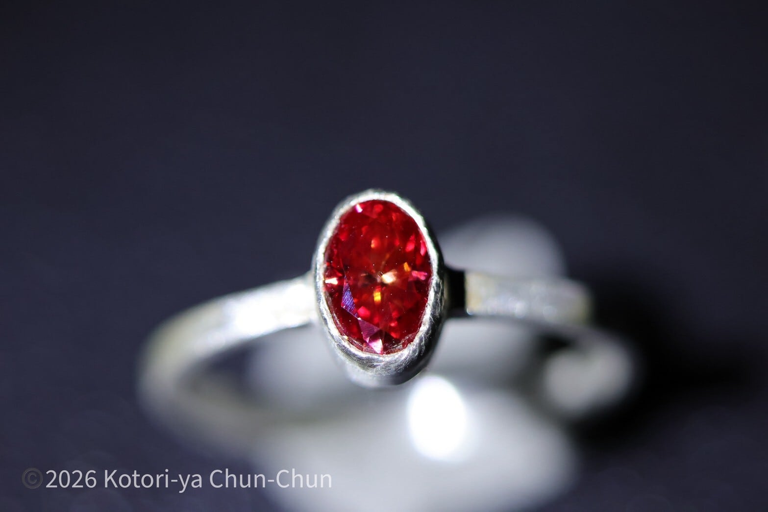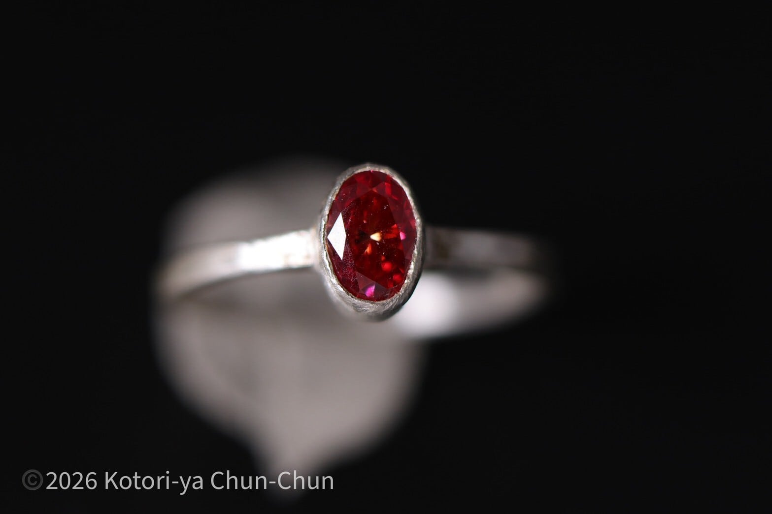 【人類の叡智の結晶】最強の人工宝石 レッドモアサナイト・シルバーリング【リコリス】