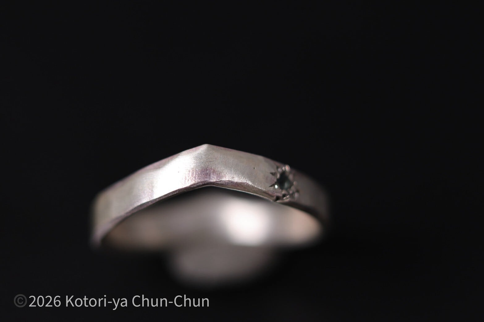 銘はくの字リングの「宝石の王様」アレキサンドライトなので【王ノ字(おうのじ)】とします。