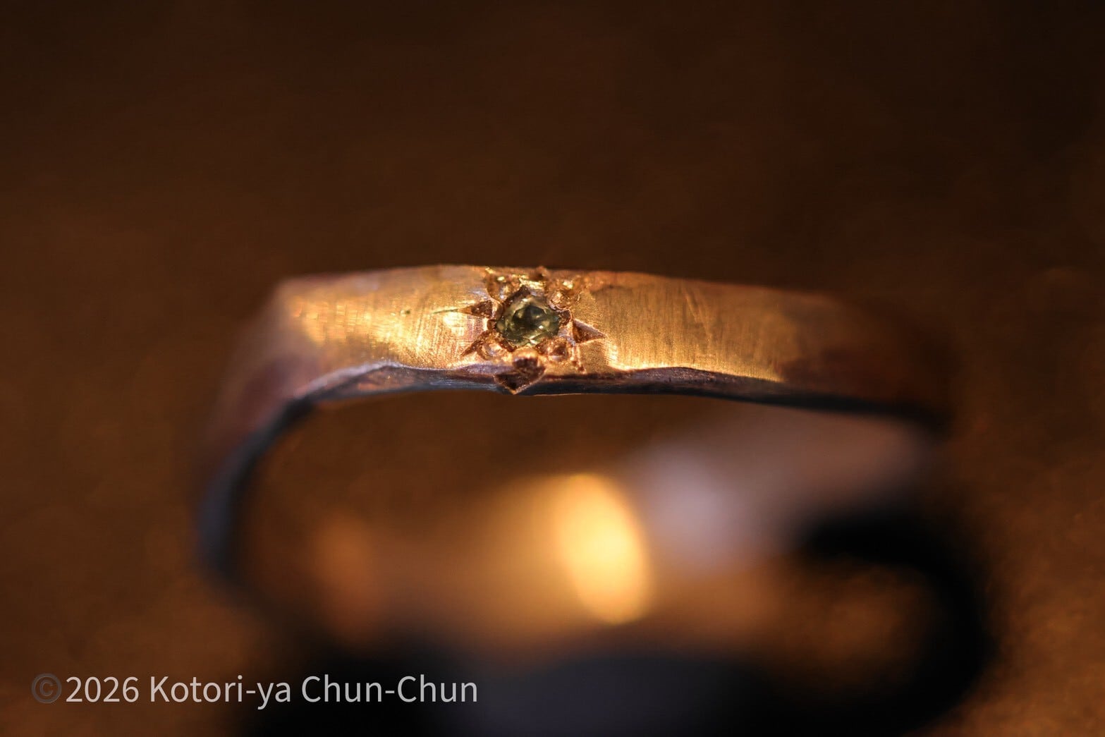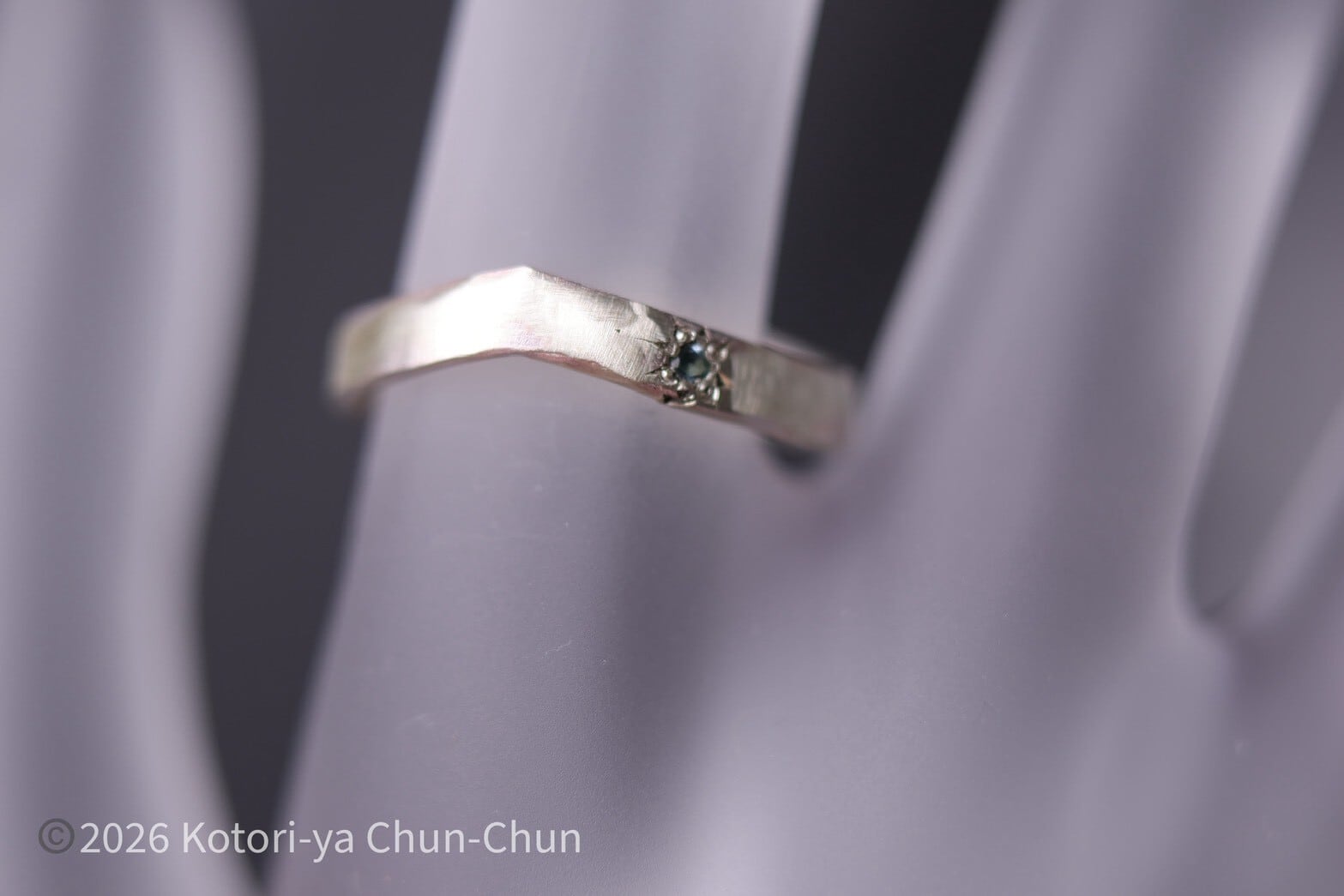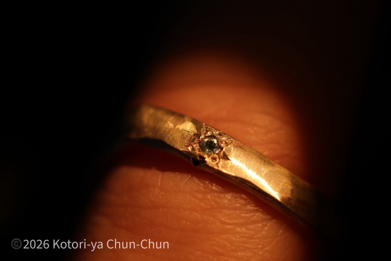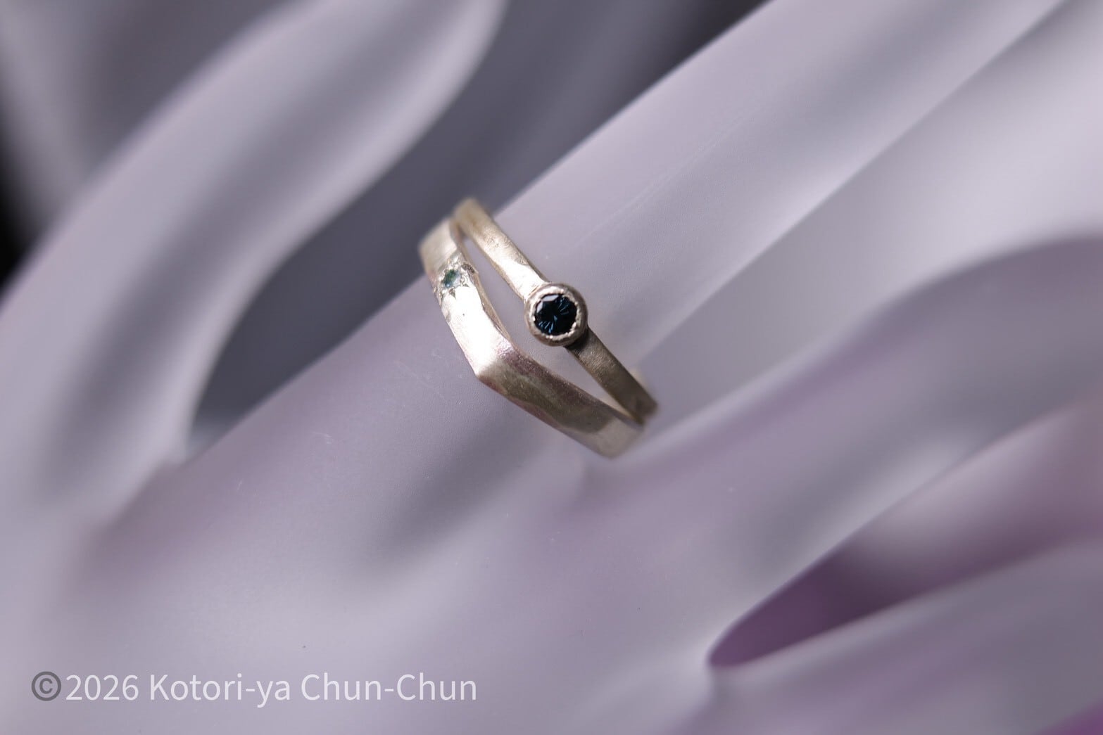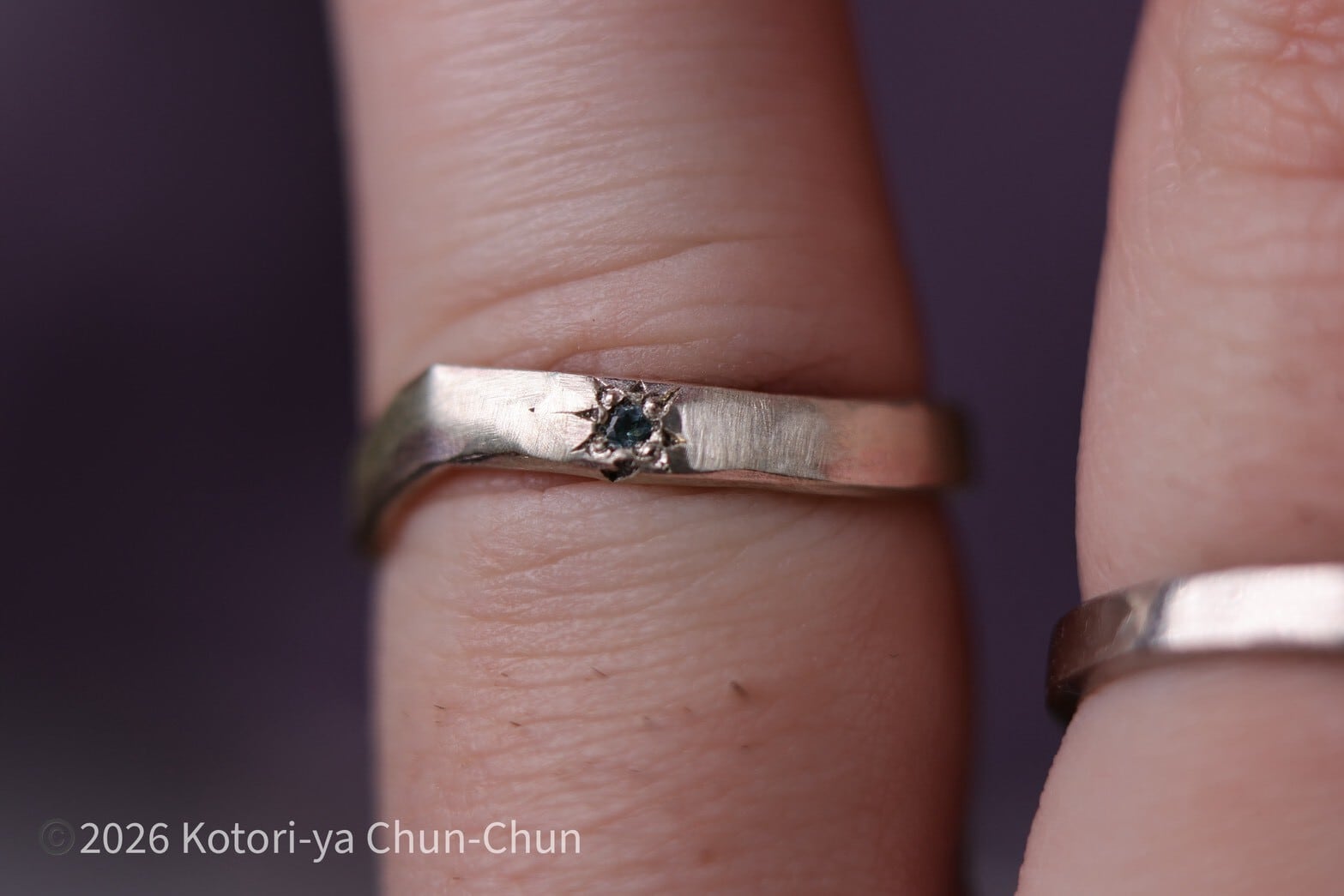そしてこのリング、小鳥屋のリングでも珍しい変則的な位置に石を留めています。