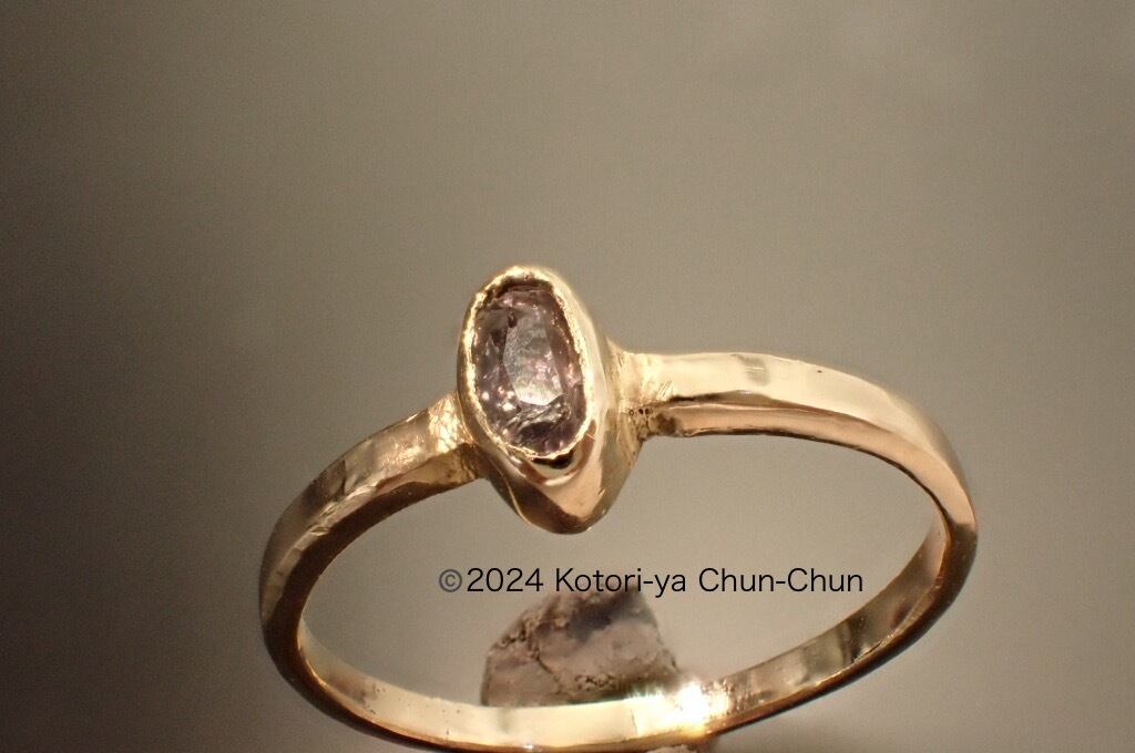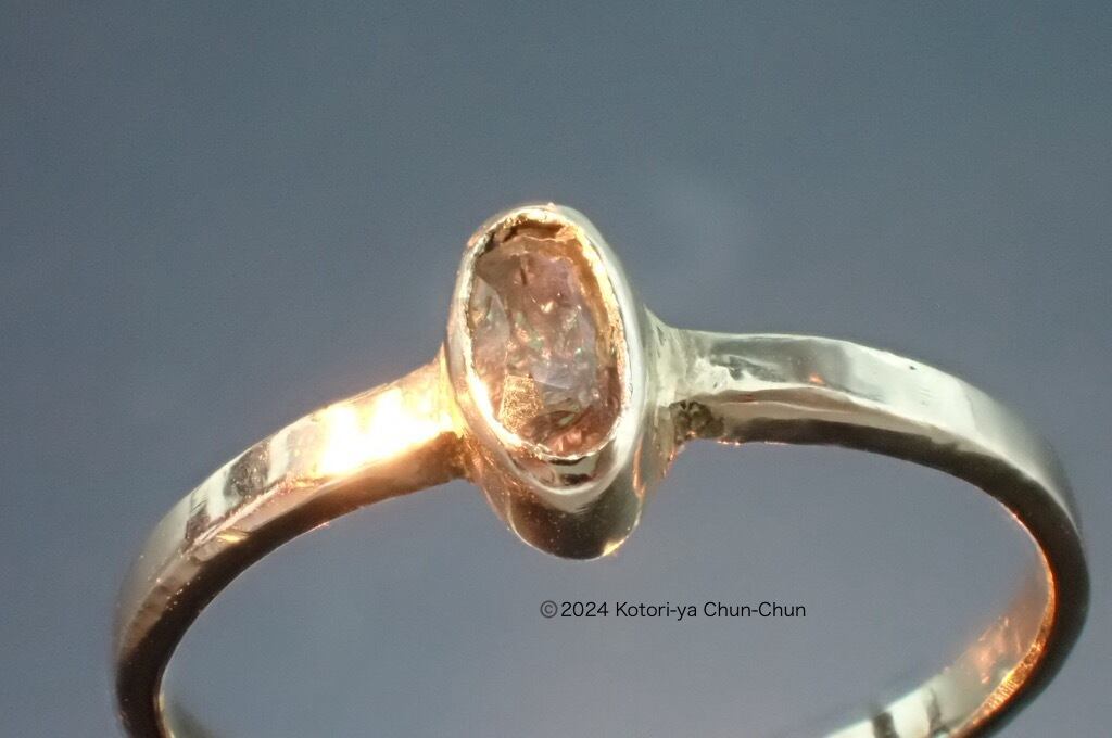 ルース(裸石)状態ではカラーチェンジが見えなかったのですが、K10にいれるとしっかり青紫になりました。金は銀よりもカラーチェンジをはっきりさせる効果がありそうです。