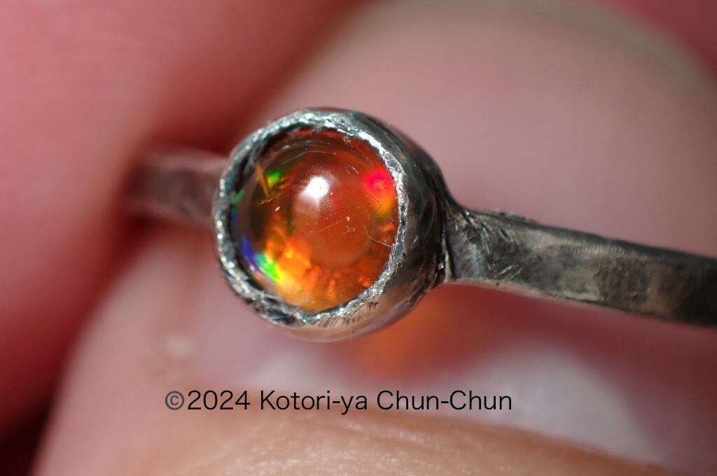 【バチバチの遊色】カボションカット 天然メキシコオパール・シルバーリング【橙遊】
