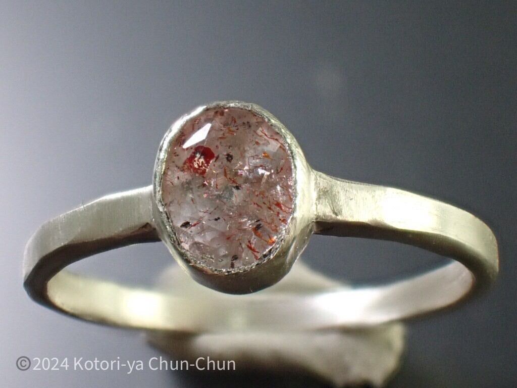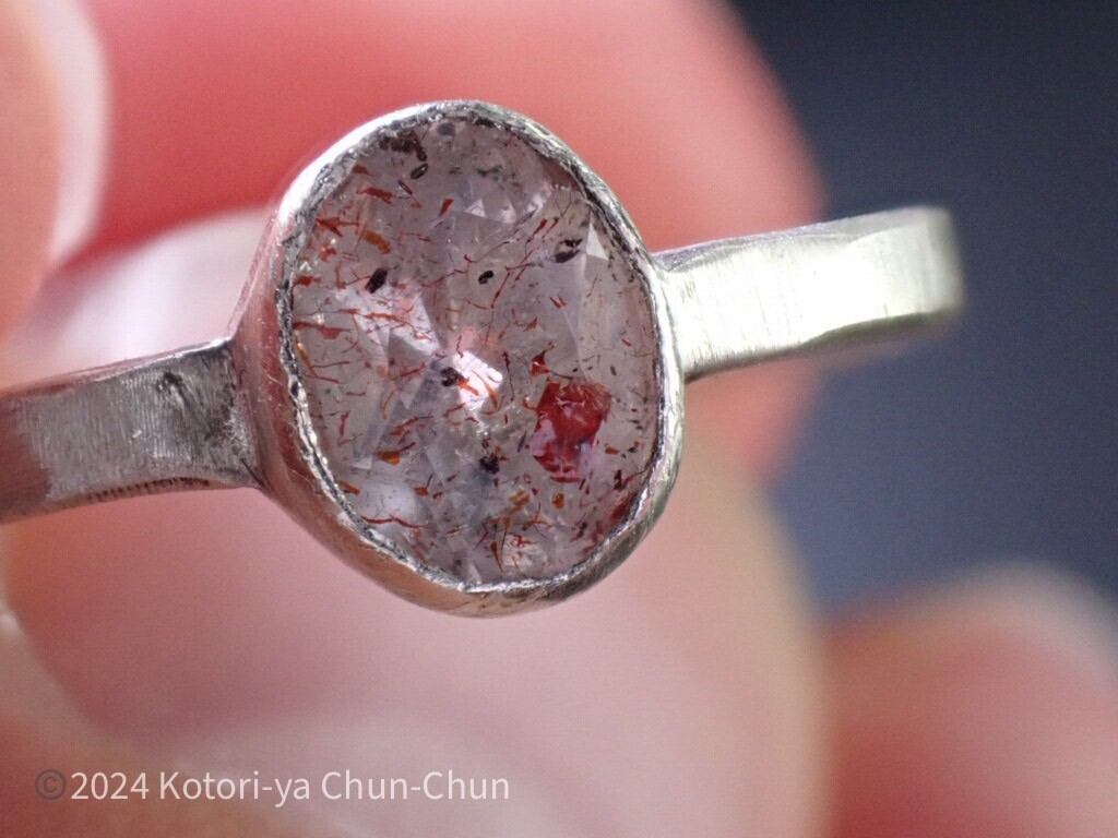 【右下に金魚います!】特注オーバルカット レピドクロサイトインクォーツ・シルバーリング【金魚鉢】