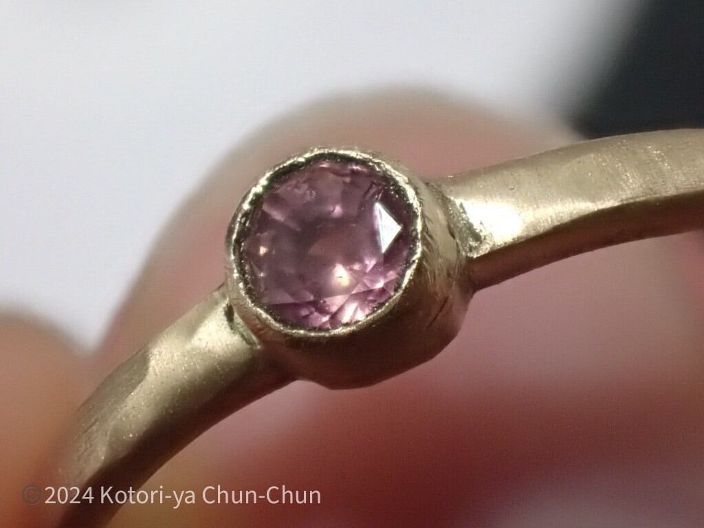 パパラチアというのはスリランカのシンハラ語で「蓮の花」の意味。なので、銘は蓮の文字をいただいて美しい音色のように響くリングという意味で【蓮音(はすね)】とします。