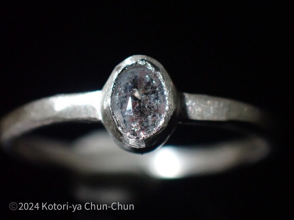 【変わり種】アクアマリン好き必見 モスアクアマリン・シルバーリング【黒雪】