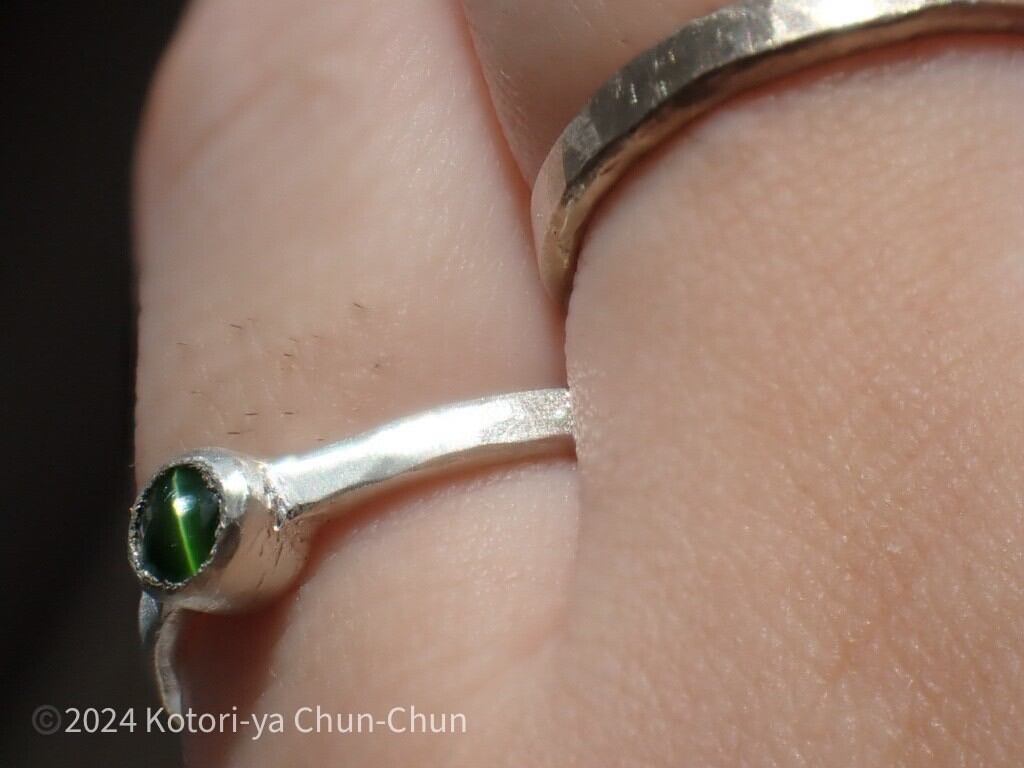 【翡翠の親戚】ダイオプサイトキャッツアイ・シルバーリング【鰐丸】