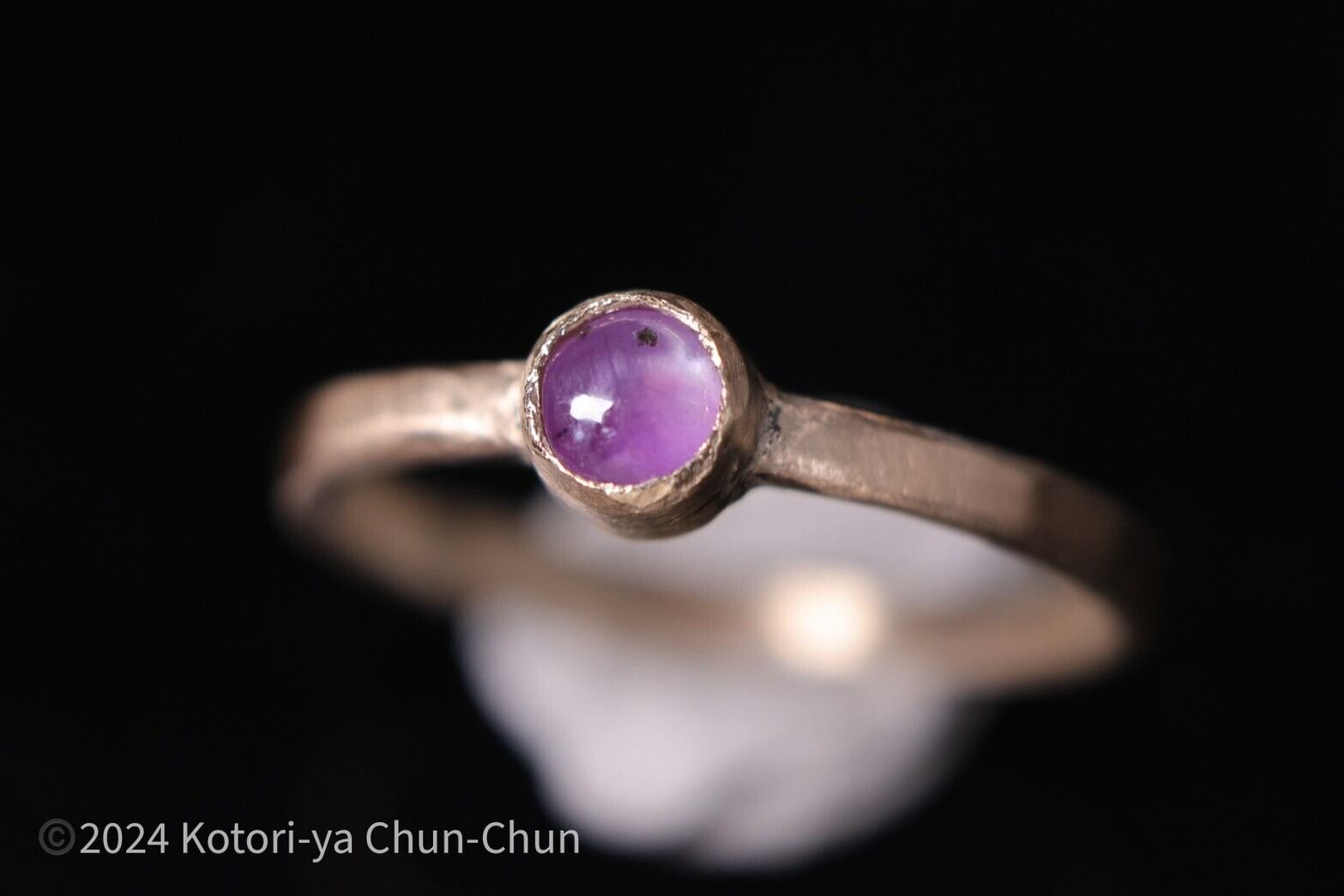 【小鳥屋ジュエリー】「トシッタさん」の強蛍光ノーヒート・パープルスターサファイア・K10YGリング【白黒紫星】